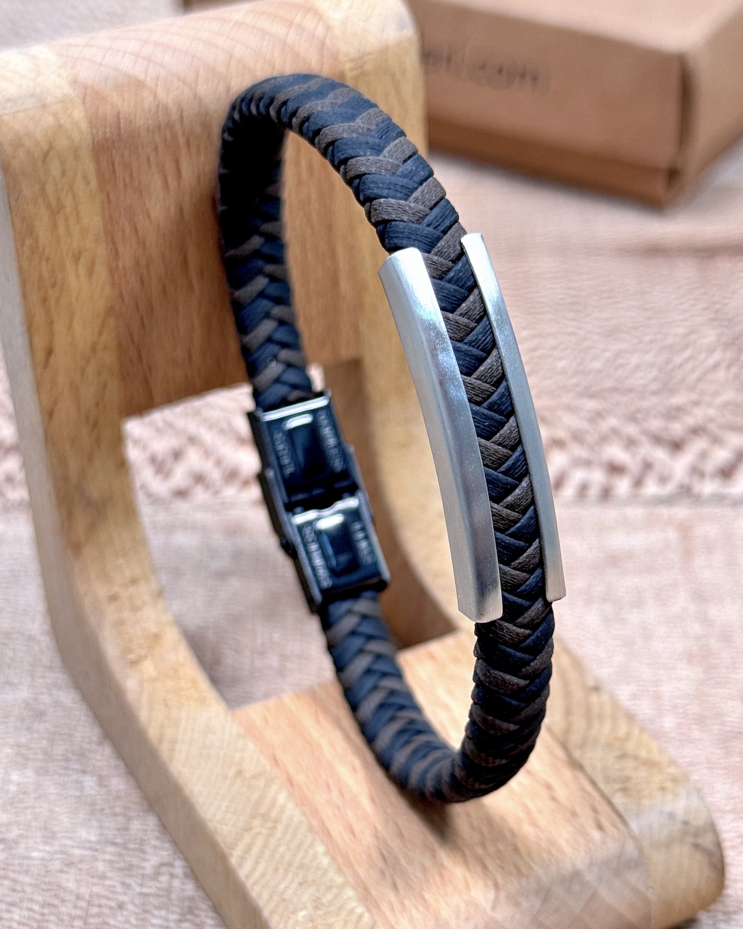 Çelik Detaylı Örgü Bileklik Lacivert Renk