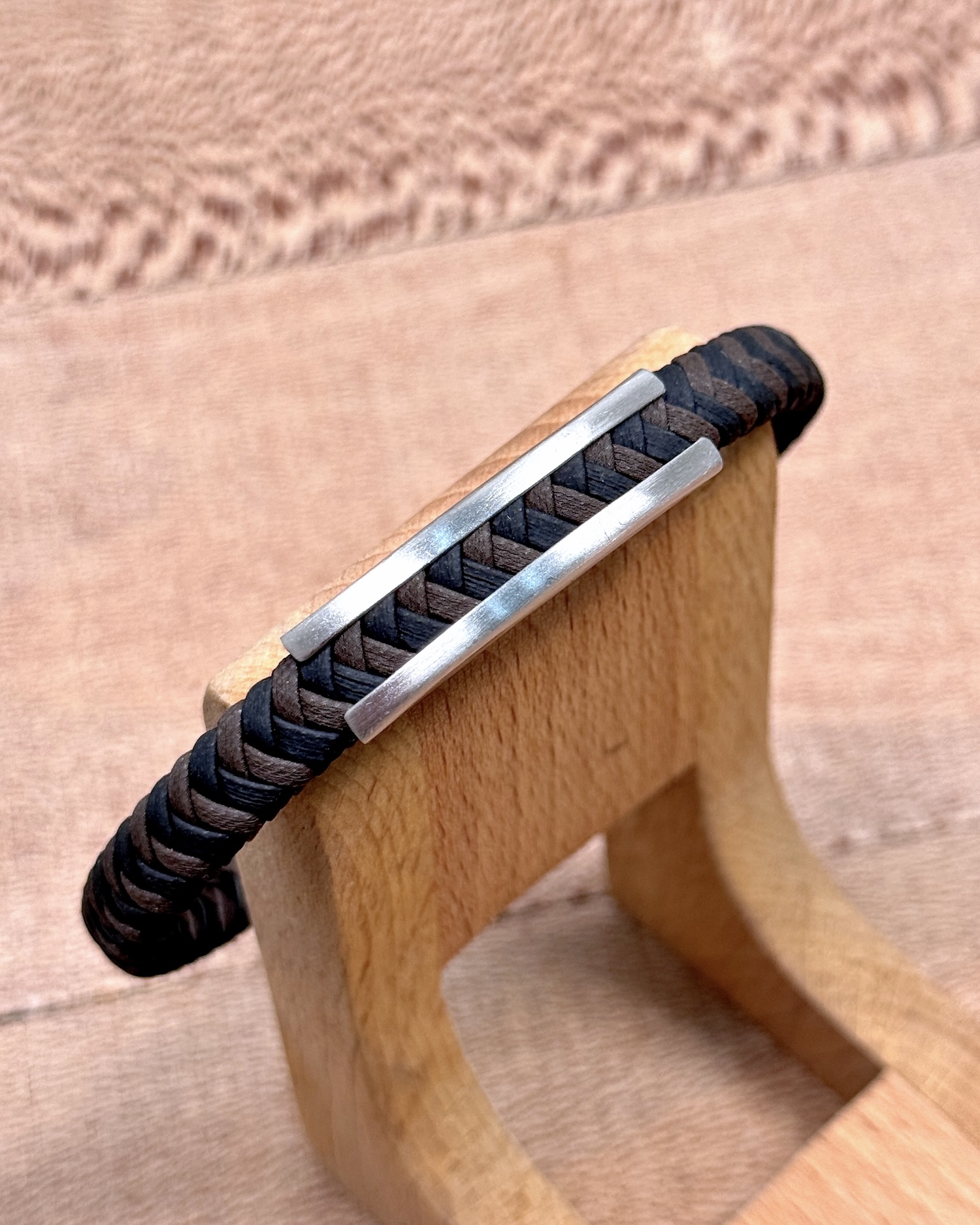 Çelik Detaylı Örgü Bileklik Kahve Renk
