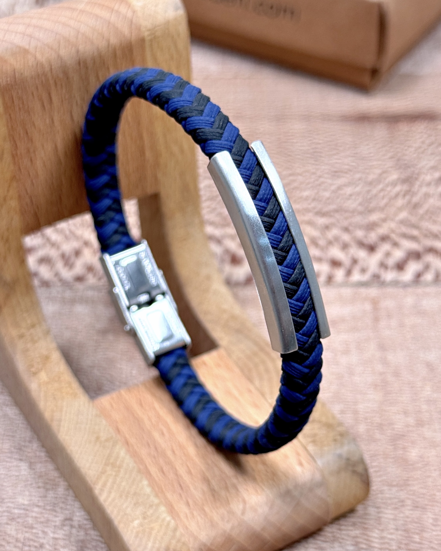 Çelik Detaylı Örgü Bileklik Lacivert Renk