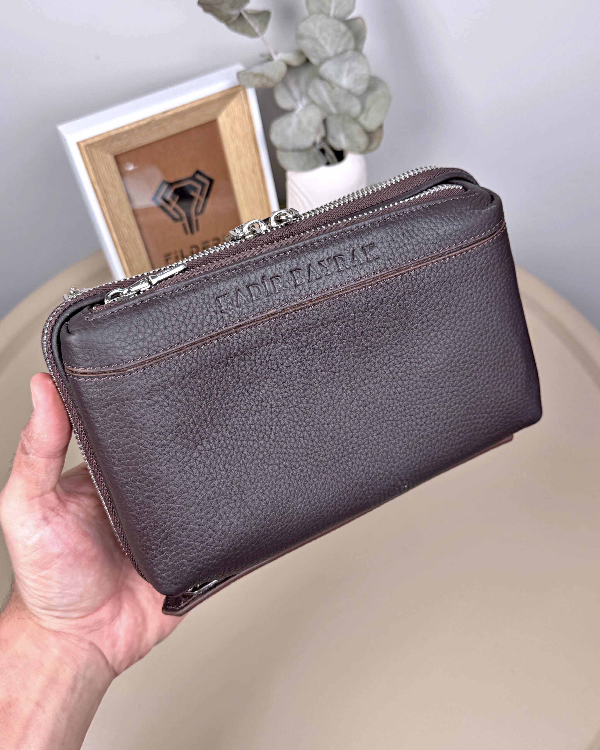 Çok Bölmeli El Çantası – Mat Kahve Hakiki Deri | 2103