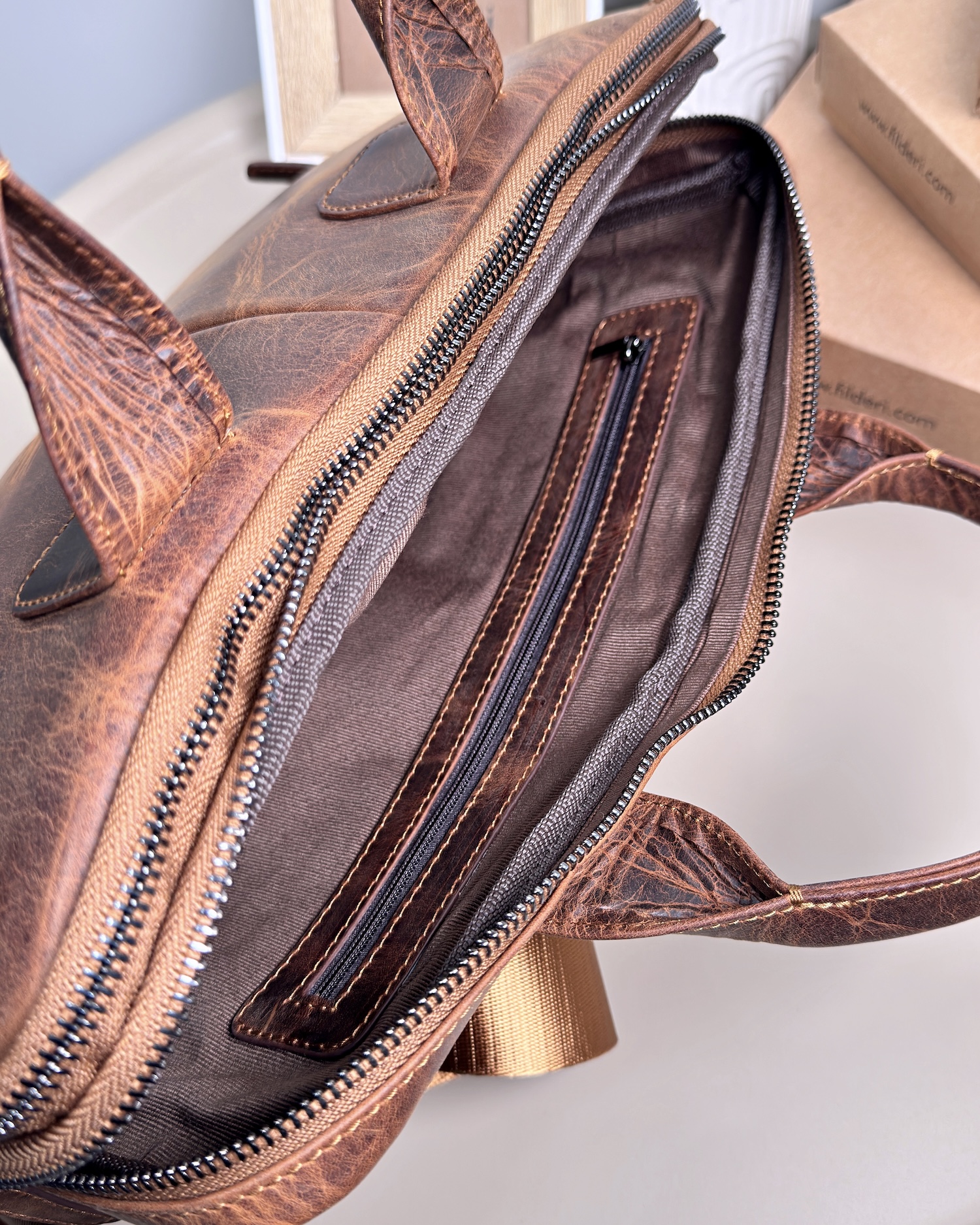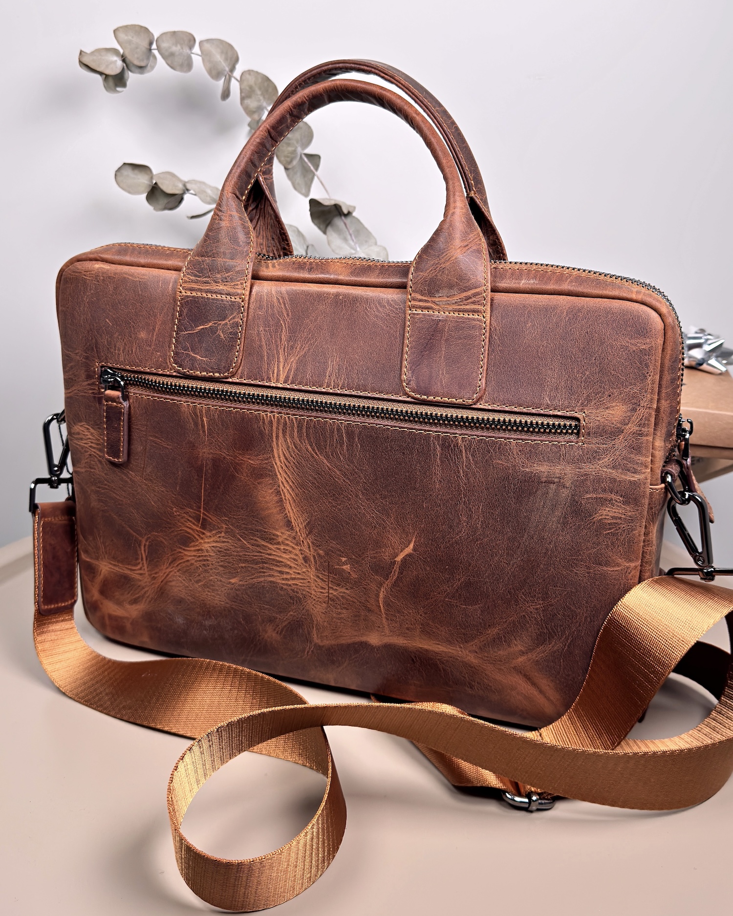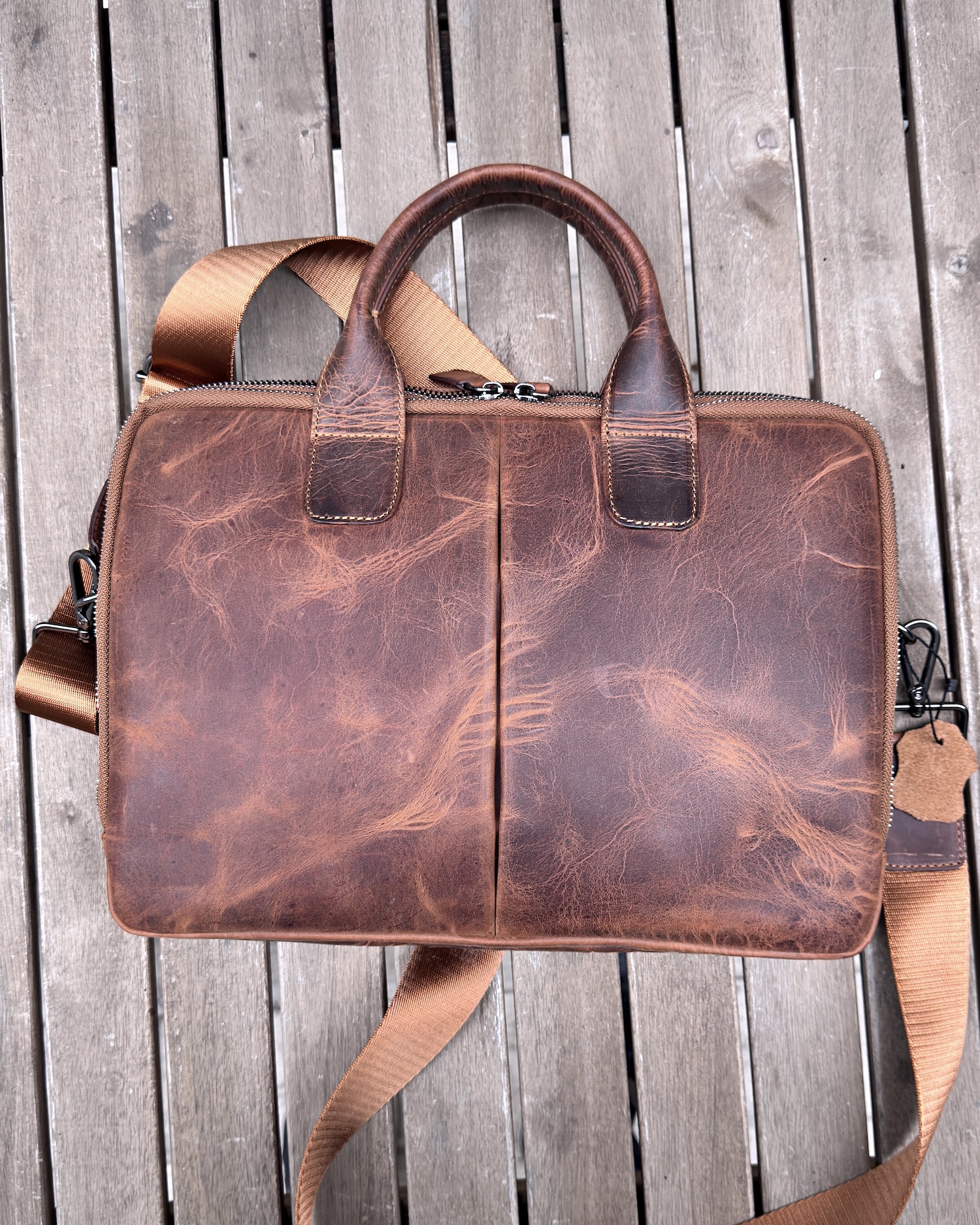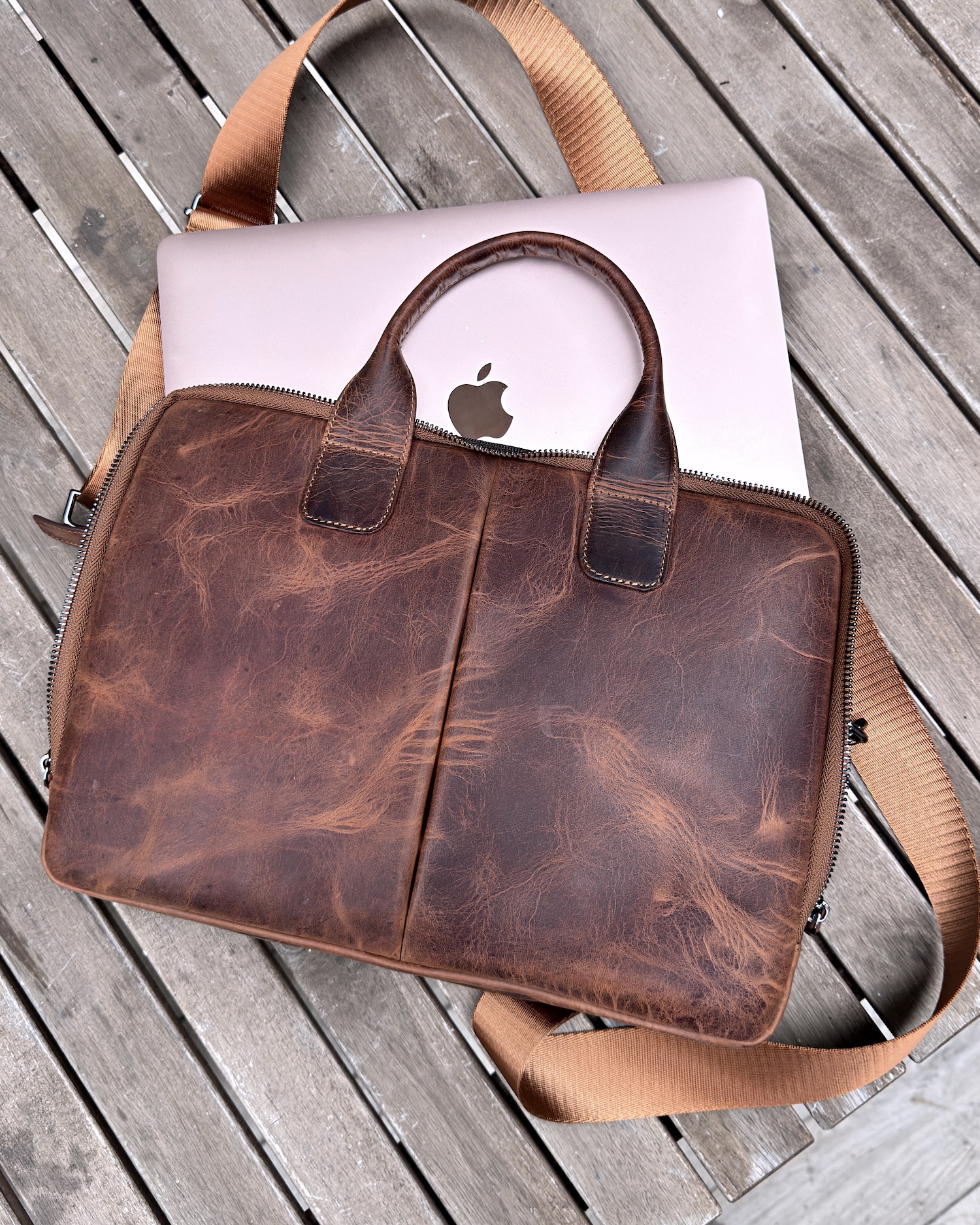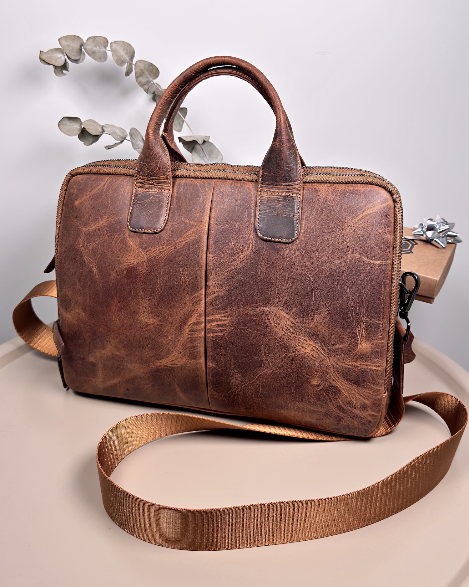 Deri Laptop Evrak Çantası – Hakiki Deri, 13 İnç, Fındık | 2136
