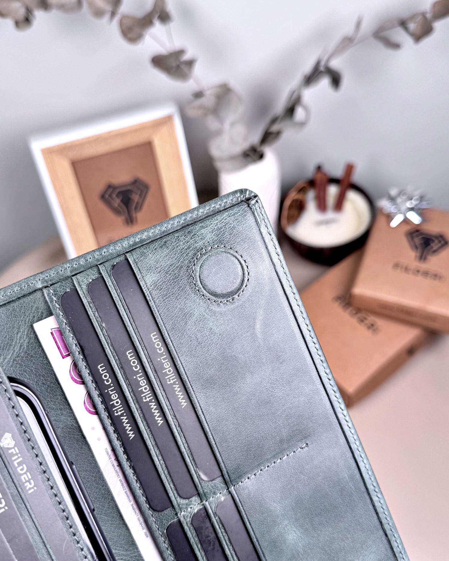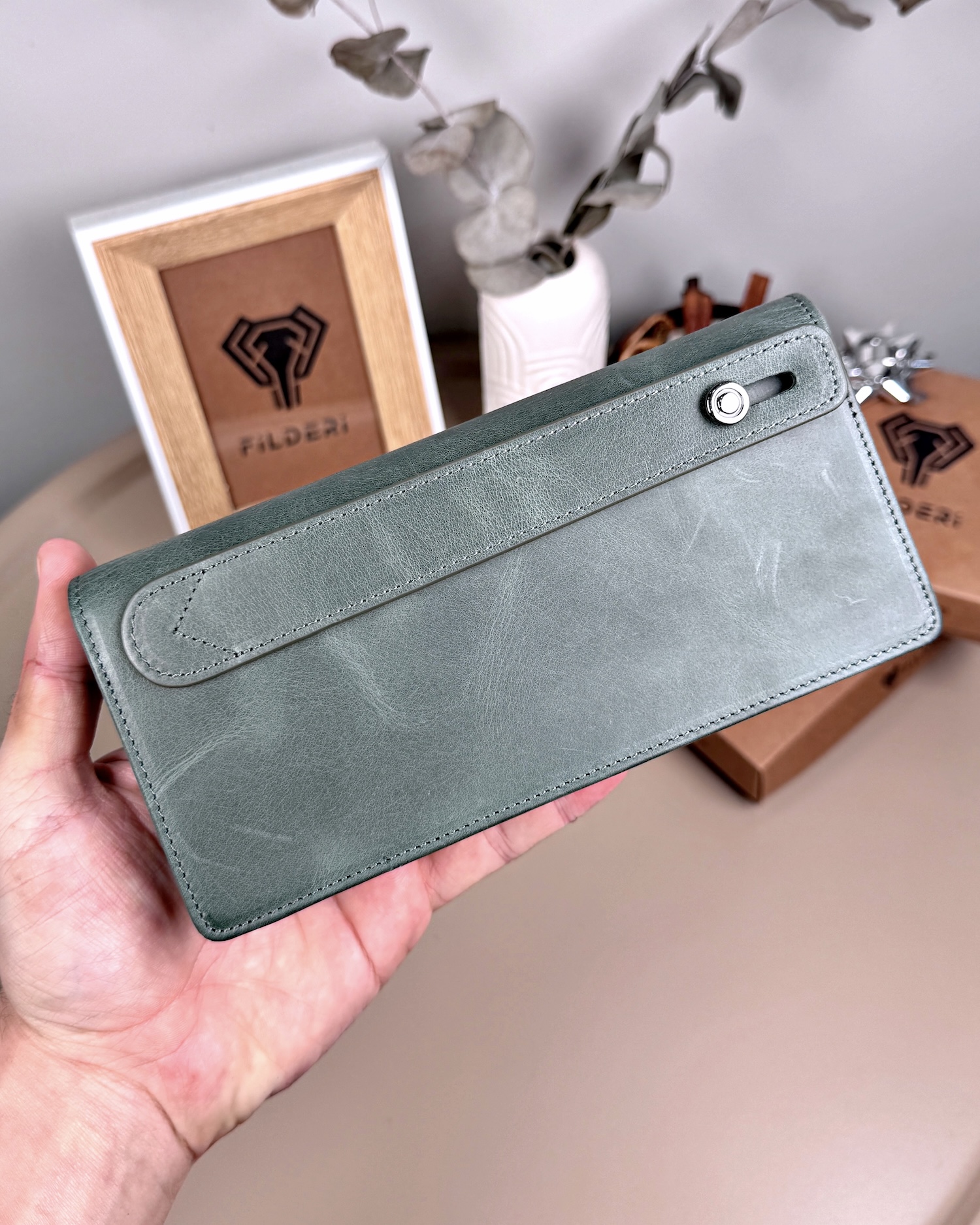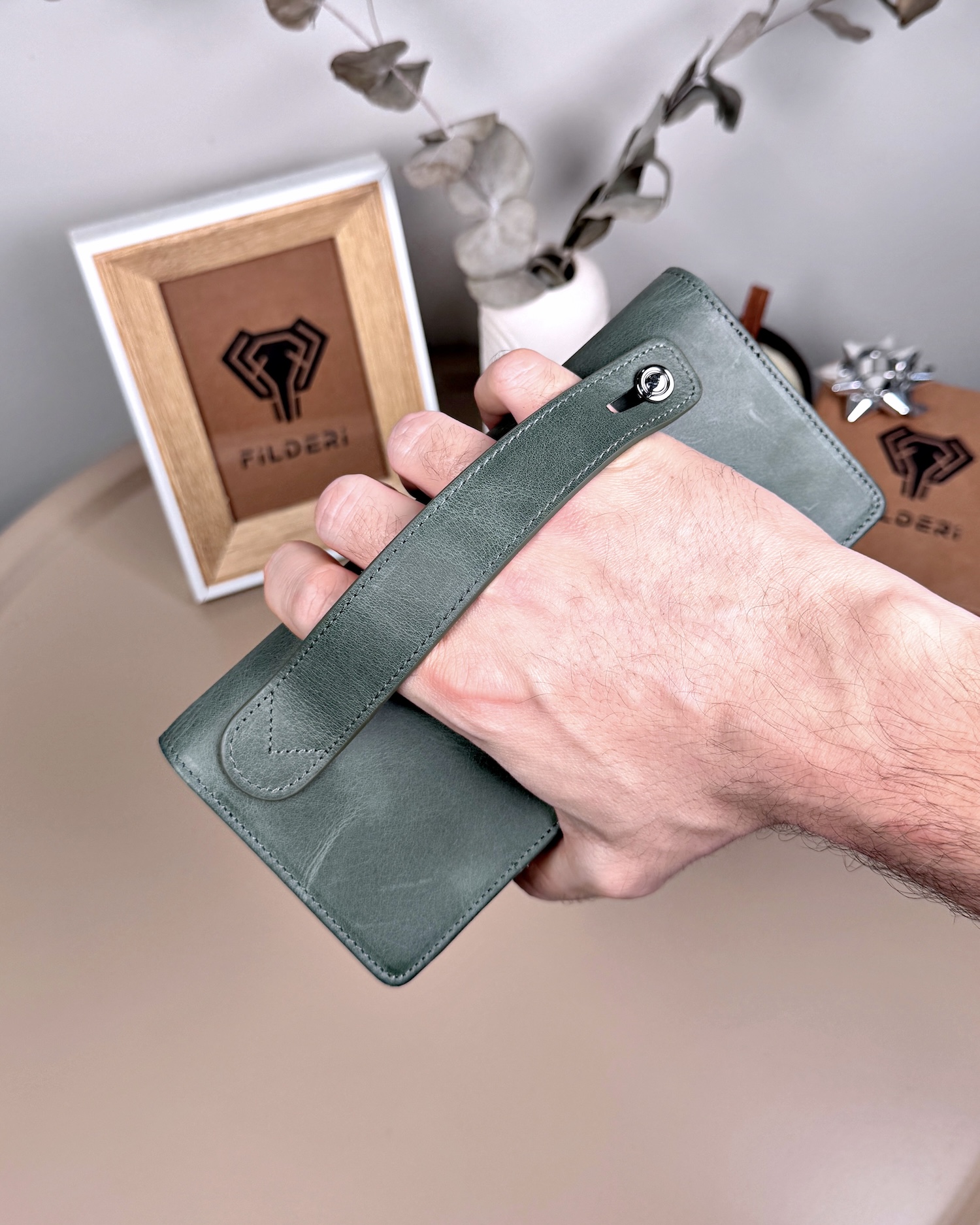 Telefon Bölmeli Cüzdan Hakiki Deri – El Tutamaçlı Yeşil Renk | 2028