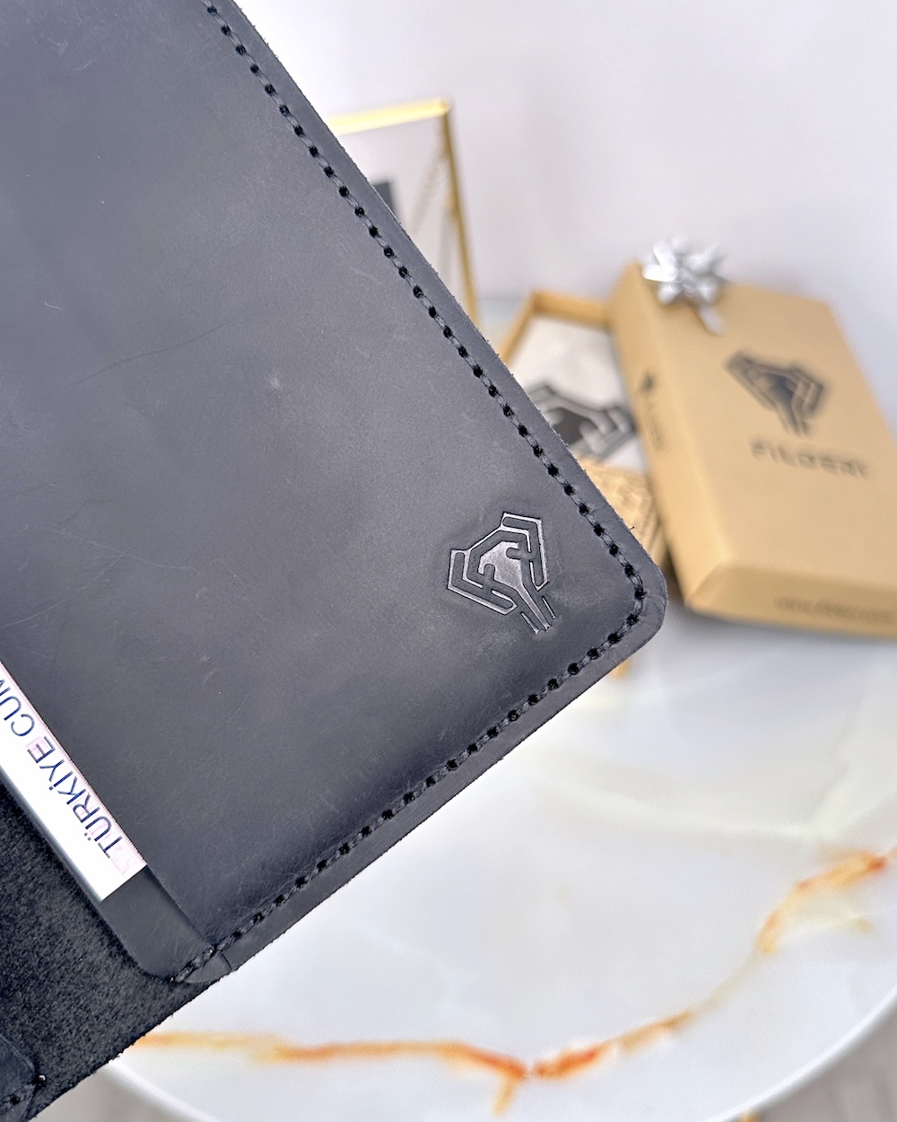 Telefon Bölmeli Cüzdan – El Dikişi, Hakiki Deri Siyah | 2072