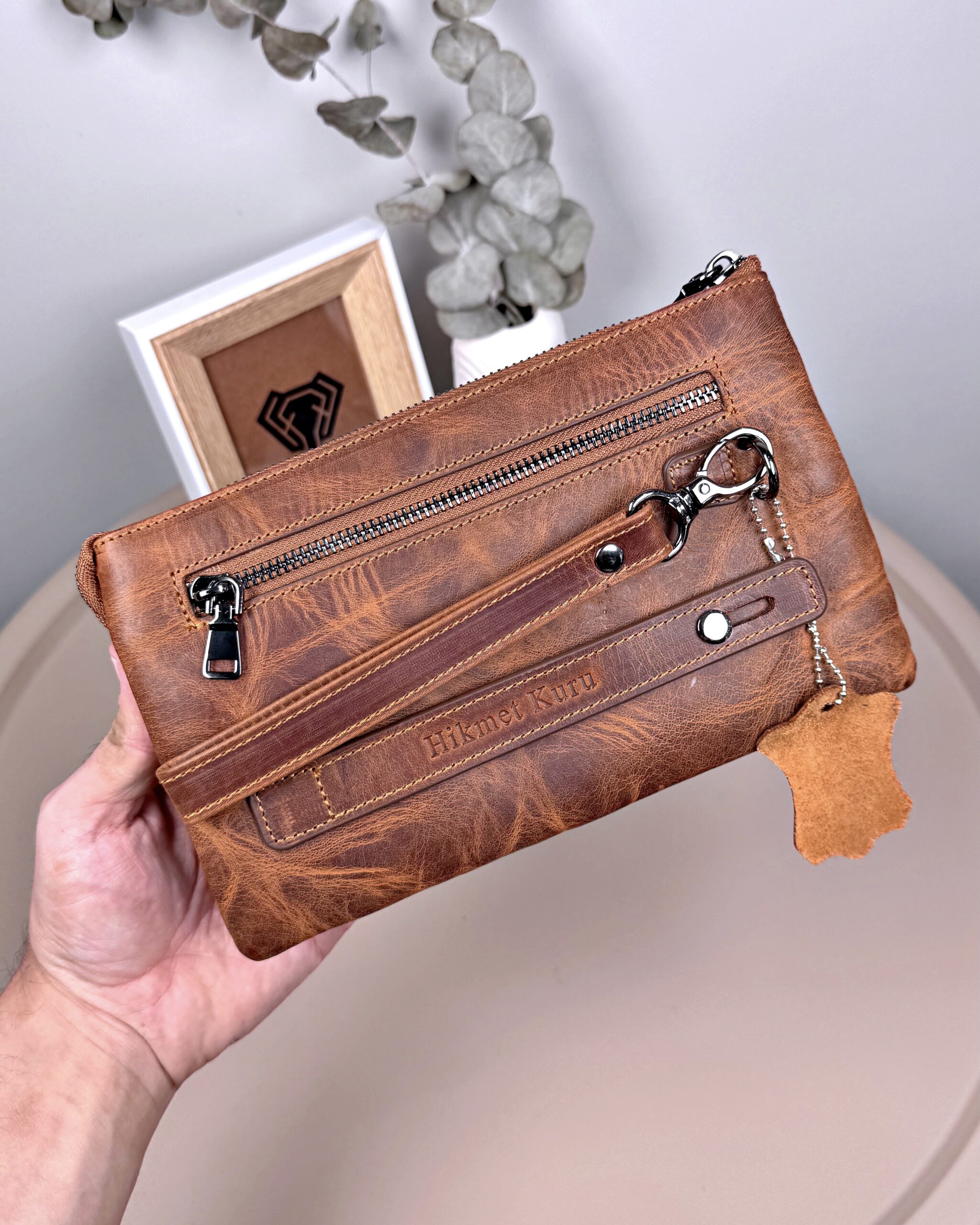 Erkek El Çantası – Eskitme Fındık Hakiki Deri | 2113