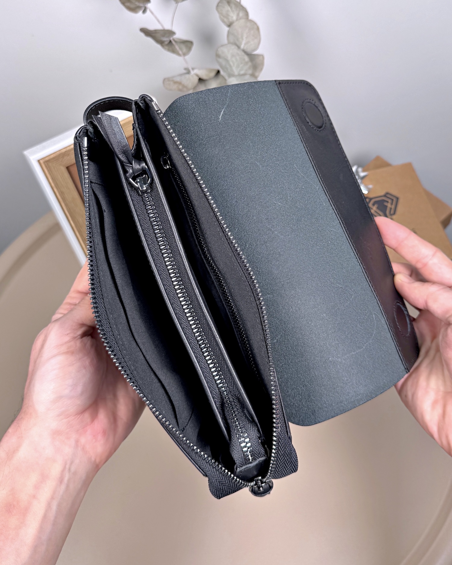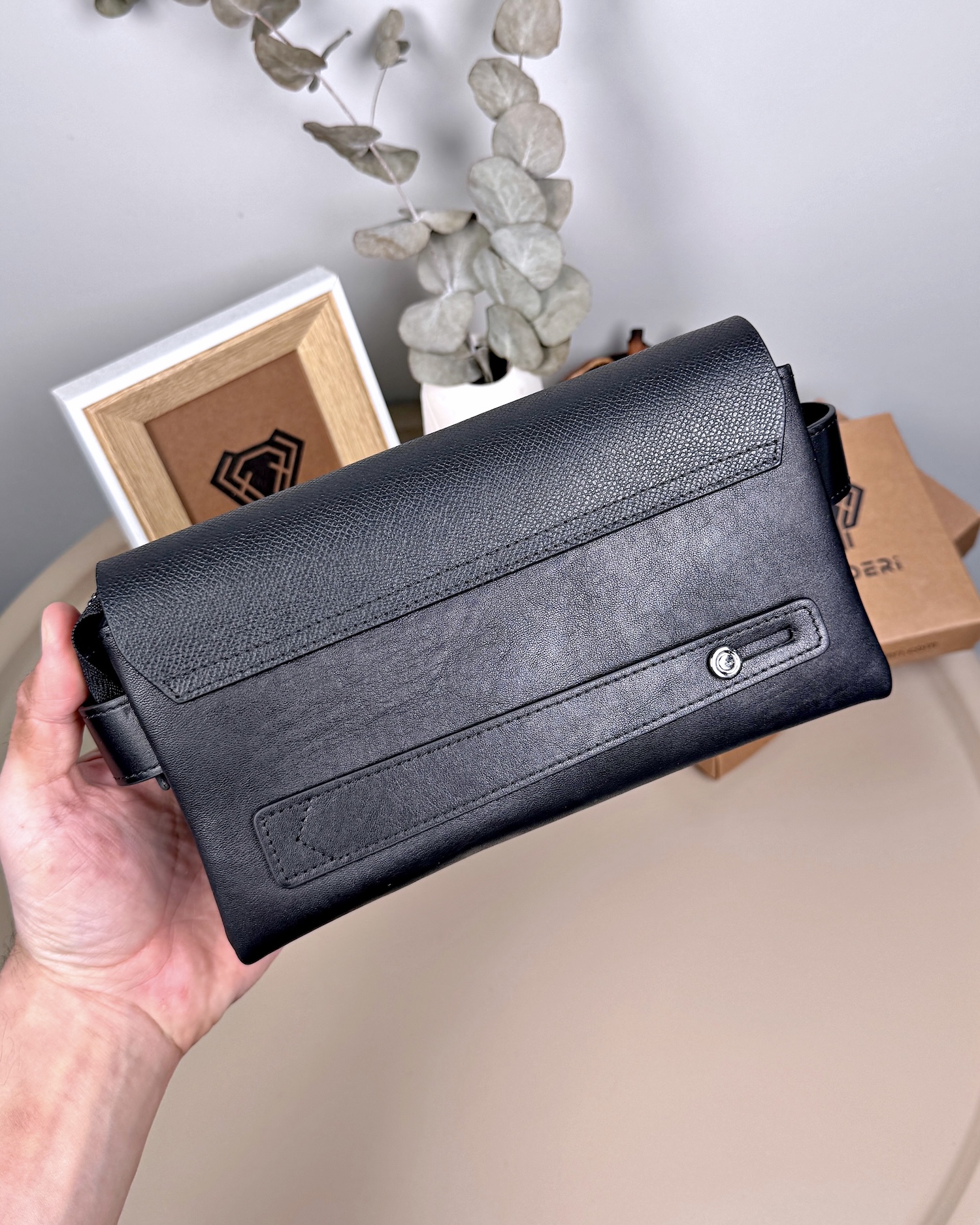 Erkek El Çantası – Hakiki Deri, Siyah Desenli Kapak | 2056