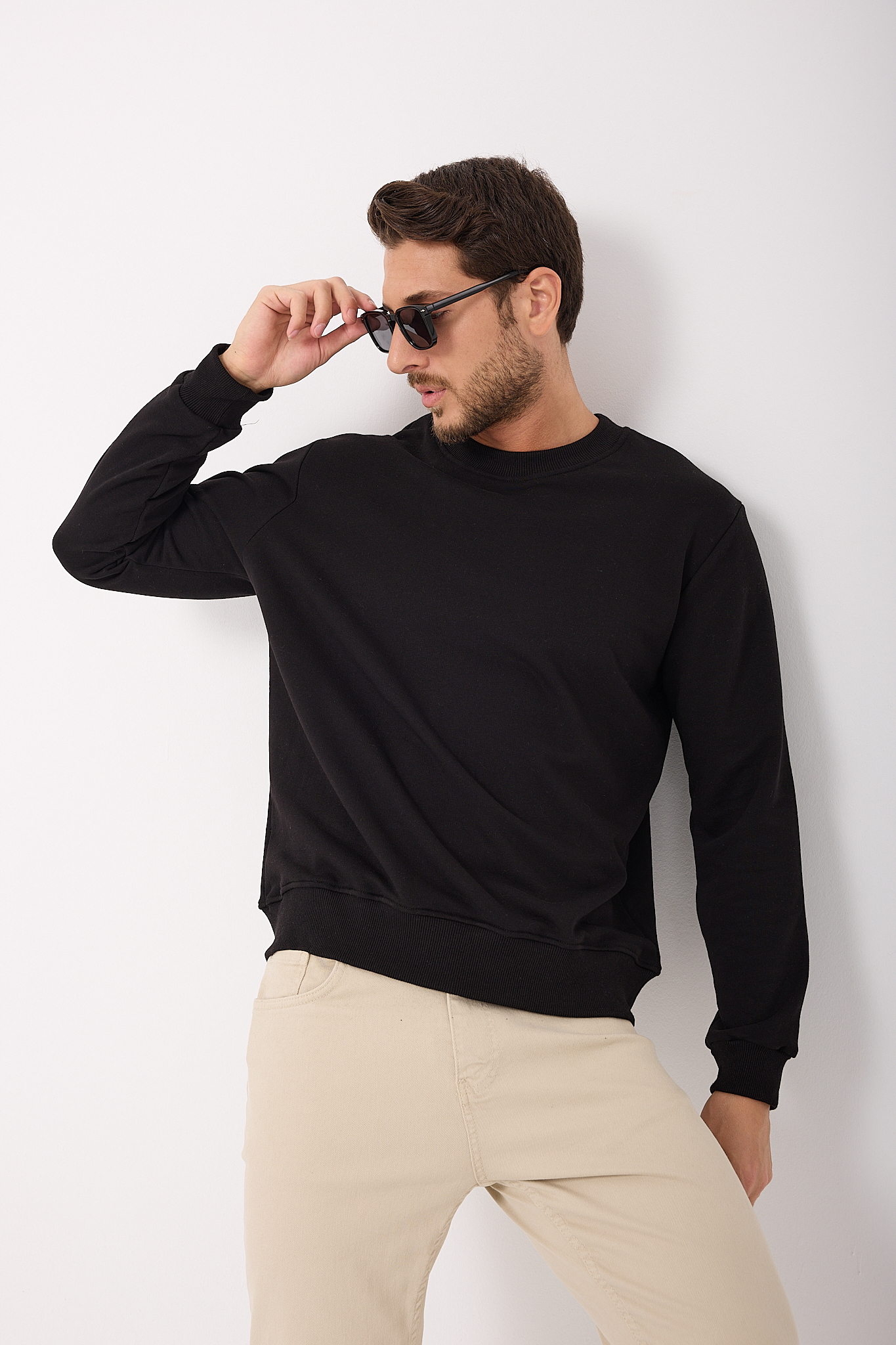 Bisiklet yaka detayı klasik bir görünüm kazandırırken, minimal tasarım her yaşa ve her tarza uyum sağlar. Mevsim bağımsız olarak kullanılabilen bu sweatshirt; serin yaz akşamlarında tek başına, kış aylarında ise mont altına ideal bir tamamlayıcıdır.