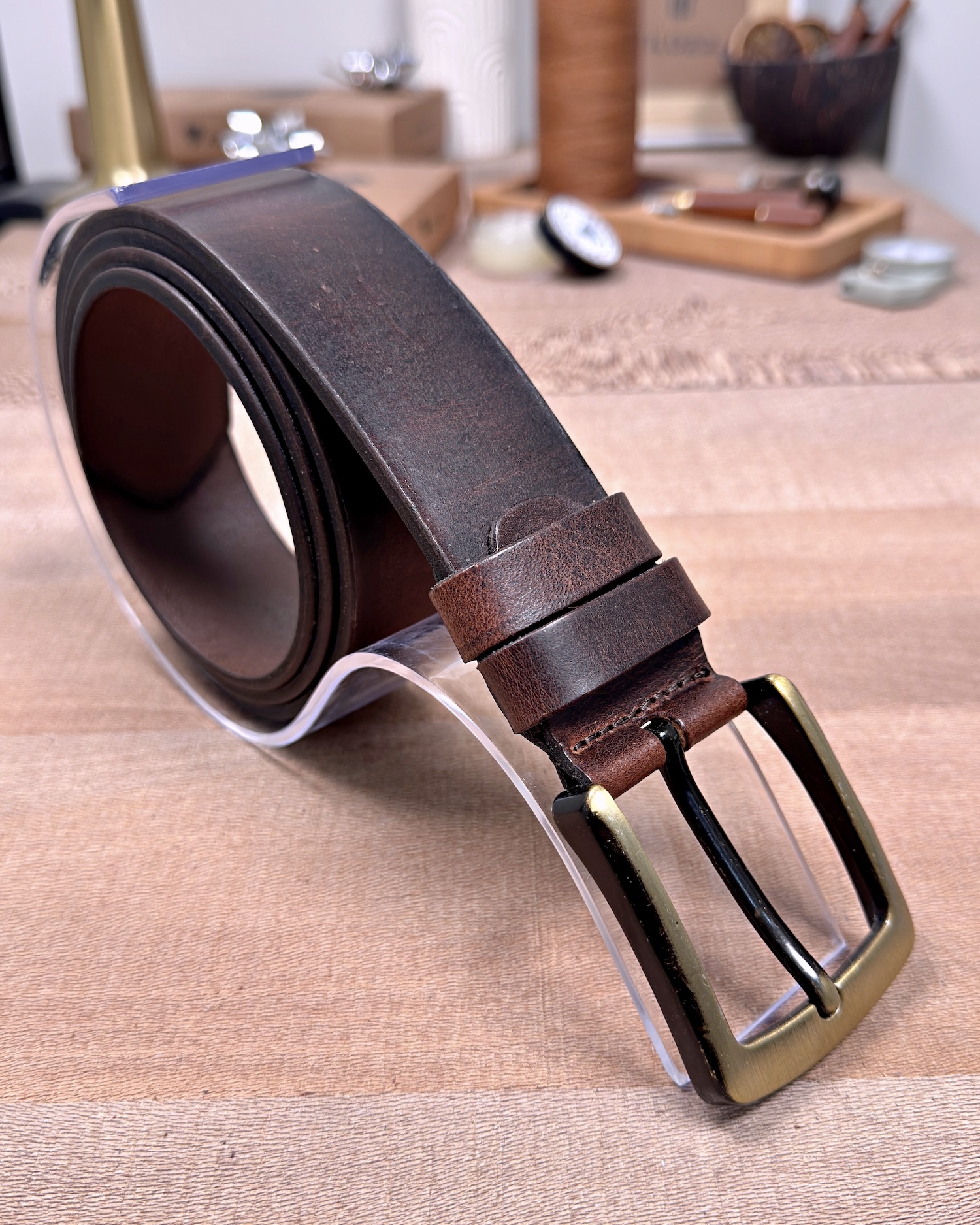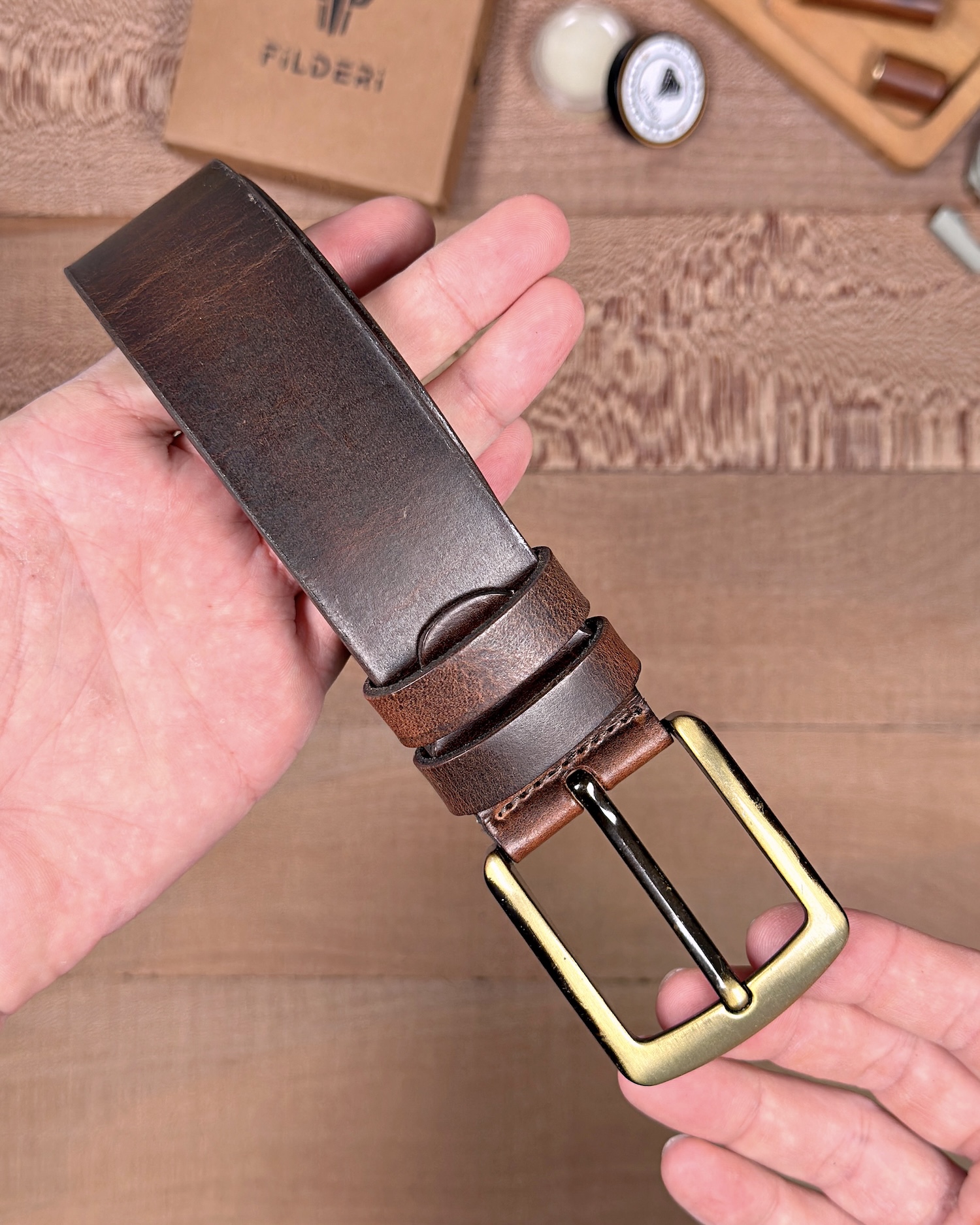 Erkek Kemer – Kahverengi Eskitme Hakiki Deri, Günlük Kullanım Uyumlu