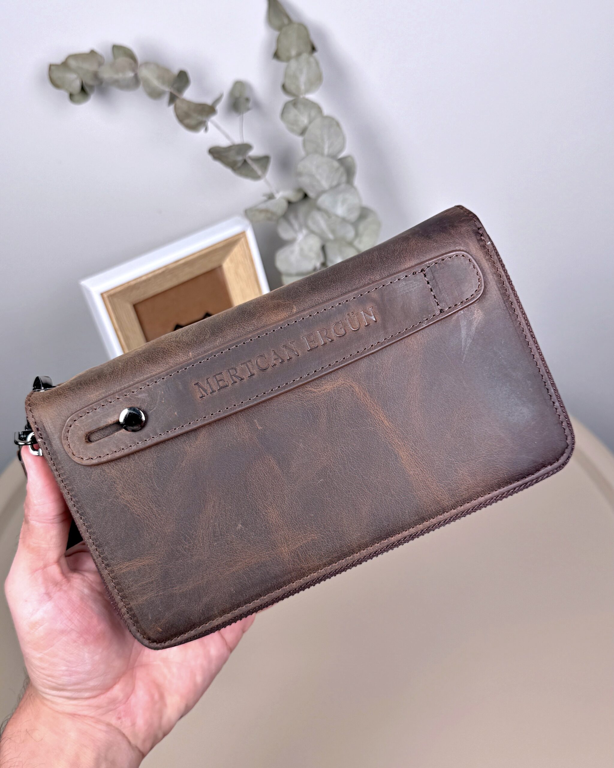 • Hakiki crazy deri ürünler eskitme efektlidir. Çizilme kırışma ve kararma olması normaldir kullandıkça rengi doukusu değişecektir.