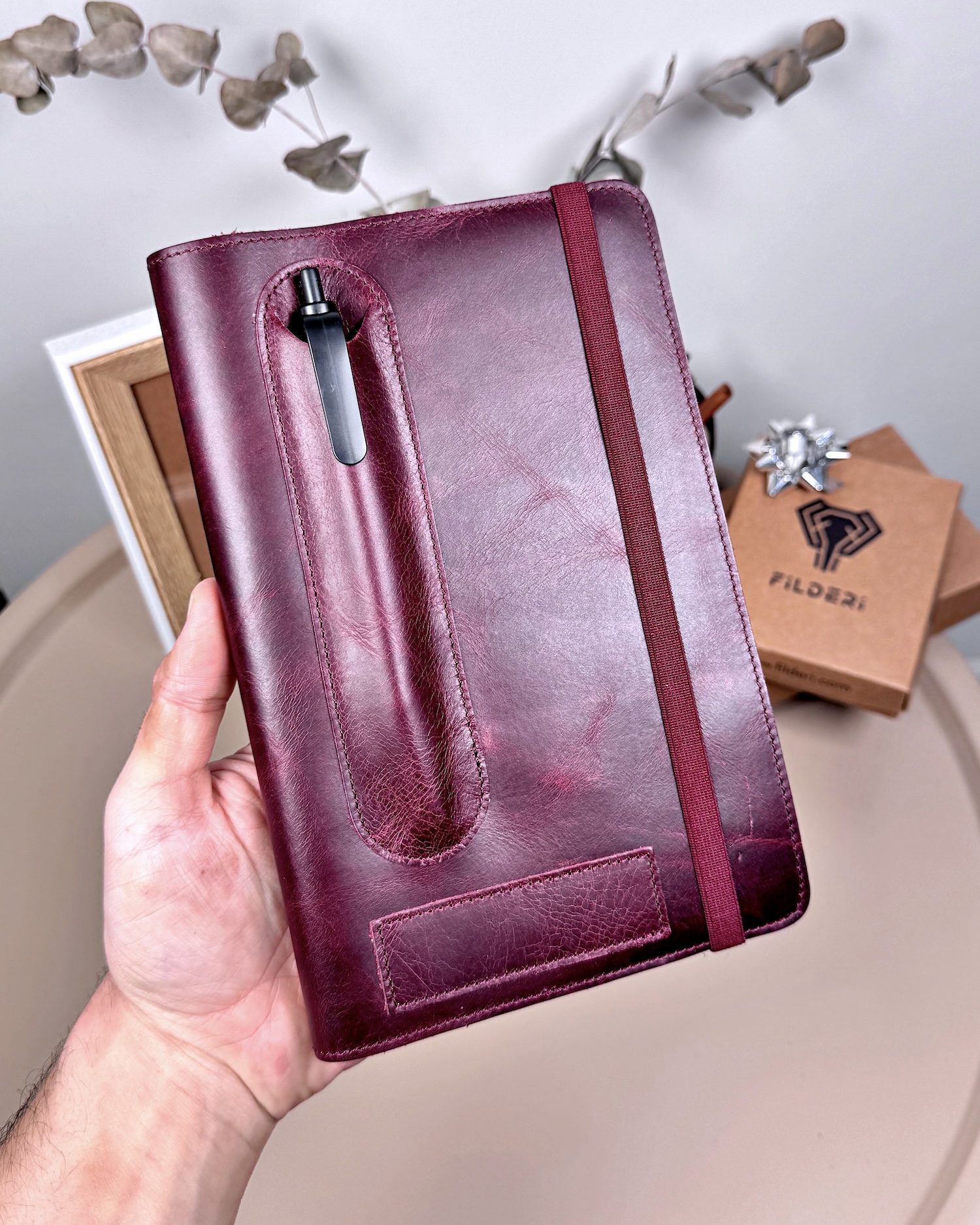 Hakiki Deri Ajanda – Kalem Yuvalı, İsme Özel, Bordo | 2129