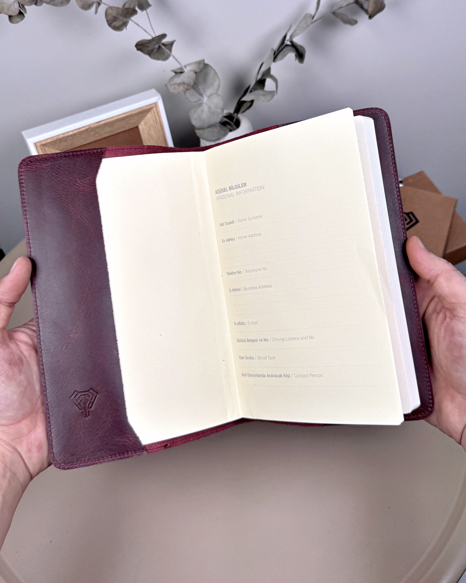 Hakiki deri yüzeyi, zamansız dokusu ve kişiye özel tasarım detayıyla günlük planlamanıza şıklık katan premium ajanda organizer. Ön yüzünde yer alan kalem yuvası sayesinde kaleminiz her zaman yanınızda olur, lastikli kapama detayı ise ajandanızı daha güvenli taşımayı sağlar. İç ajandasıyla birlikte gönderilir; sayfalar bittiğinde kolayca yenisi ile değiştirilebilir. Kaliteli işçiliği ve uzun ömürlü derisi ile yıllarca kullanılmaya uygundur.