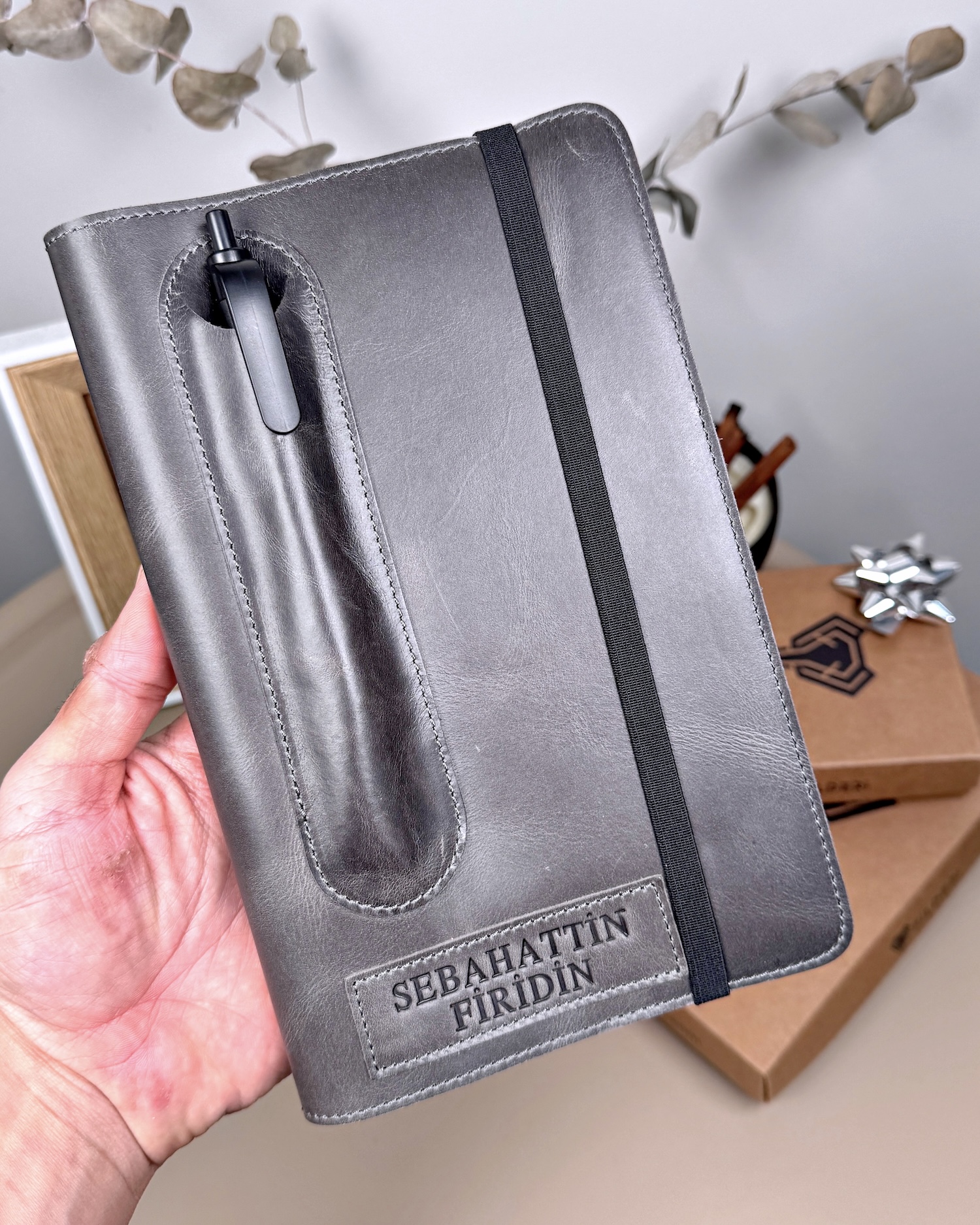Hakiki Deri Ajanda – Kalem Yuvalı, İsme Özel, Gri | 2129