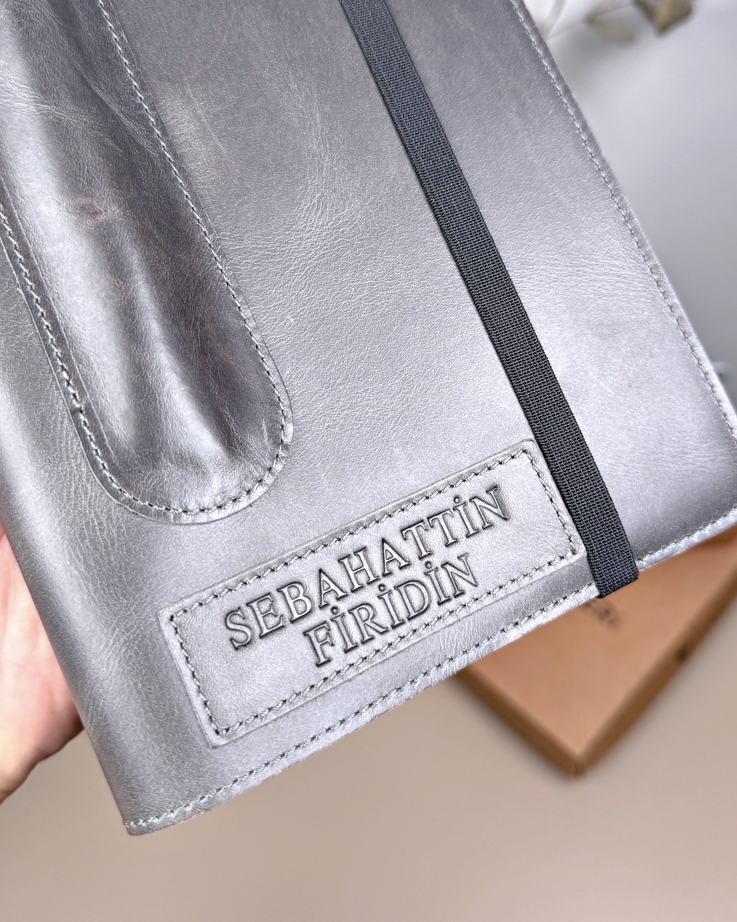 Hakiki Deri Ajanda - Kalem Yuvalı, İsme Özel, Gri | 2129 Hakiki Deri Ajanda - Kalem Yuvalı, İsme Özel, Gri | 2129