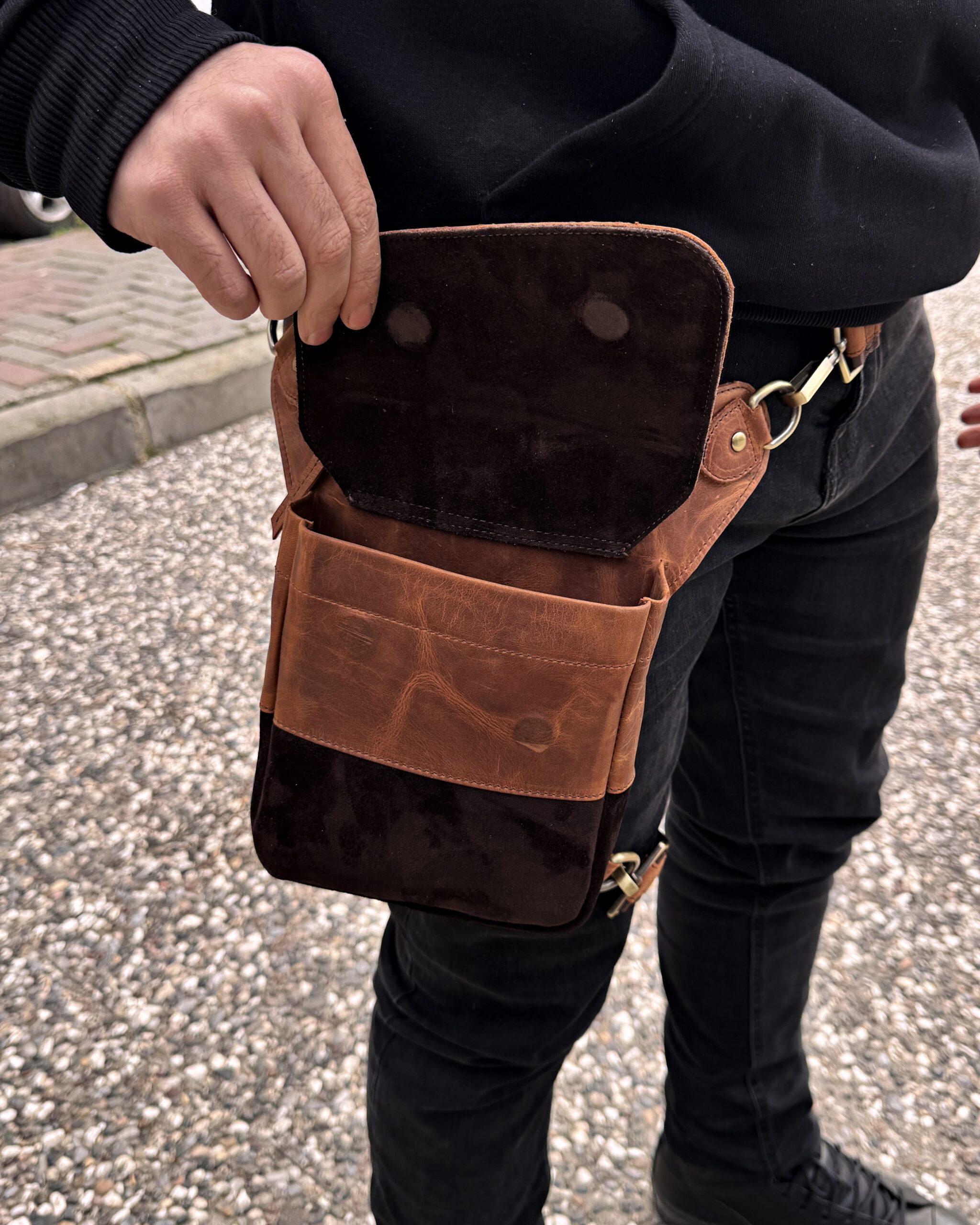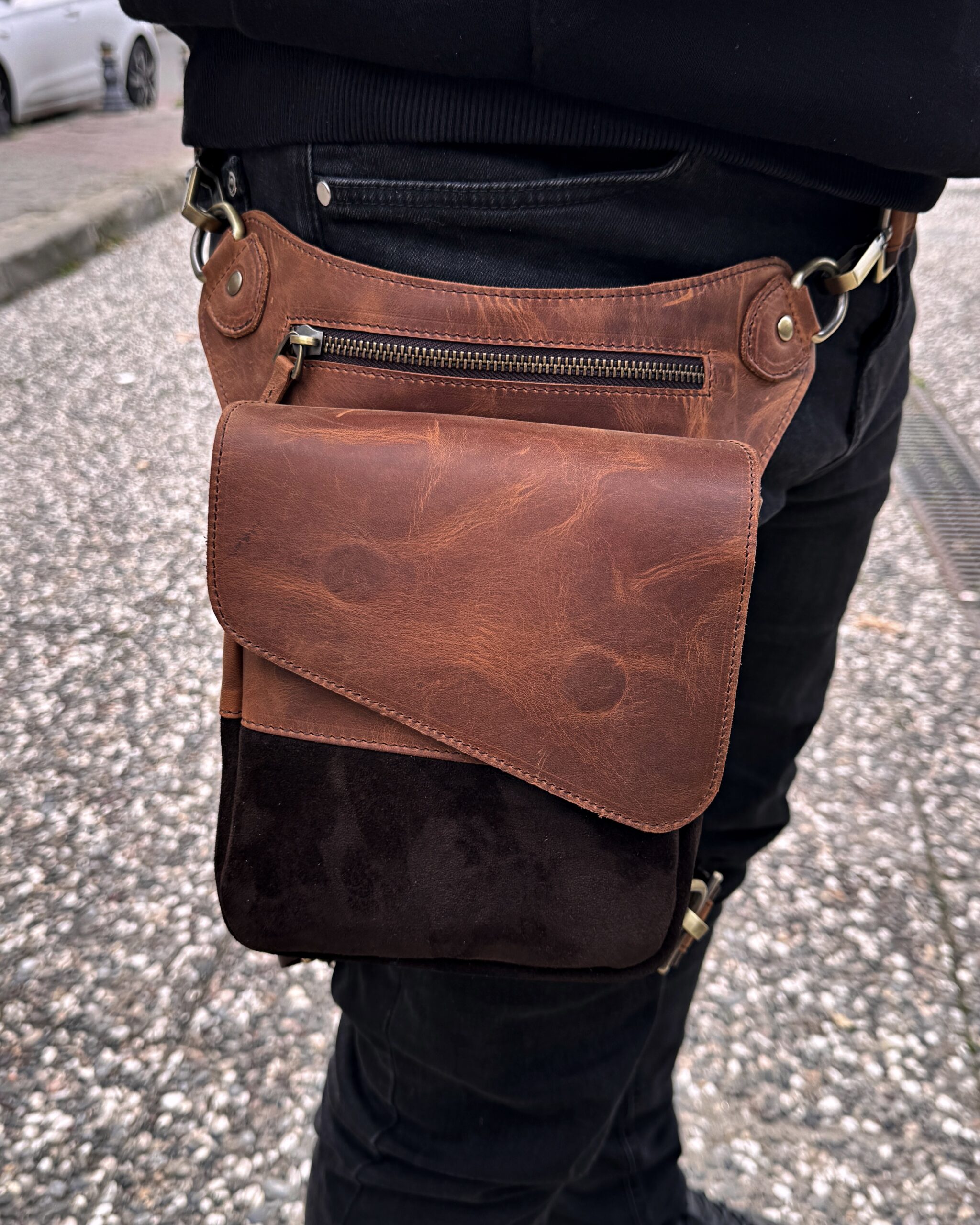 Hakiki Deri Bacak Bel Çantası – Fındık Renk | 2130