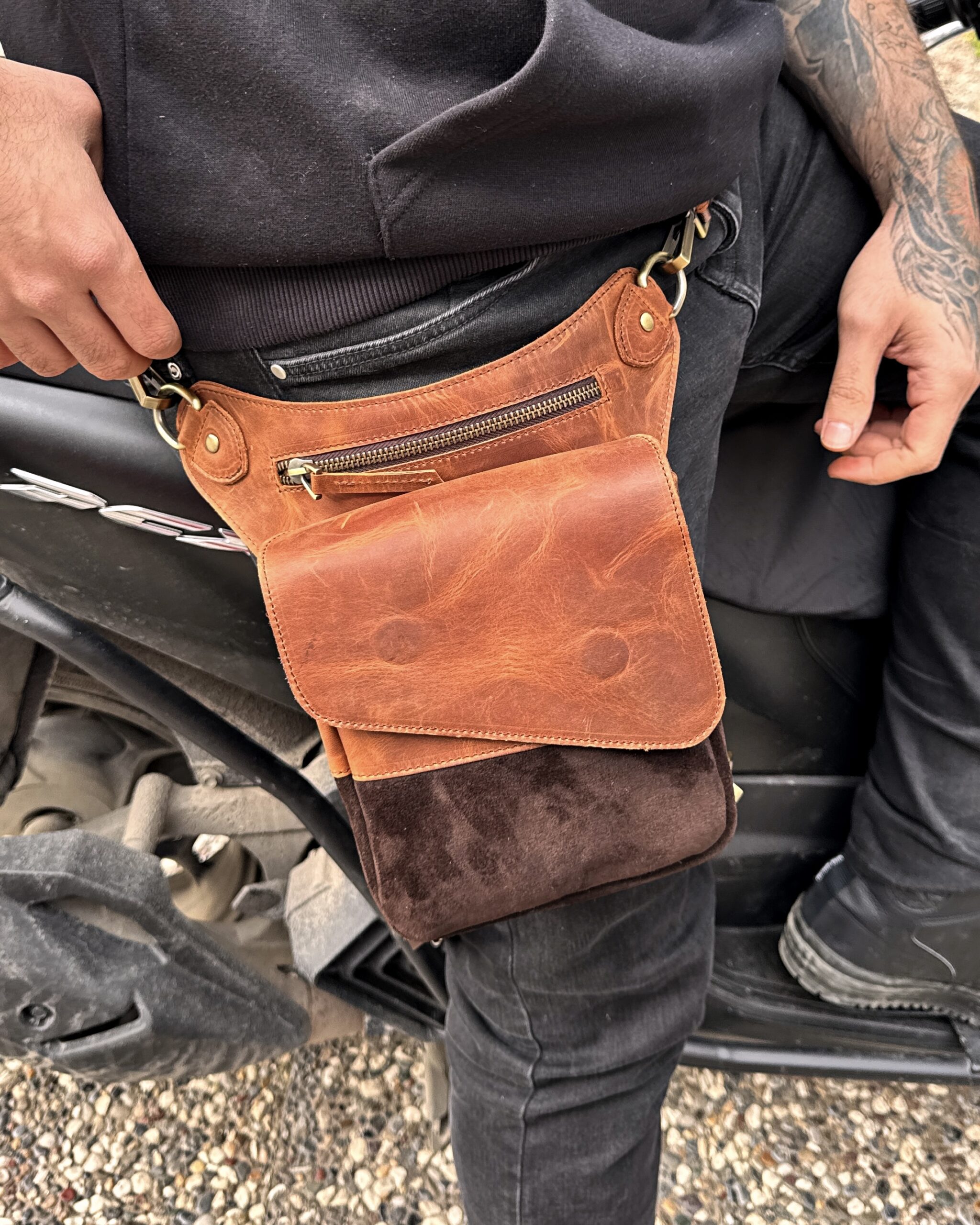 Hakiki Deri Motorcu Çantası – Fındık Renk | 2130