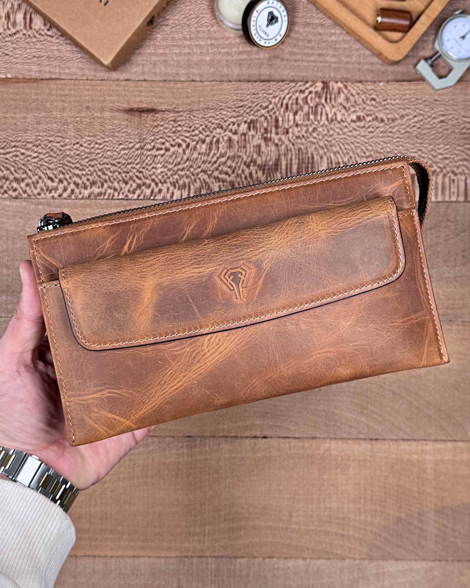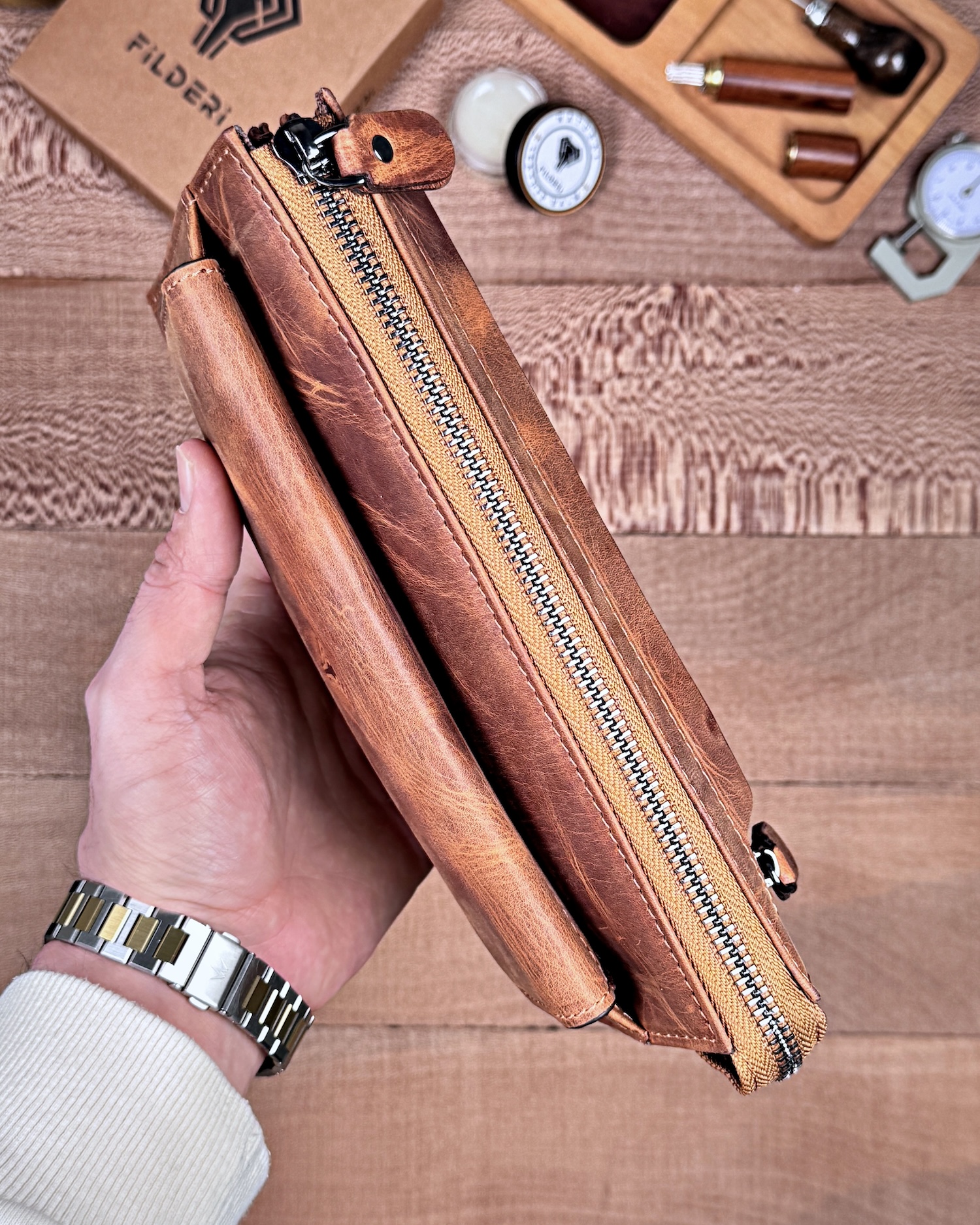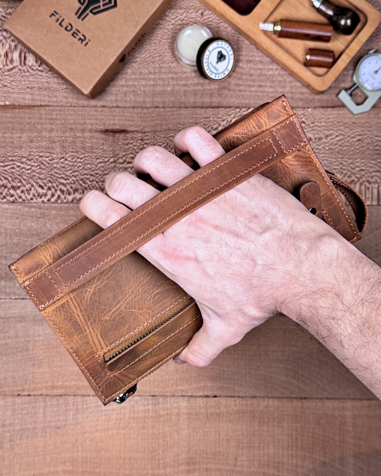 Hakiki Deri Erkek El Çantası – Çekmeli Kartlık, Fındık | 2137