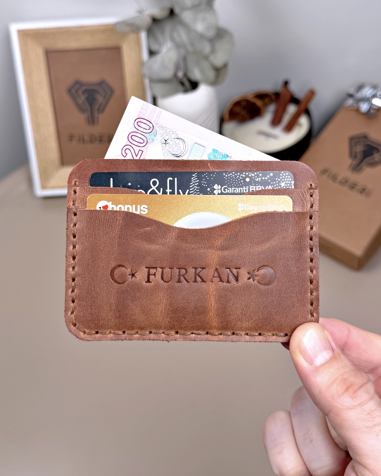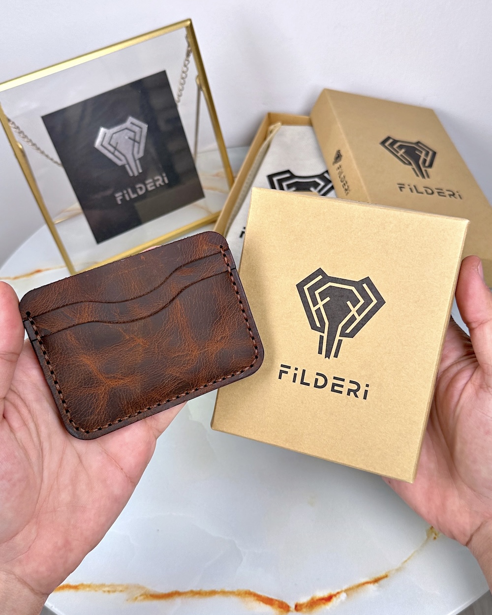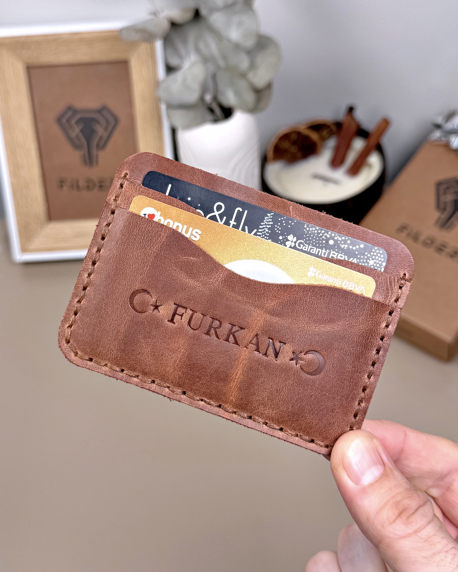 El Dikiş Kartlık – Hakiki Deri Fındık Renk | 2066