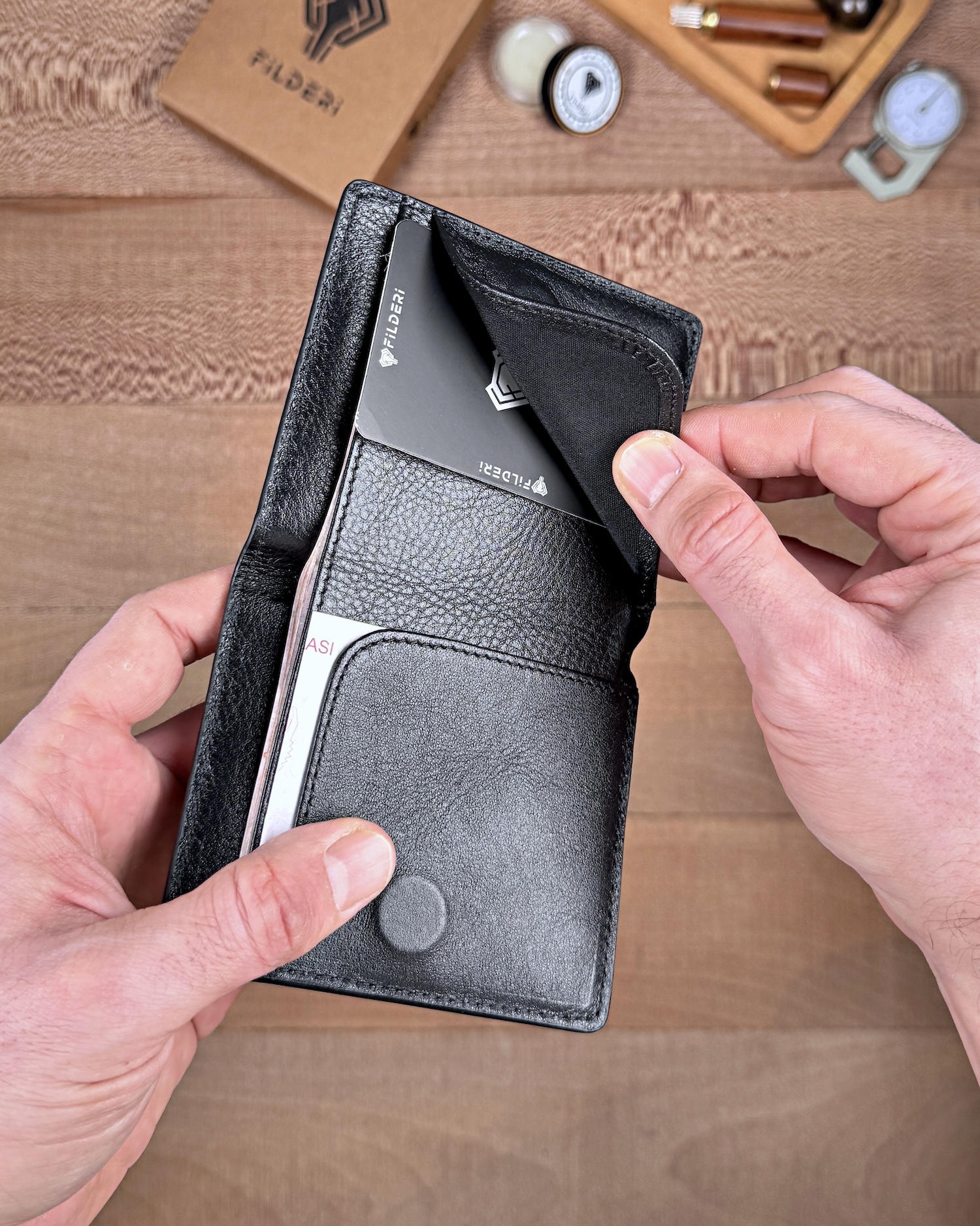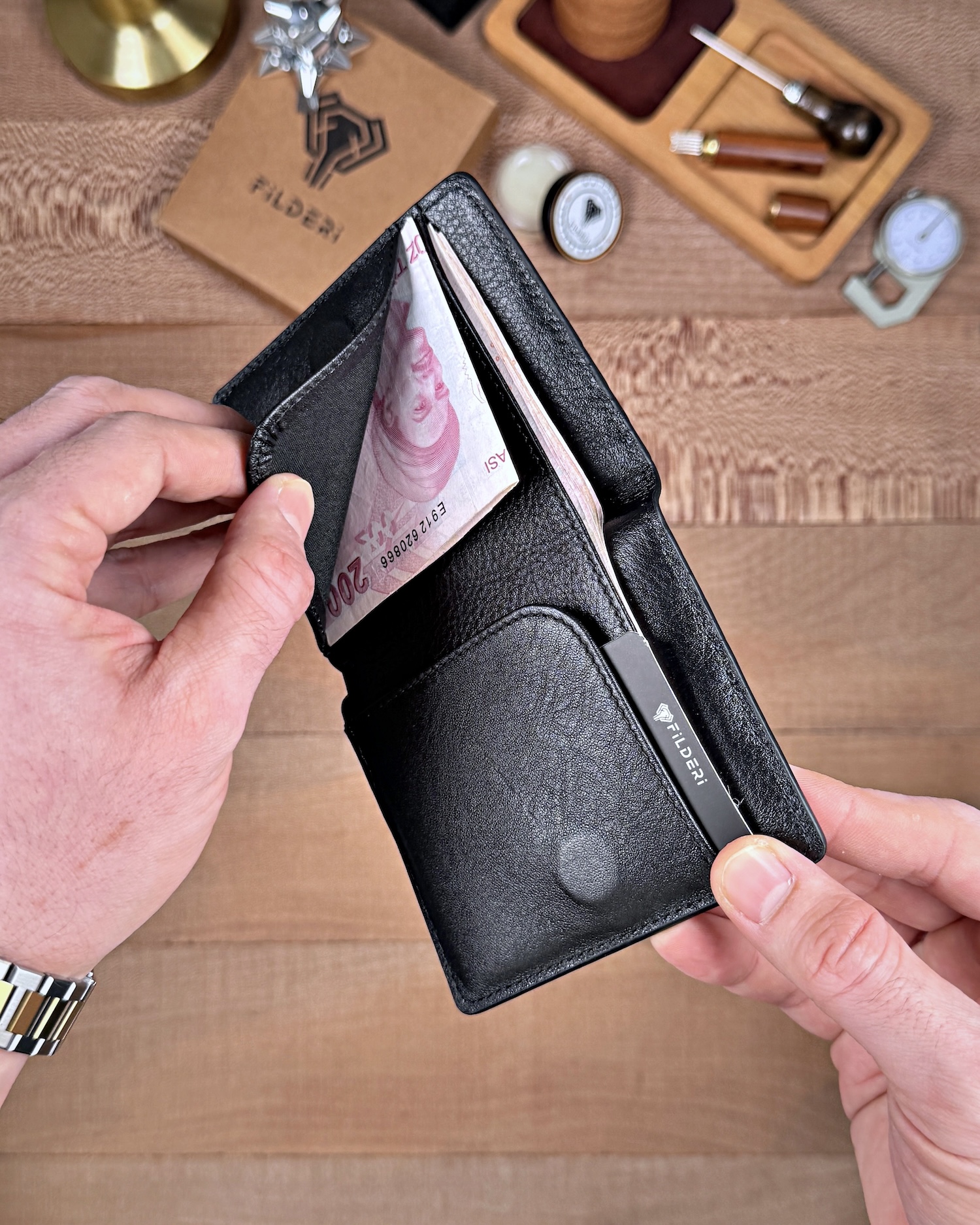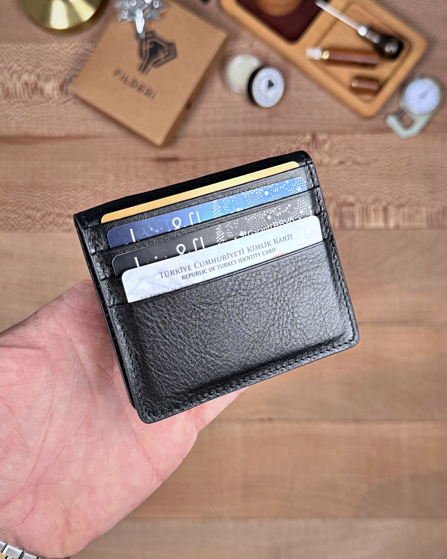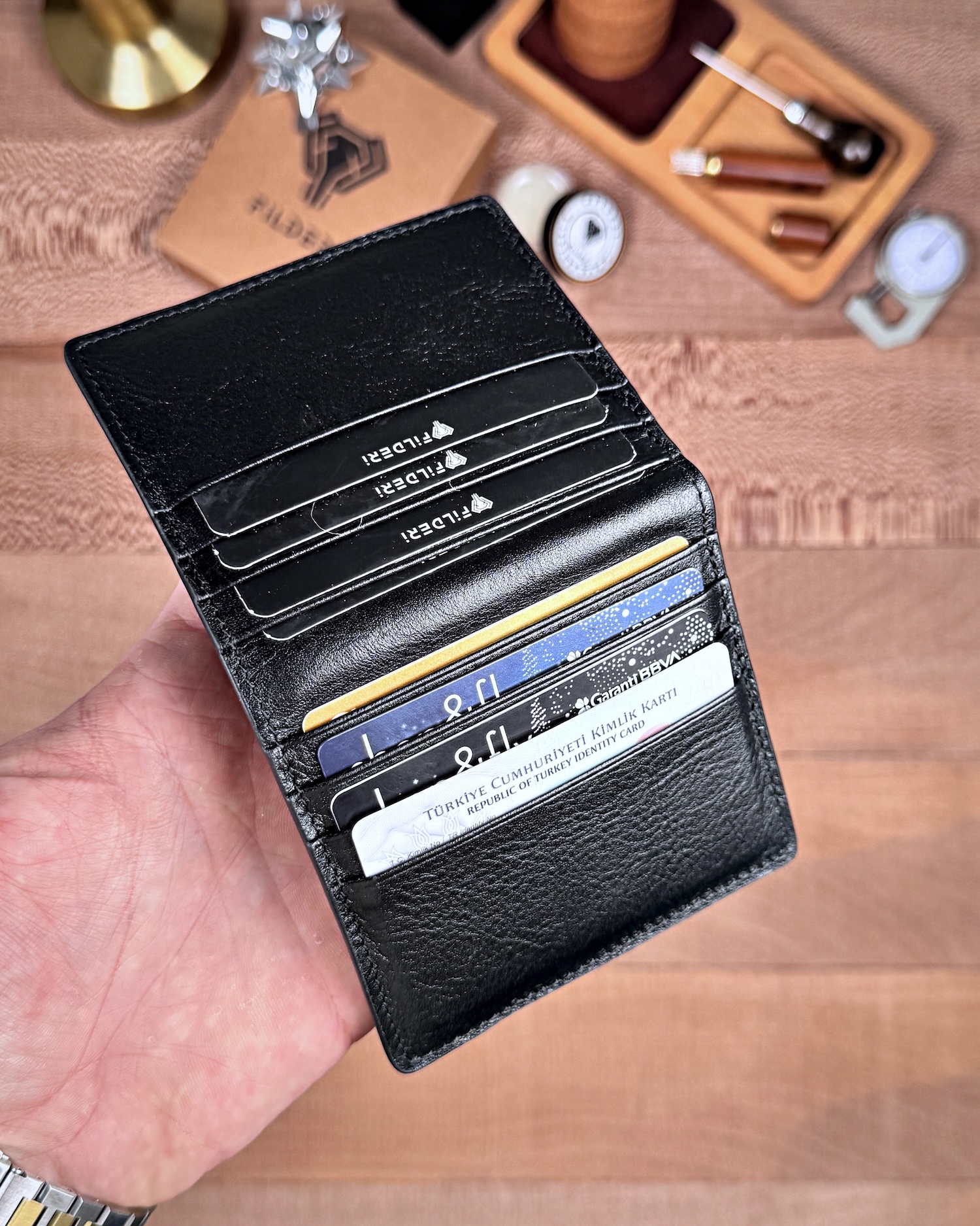 Hakiki Deri Mıknatıslı Kartlık Cüzdan – Siyah | 2138