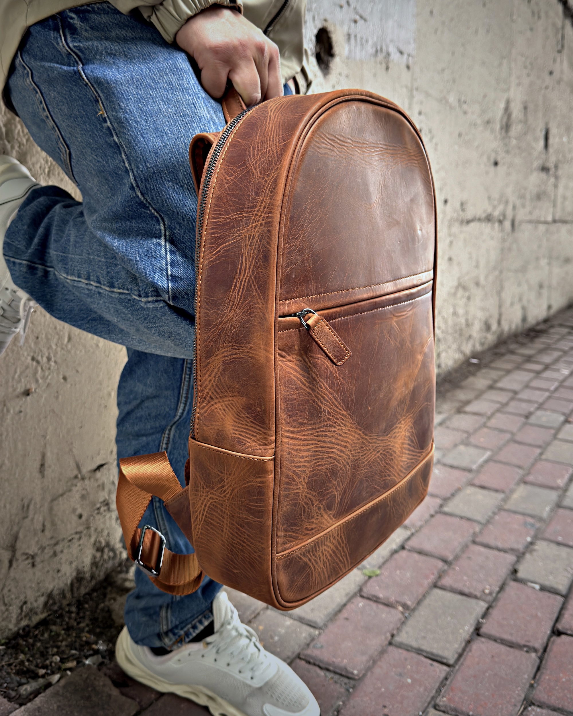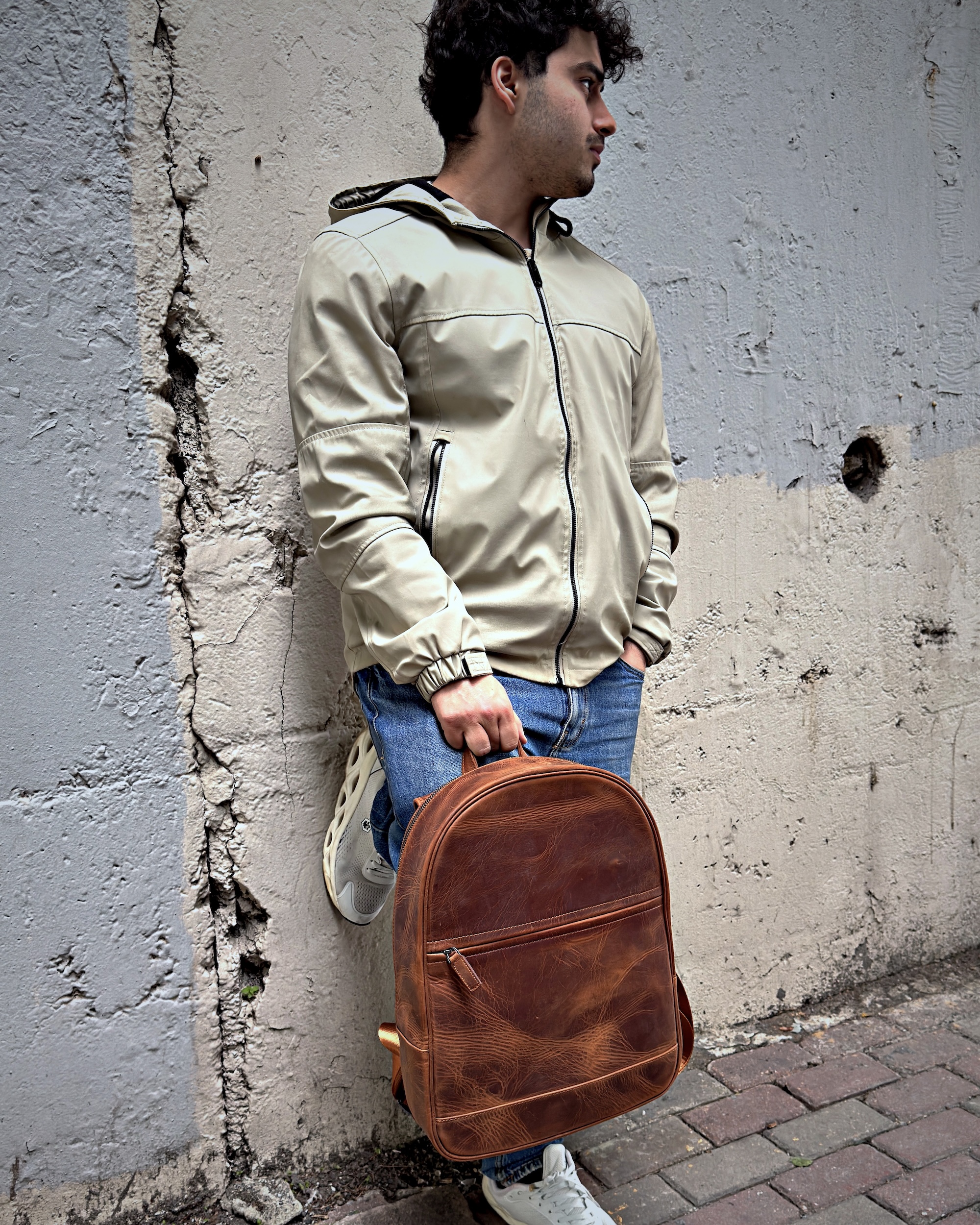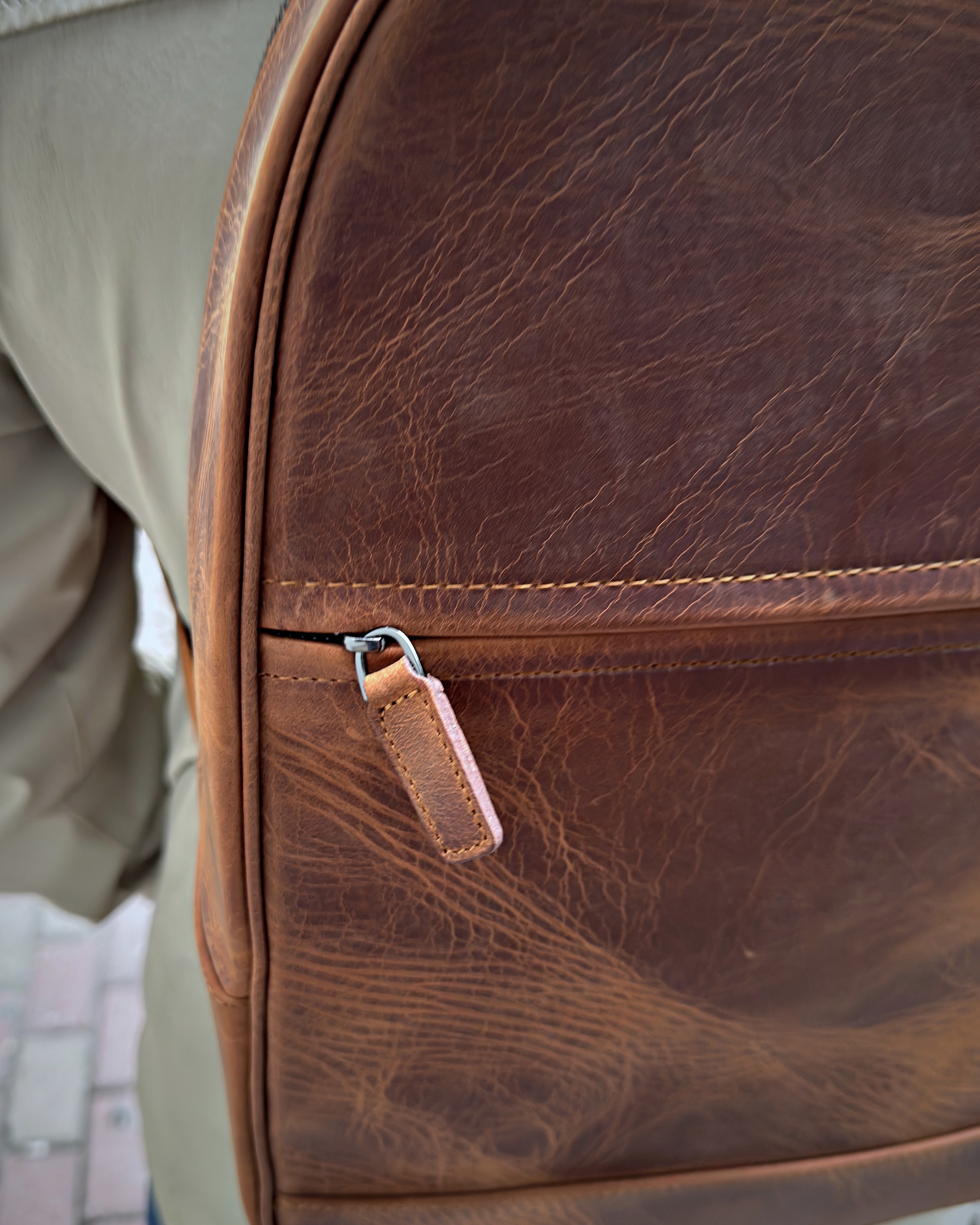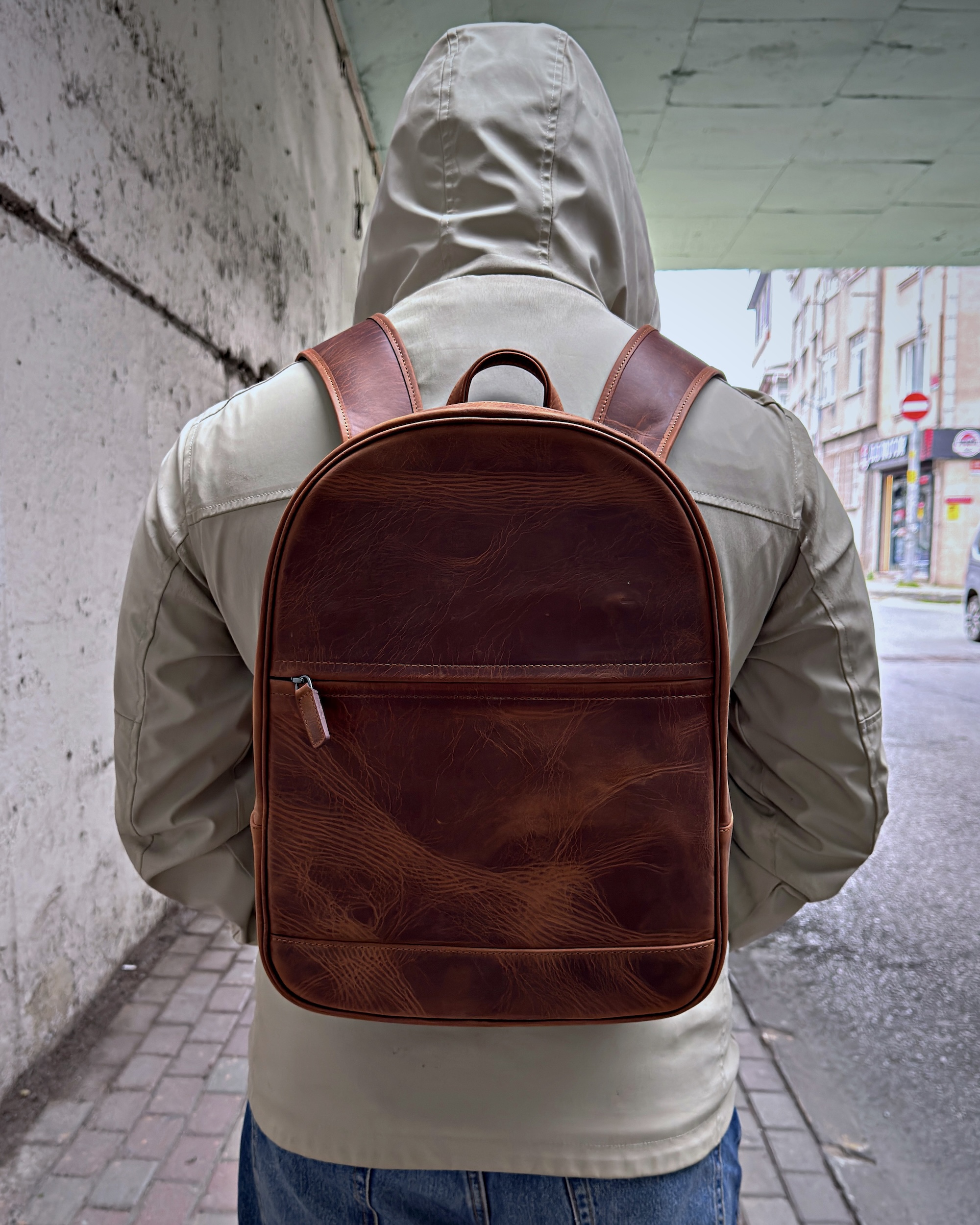 Hakiki Deri Sırt Çantası – Laptop Bölmeli Fındık Renk | 2148