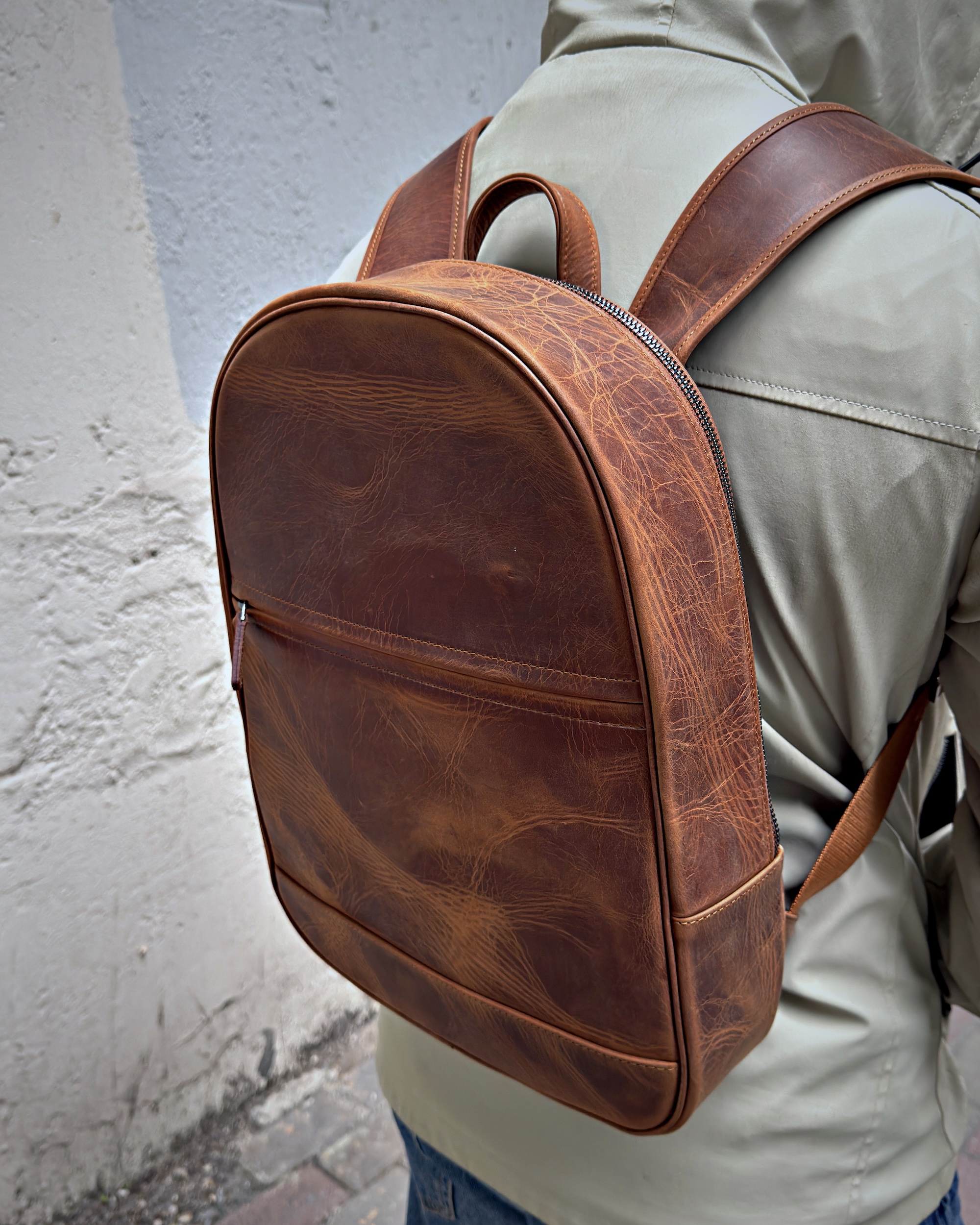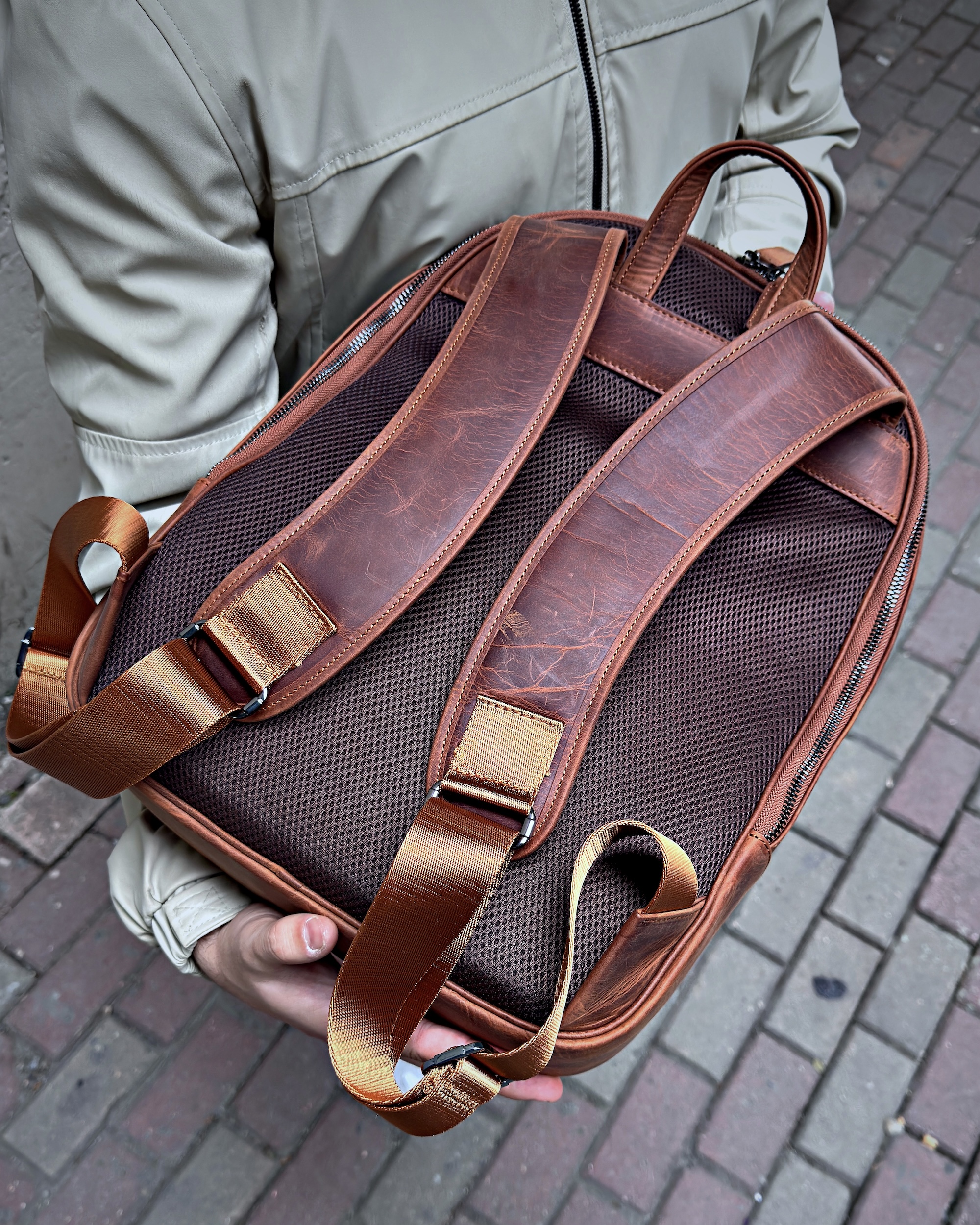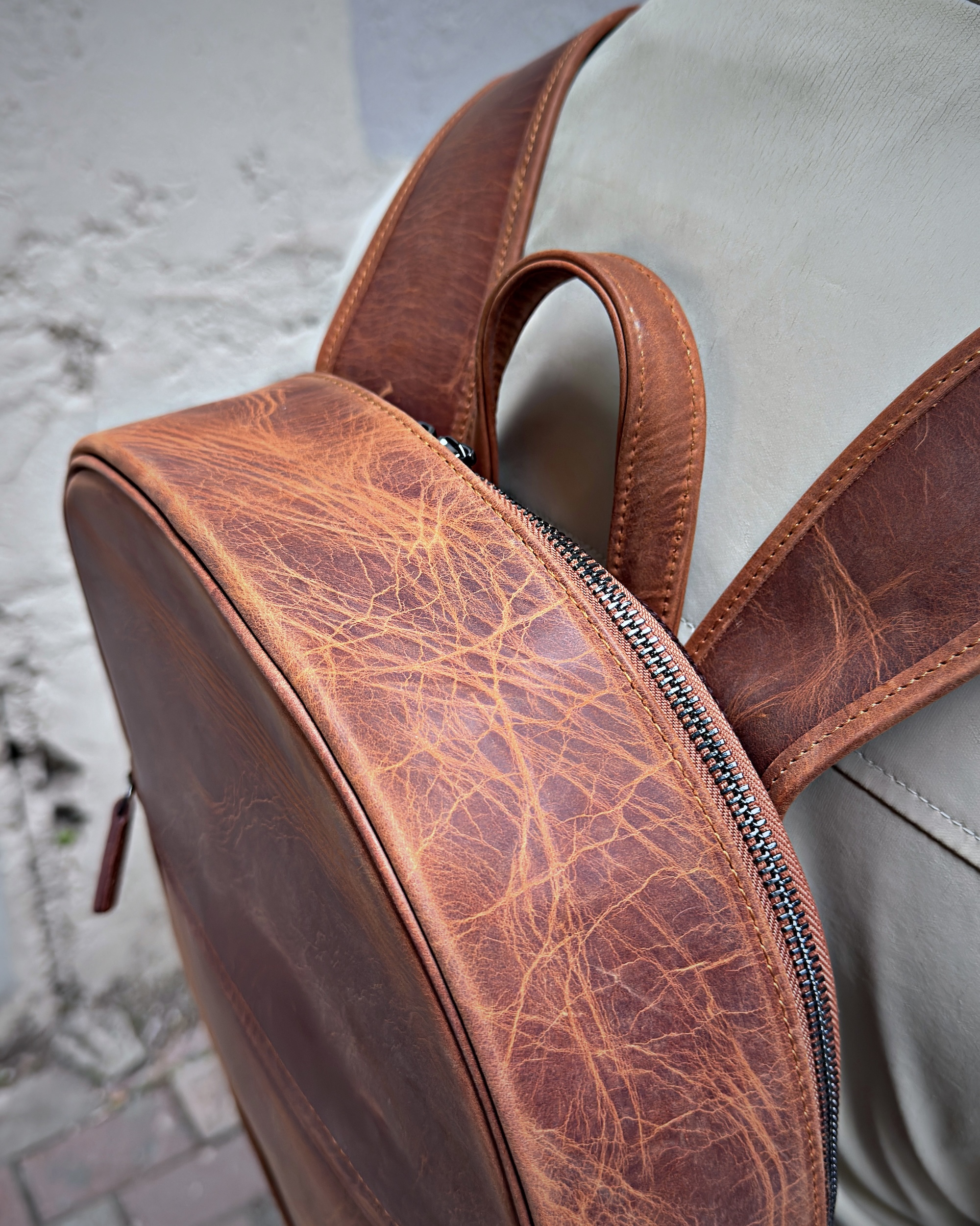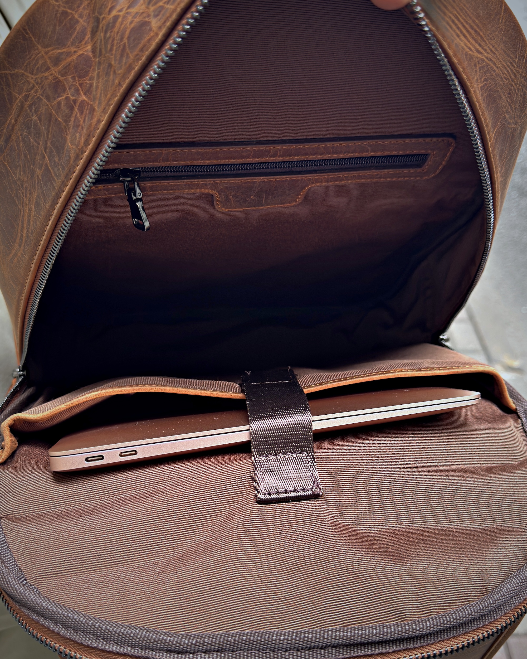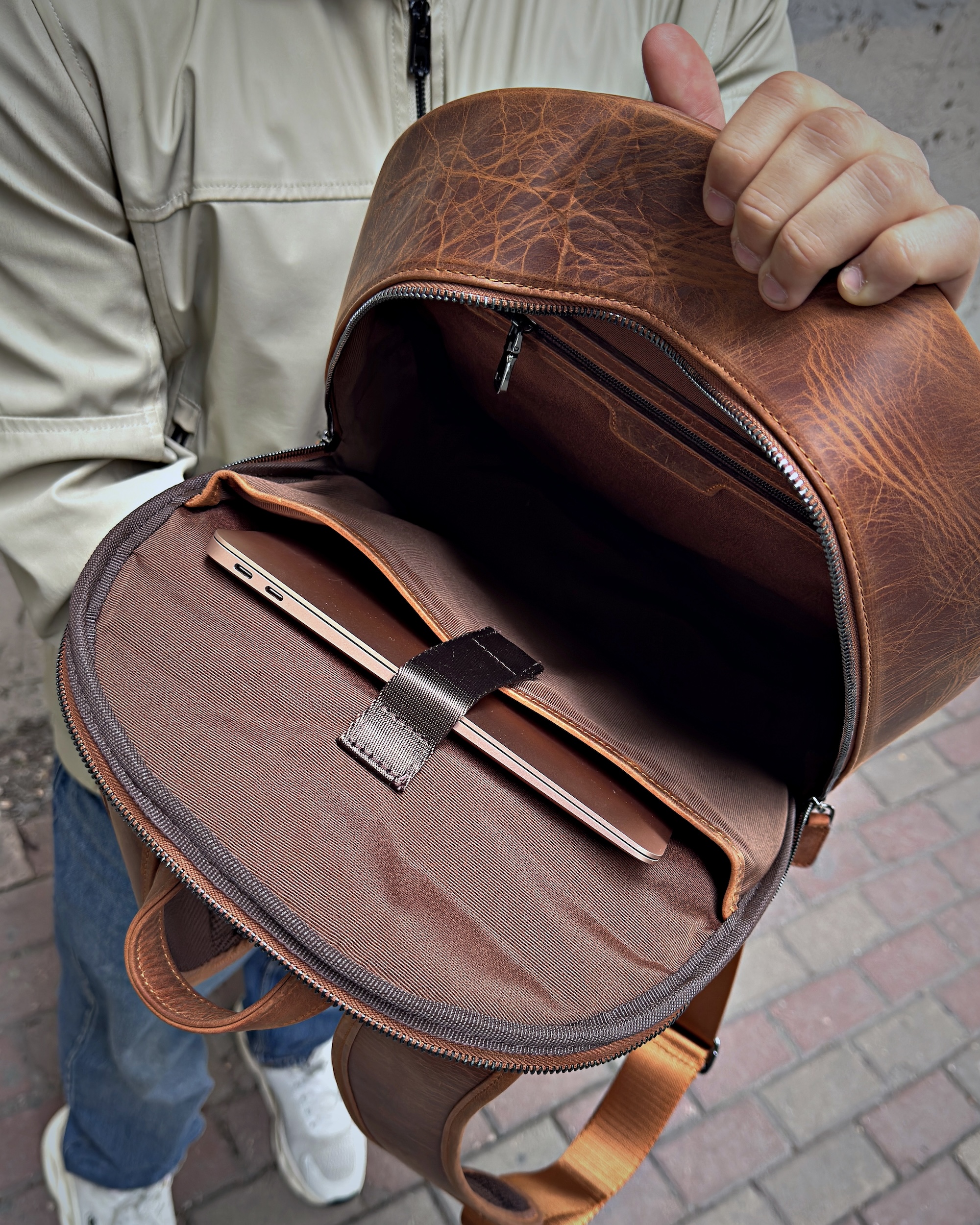 Hakiki Deri Sırt Çantası – Laptop Bölmeli Fındık Renk | 2148