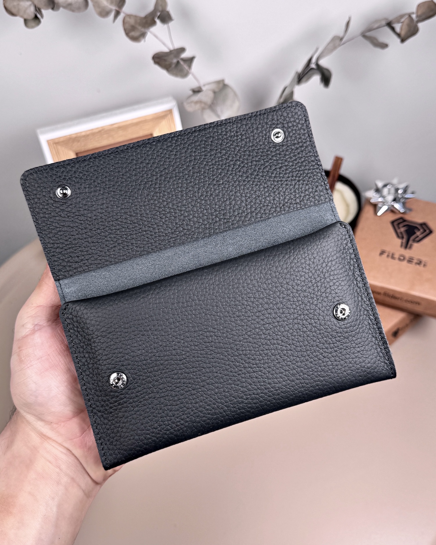 Sipariş vermeden önce önyargılarım vardı .sosyalmeydayadn bubtur seylere pek guvenmemekle birlikte arasirmalar yaptım. Çok güzel yorumlar gördüm. Almaya karar verdim . Ne kadar iyi bişey yaptığımı ürün iki gün sonra elime ulaşıp paketi açıp o deri cüzdanı elime alınca kalitesi kokusu. Kusursuzluğu beni çok etkiledi görselde gorunenenin aynısı fil deriye teşekkürler.