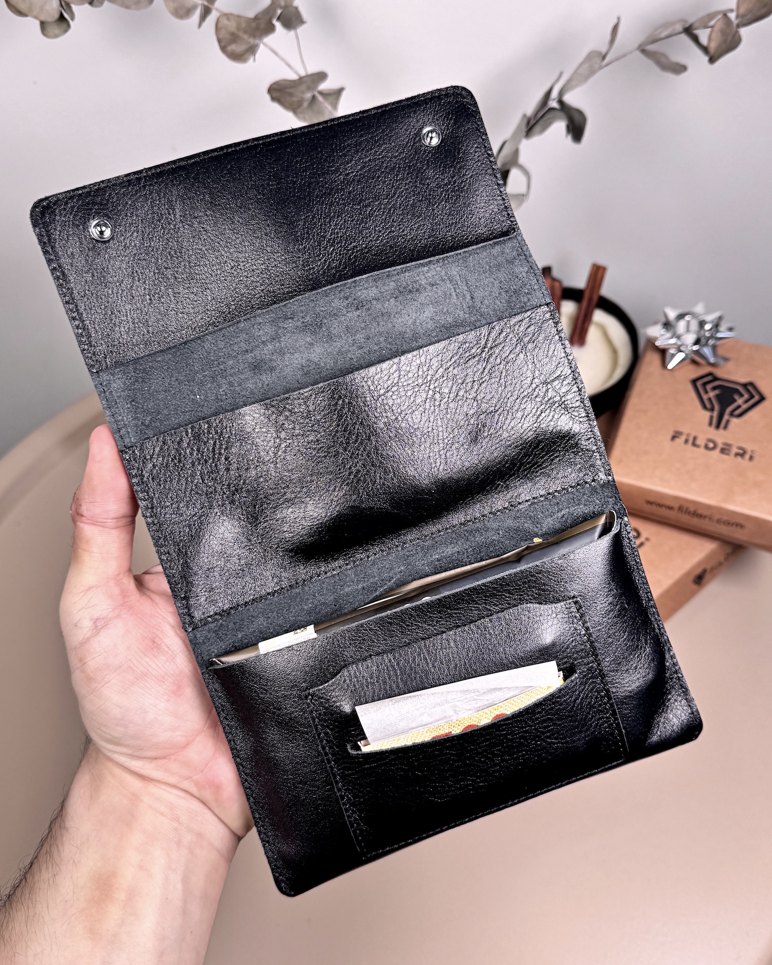 Hakiki Deri Tütün Kesesi – Siyah Renk | 2131