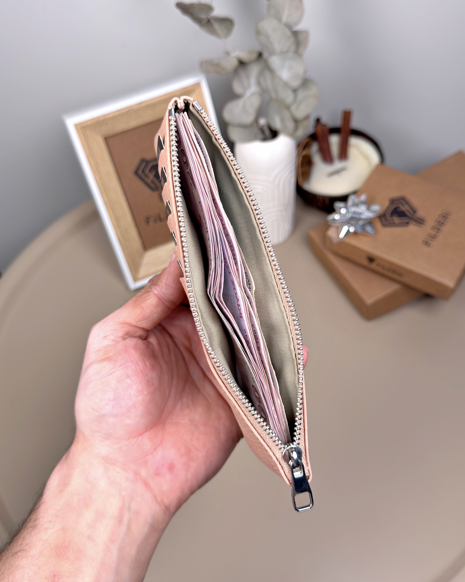 Hakiki deri yapısıyla hem şık hem de uzun ömürlü bir kullanım sunan bu model, ince formuna rağmen yüksek taşıma kapasitesiyle günlük kullanım için ideal bir cüzdandır. Kart düzeni, kimlik penceresi ve fermuarlı ana bölmesiyle hem fonksiyonel hem de minimalist bir deneyim sağlar.