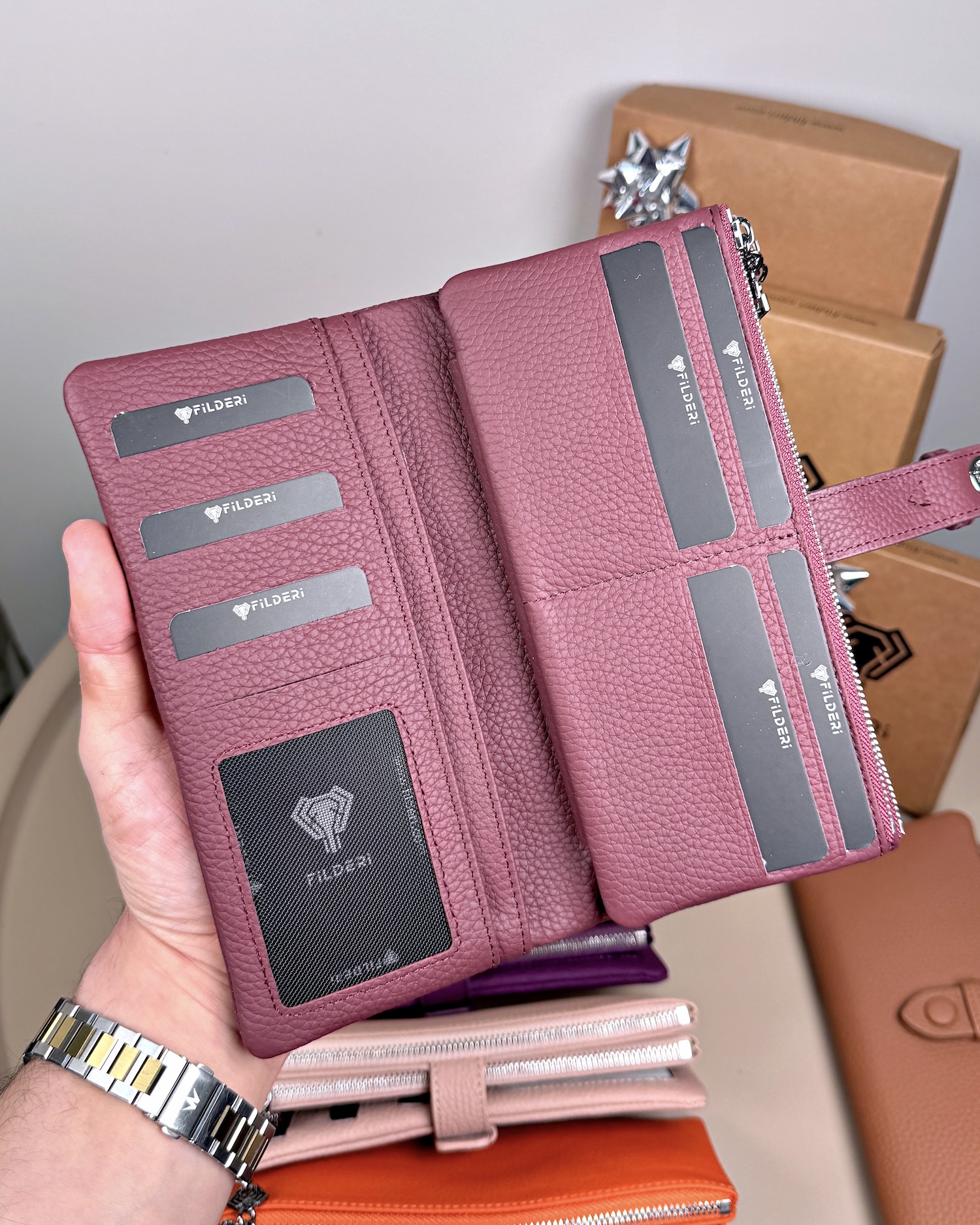 Kadın Cüzdan – Hakiki Deri, Fermuarlı & Mıknatıslı Vizon | 2133