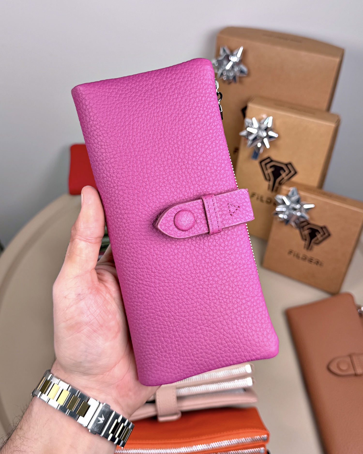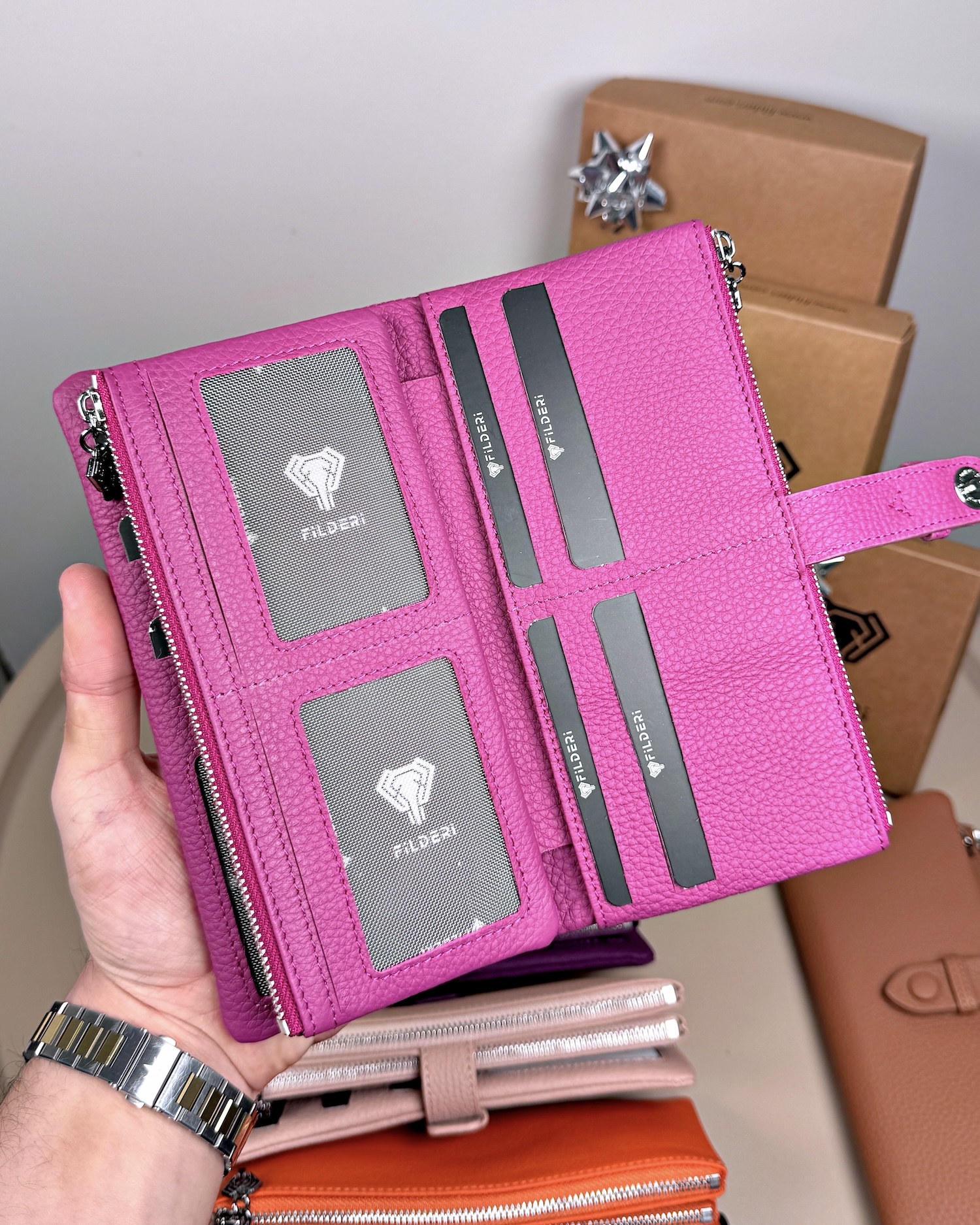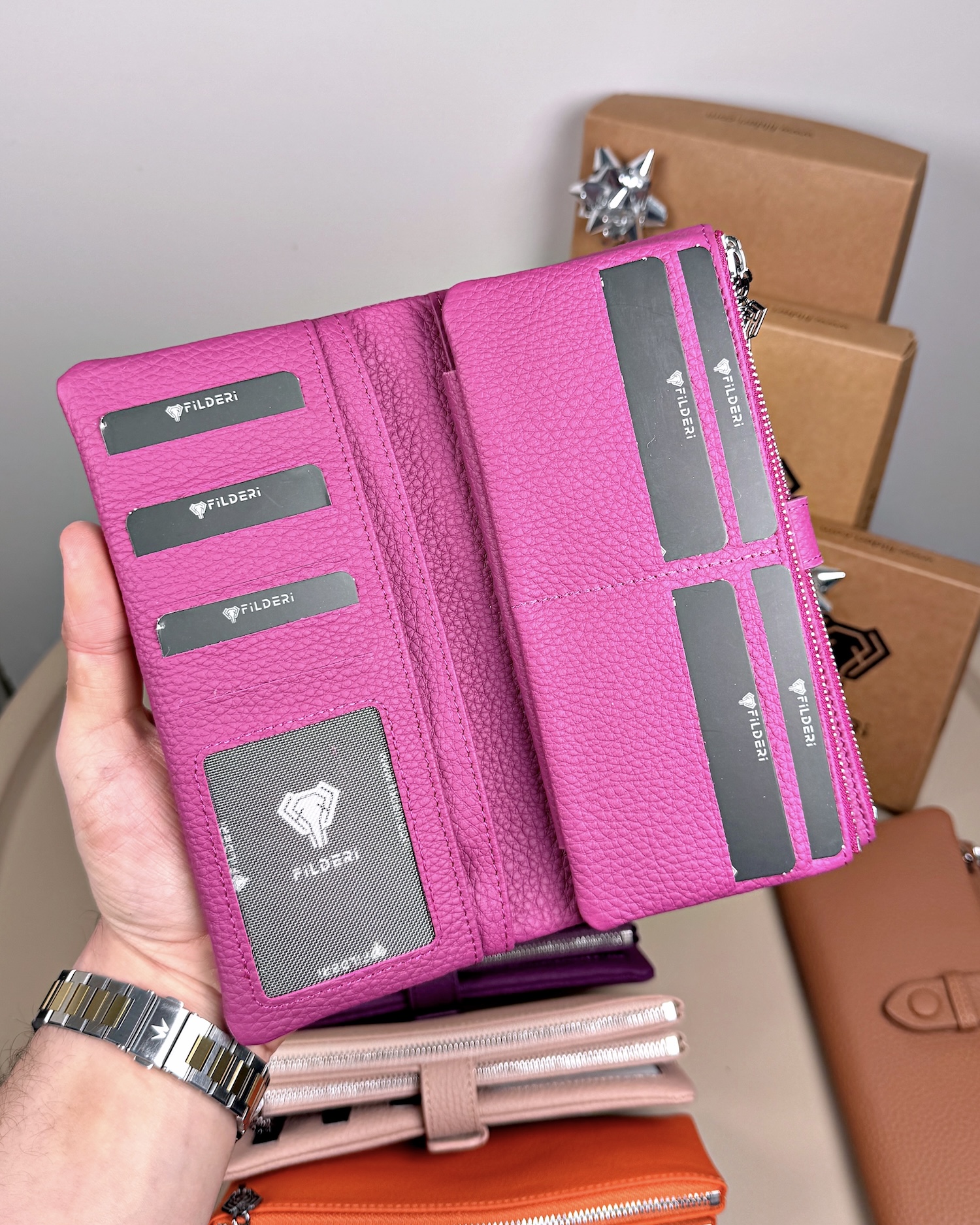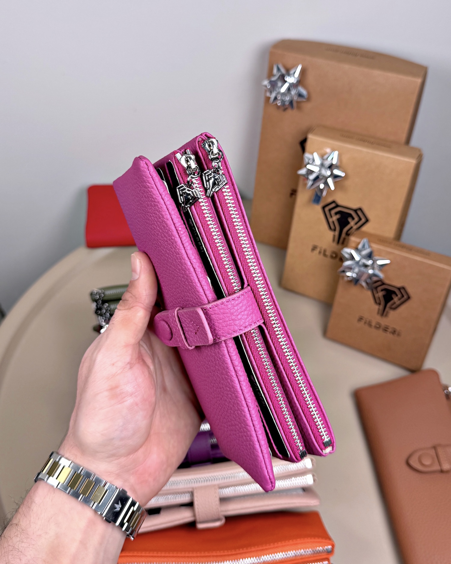 Kadın Cüzdan – Hakiki Deri, Fermuarlı & Mıknatıslı Fuşya | 2133