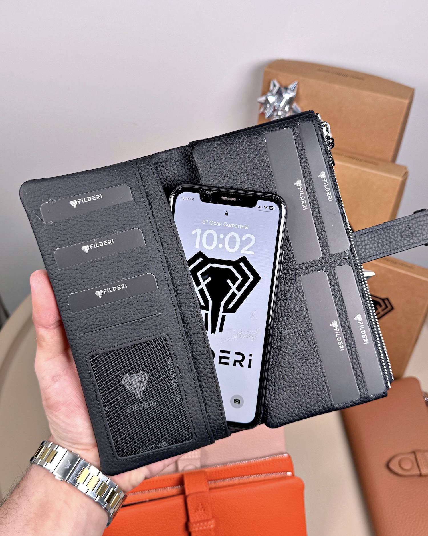 Sipariş vermeden önce önyargılarım vardı .sosyalmeydayadn bubtur seylere pek guvenmemekle birlikte arasirmalar yaptım. Çok güzel yorumlar gördüm. Almaya karar verdim . Ne kadar iyi bişey yaptığımı ürün iki gün sonra elime ulaşıp paketi açıp o deri cüzdanı elime alınca kalitesi kokusu. Kusursuzluğu beni çok etkiledi görselde gorunenenin aynısı fil deriye teşekkürler.