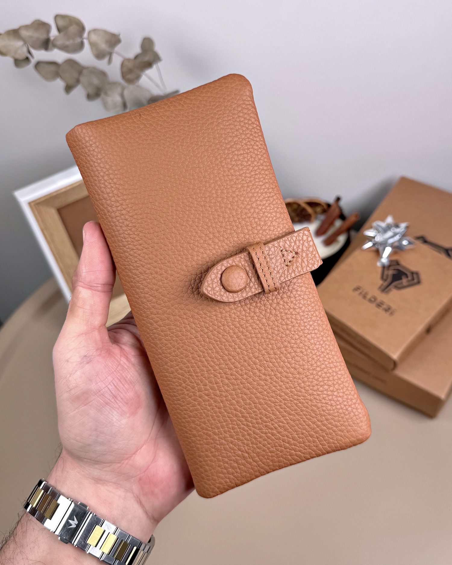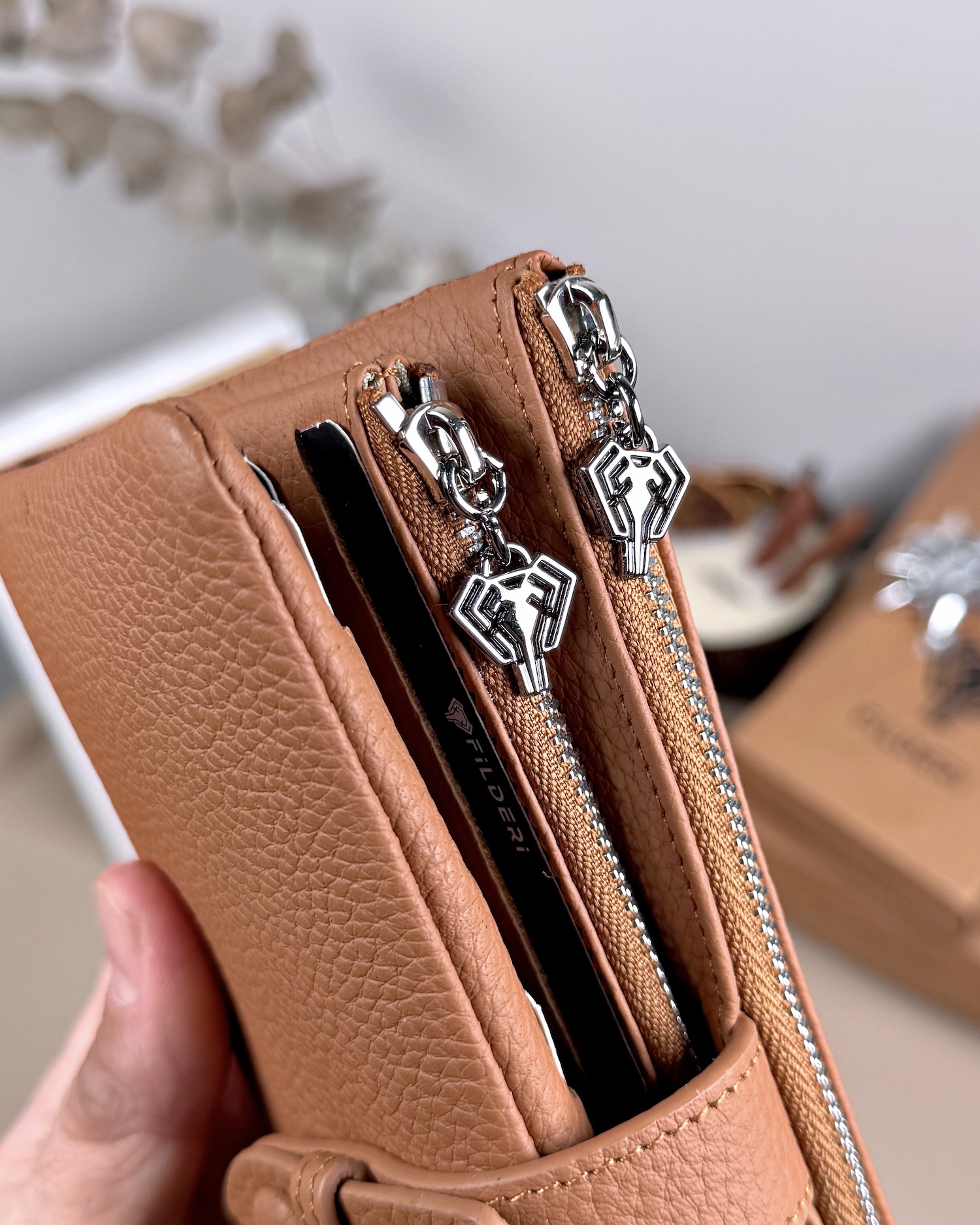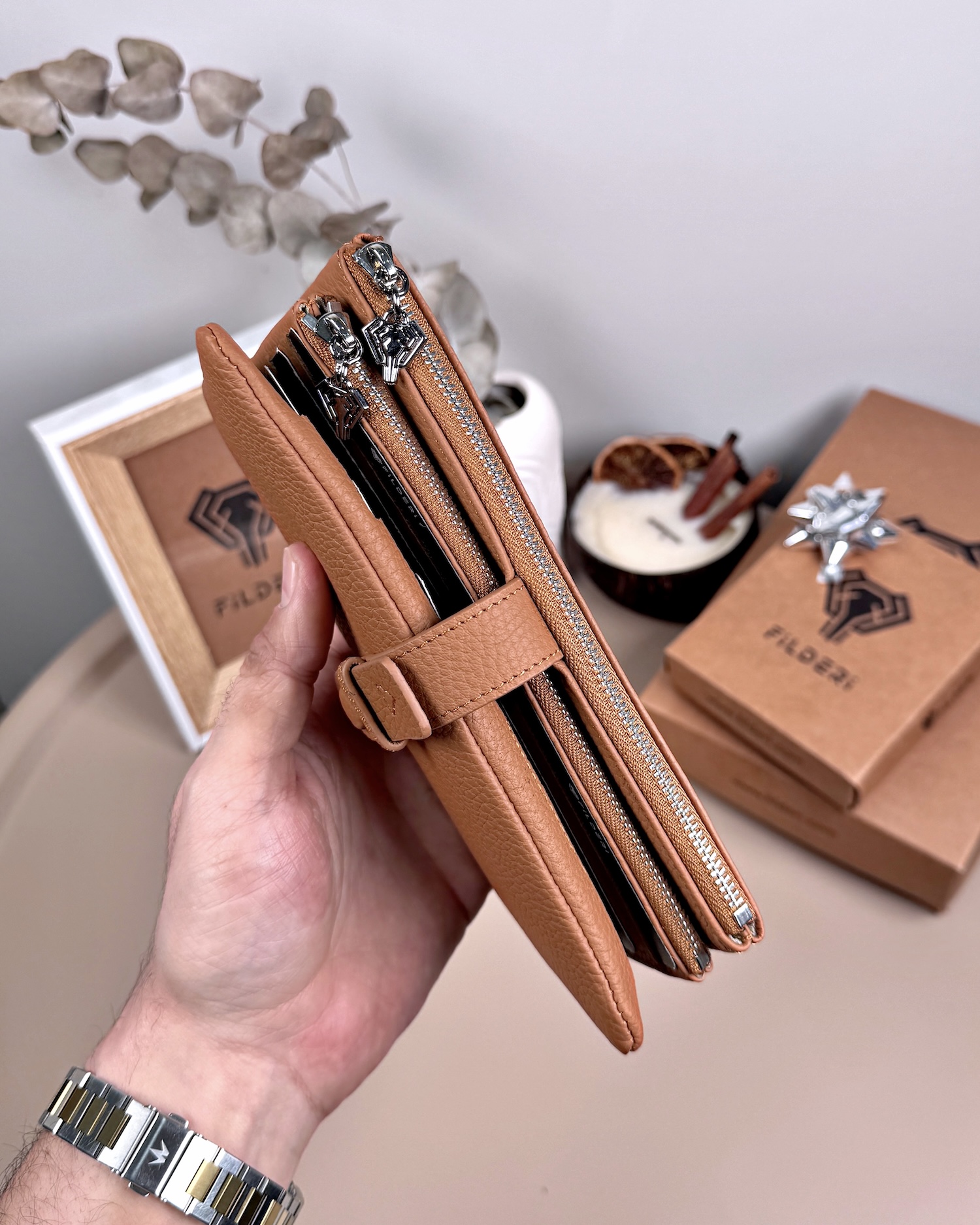 Kadın Cüzdan – Hakiki Deri, Fermuarlı & Mıknatıslı Taba | 2133