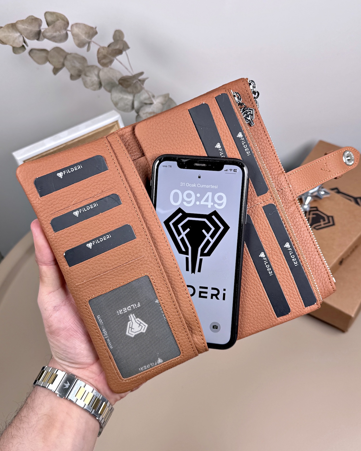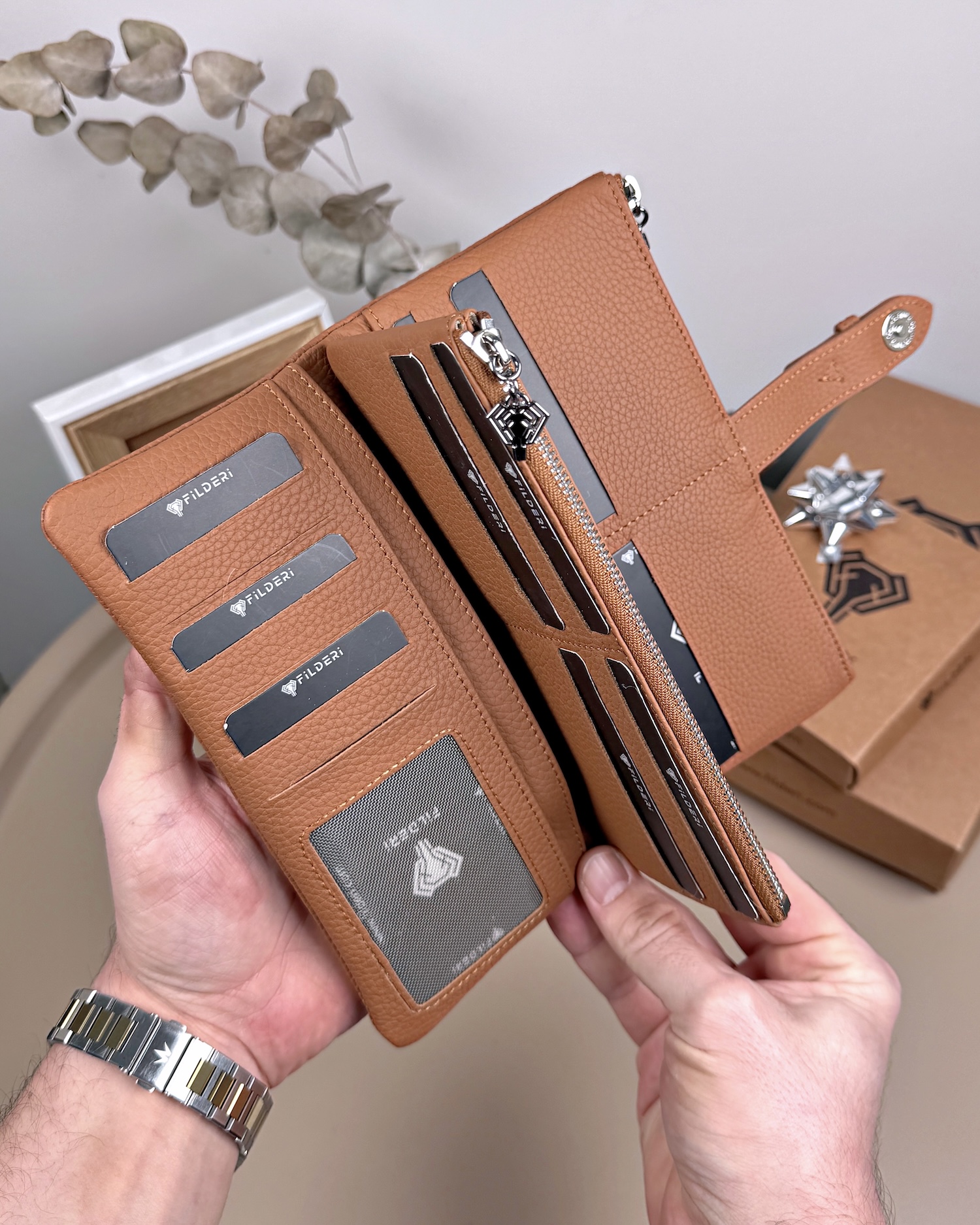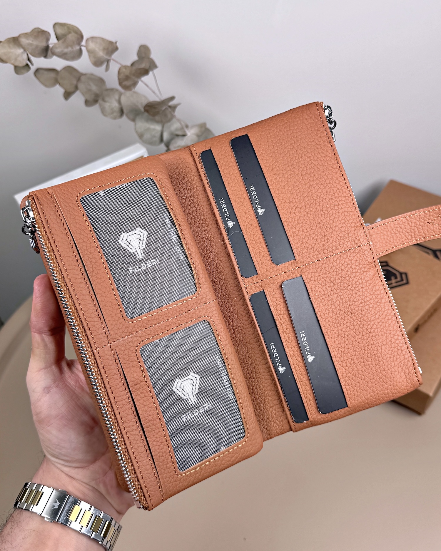 Kadın Cüzdan – Hakiki Deri, Fermuarlı & Mıknatıslı Taba | 2133