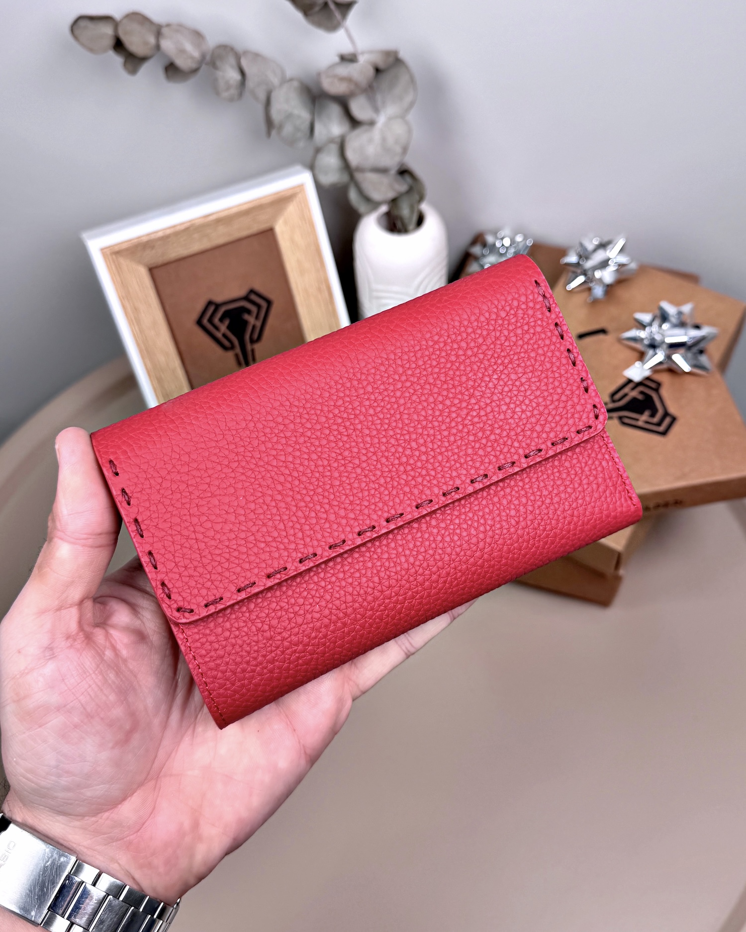 Kadın Cüzdan – Süs Dikişli Kırmızı Guti Hakiki Deri | 2095