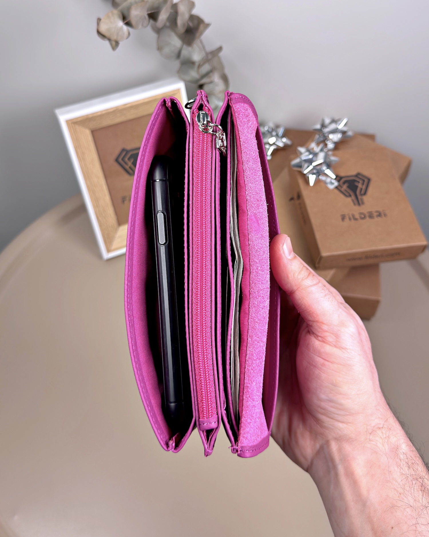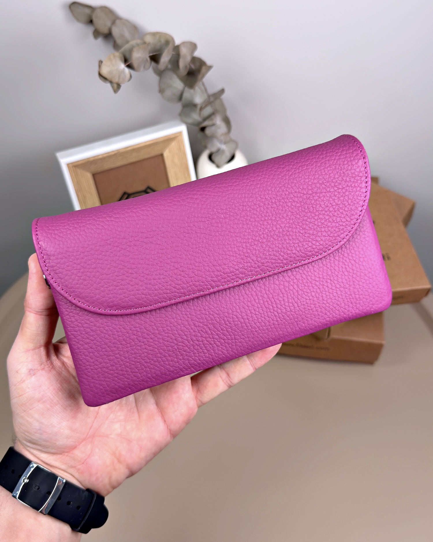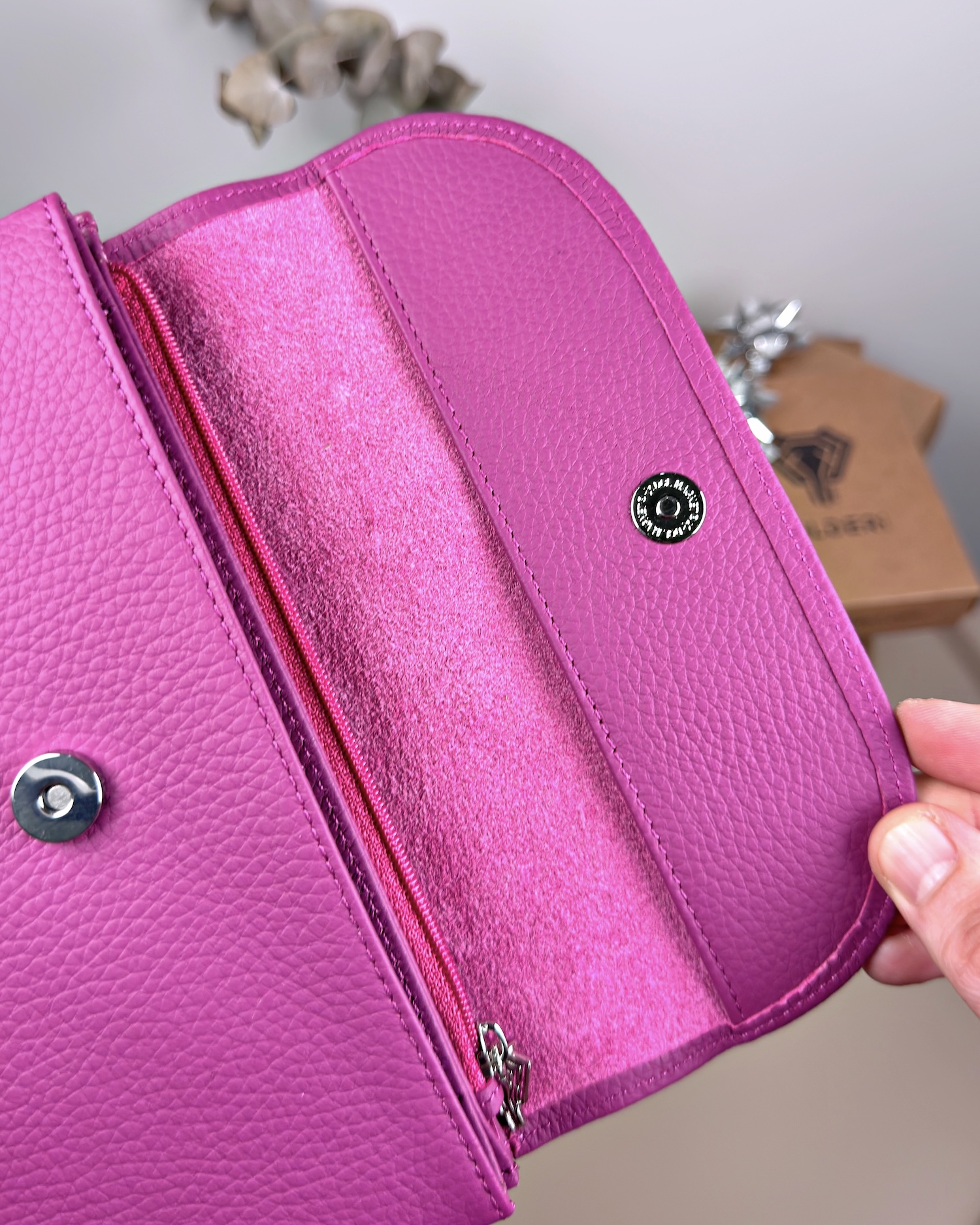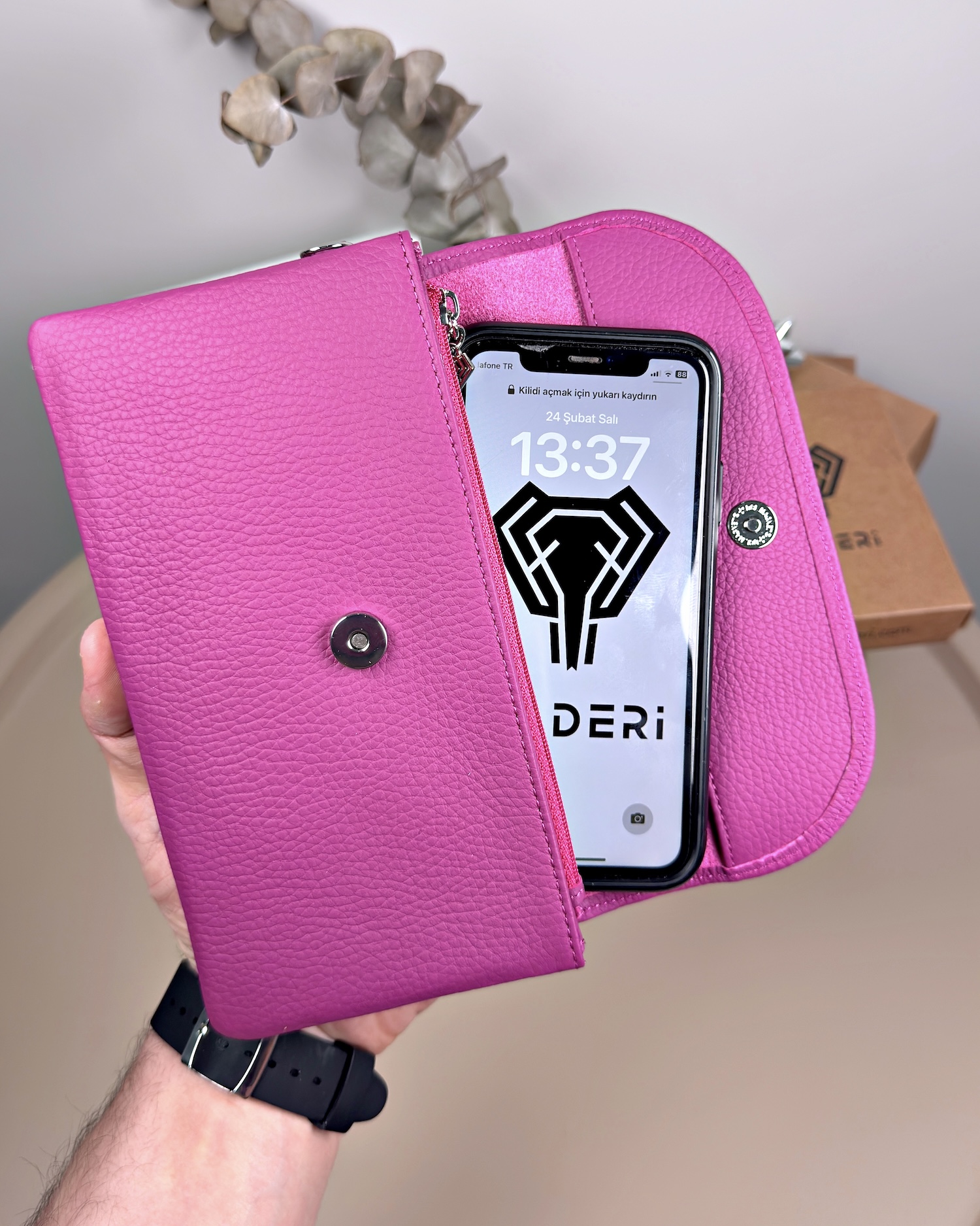 Kadın Hakiki Deri El Çantası – Çok Gözlü, Fuşya | 2135