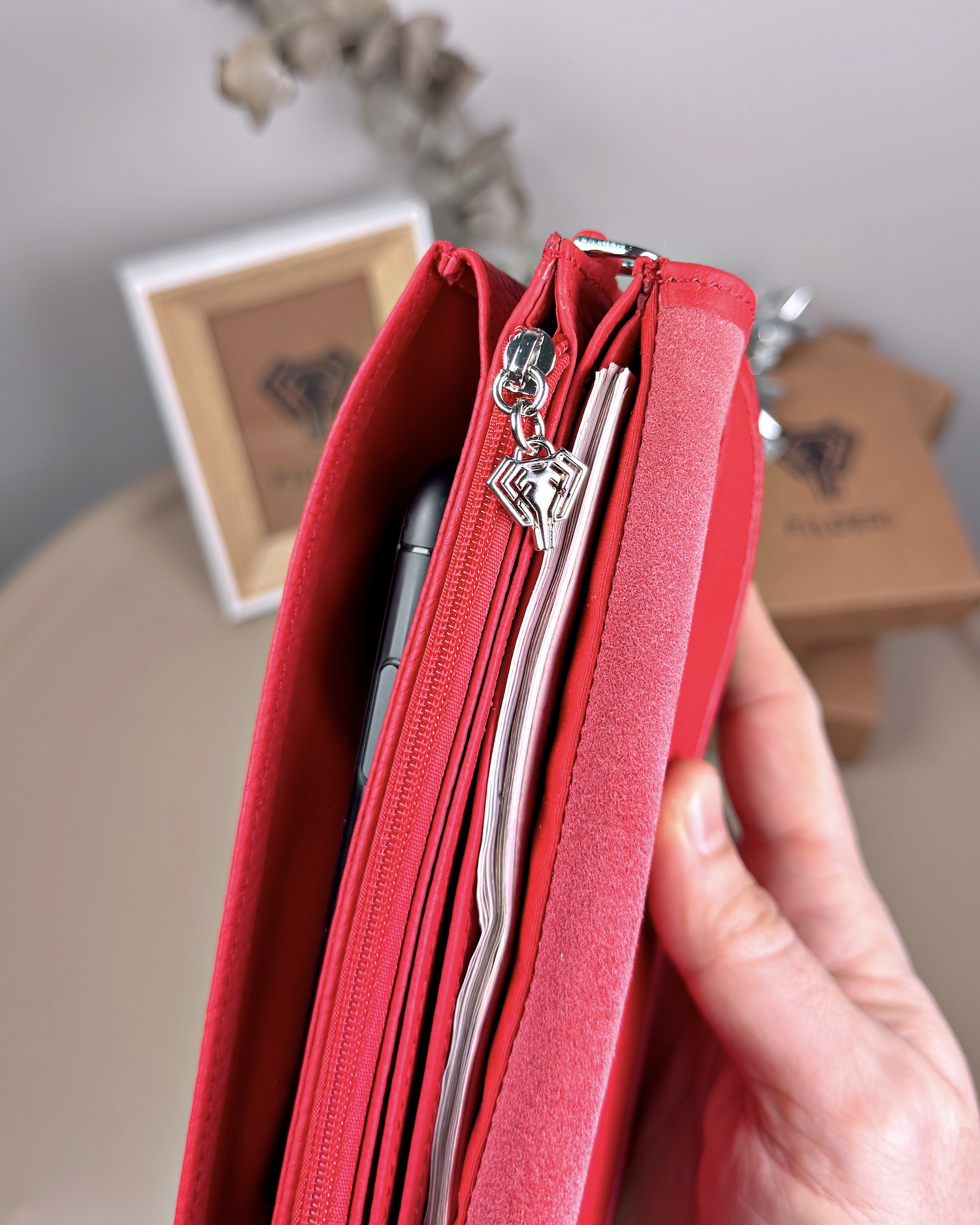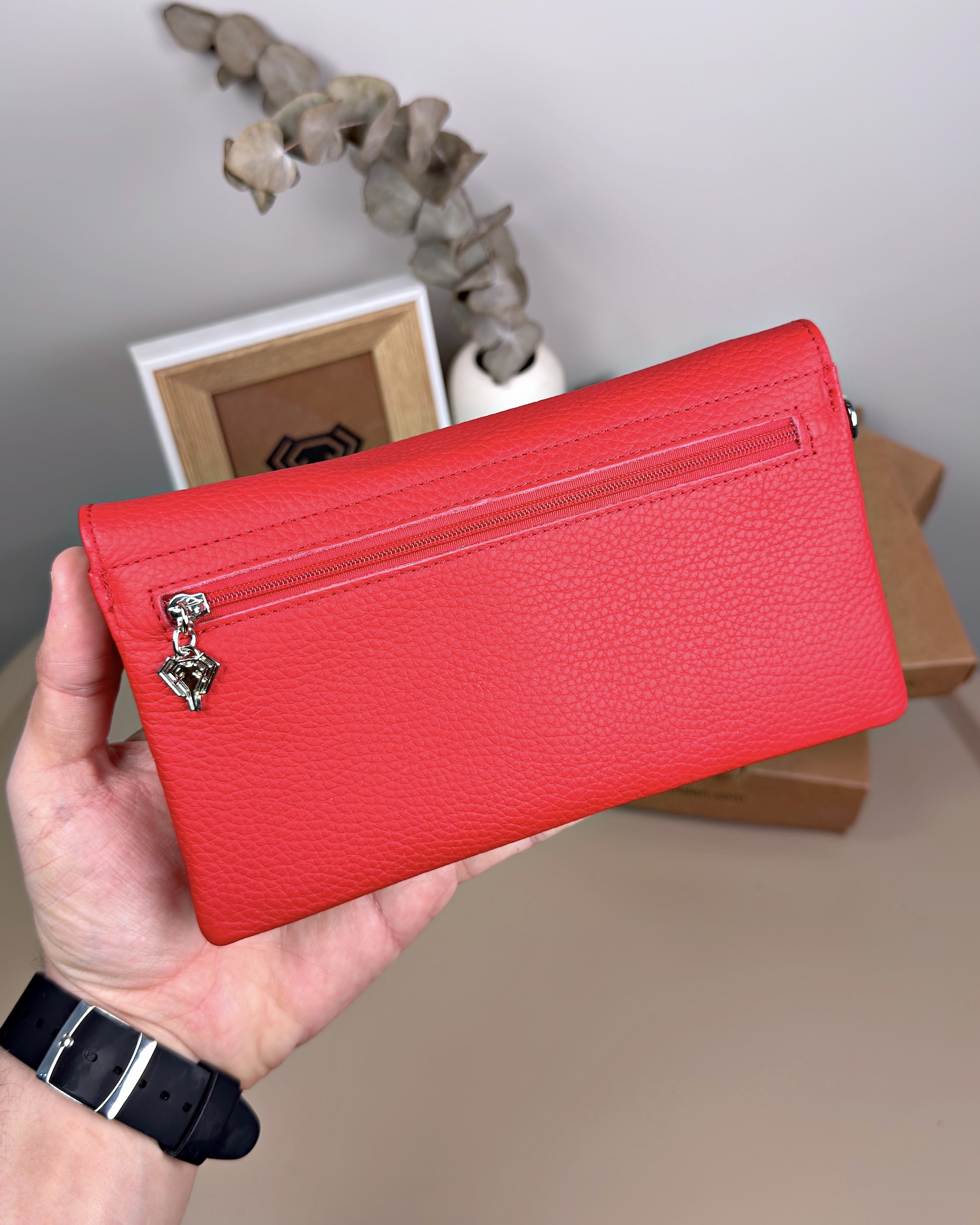 Kadın Hakiki Deri El Çantası – Çok Gözlü, Kırmızı | 2135
