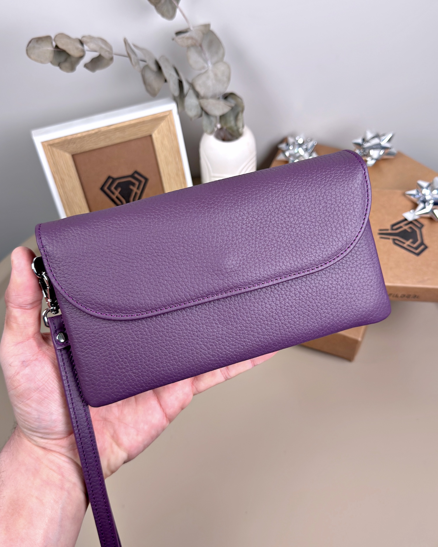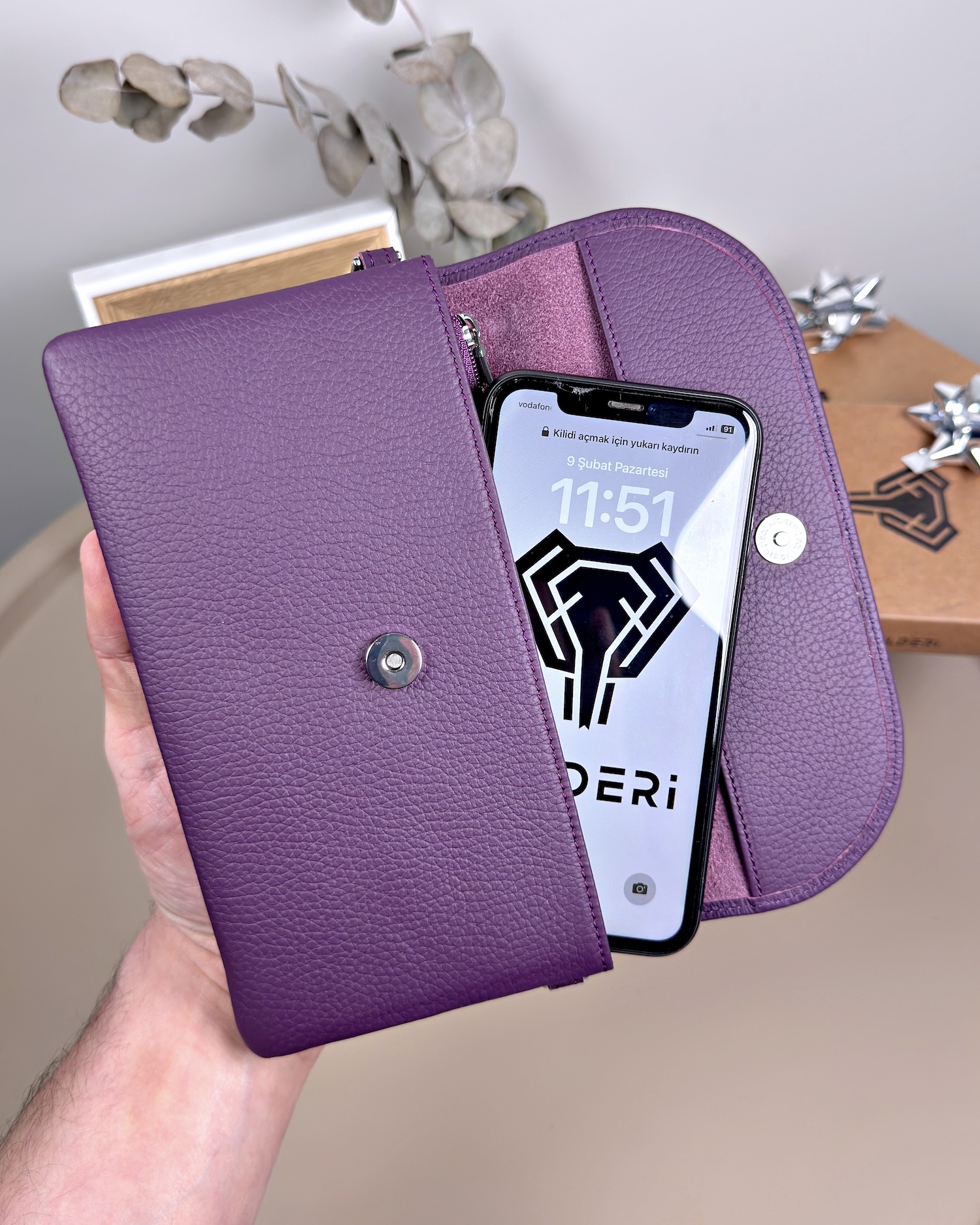 Kadın Hakiki Deri El Çantası – Çok Gözlü, Mor | 2135