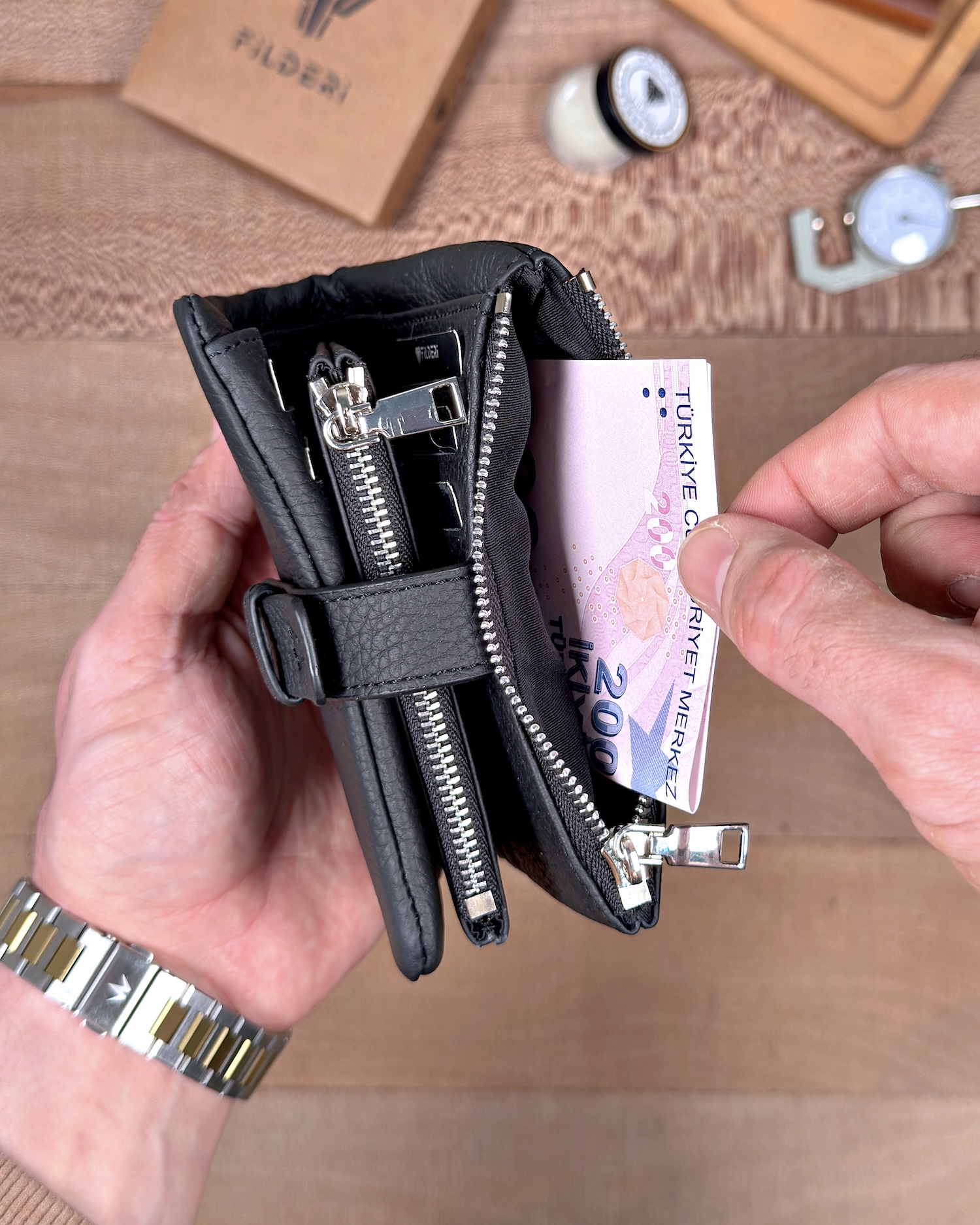 Ürünü 10 gündür kullanıyorum. Ürün çok güzel bana göre bu ürünün tek eksiği çıkabilen fermuarlı kartlığa 200 TL banknotların sığmaması 10 tane 200 TL koyamıyorsunuz. 3 mm daha uzun olsaymış 4 dörtlük ürün olurmuş
