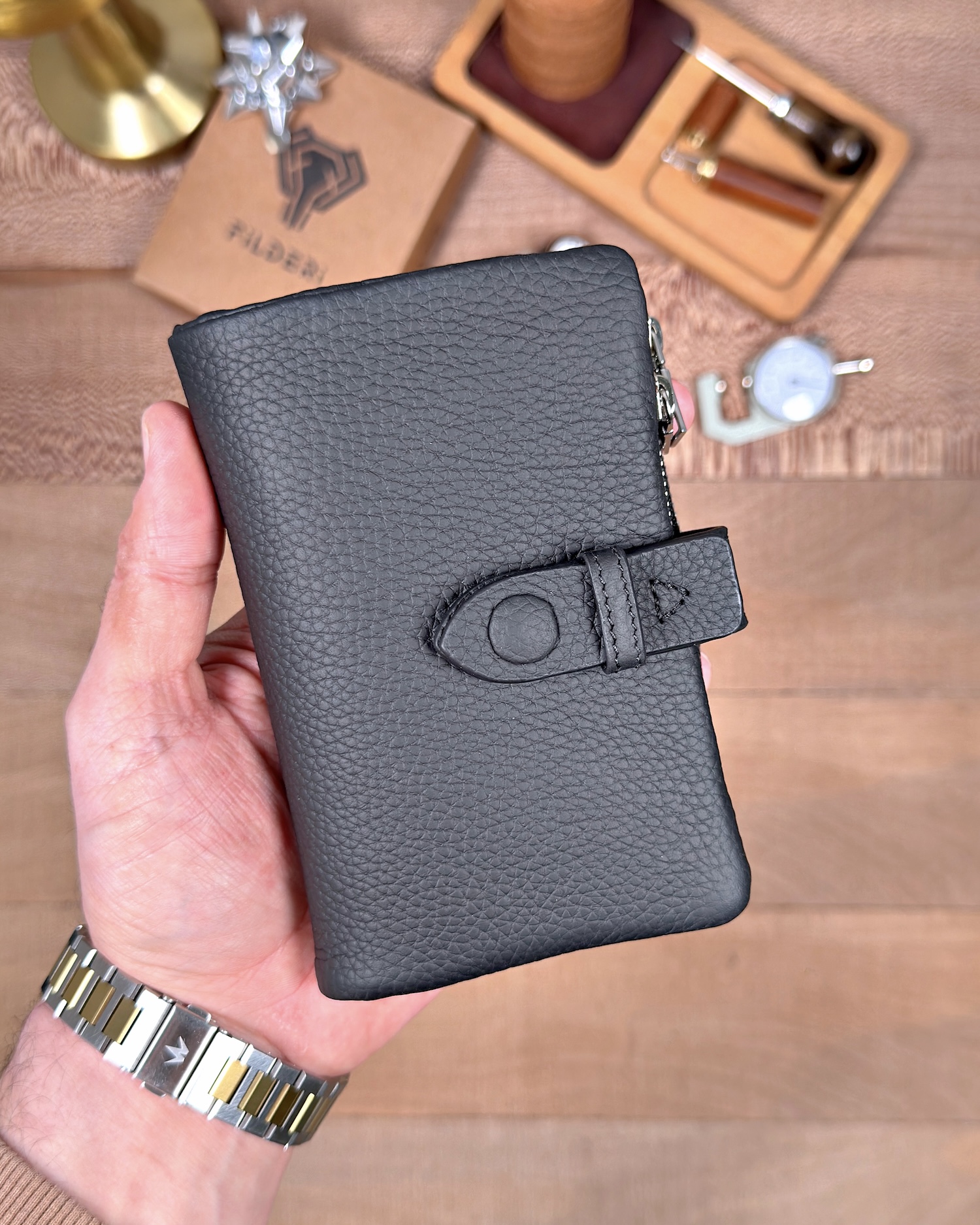 Derisi kaliteli, elde şık duruyor. Yeteri kadar kartlık gözü var, kağıt ve madeni paralar için kullanım kolay, telefon rahat sığıyor.