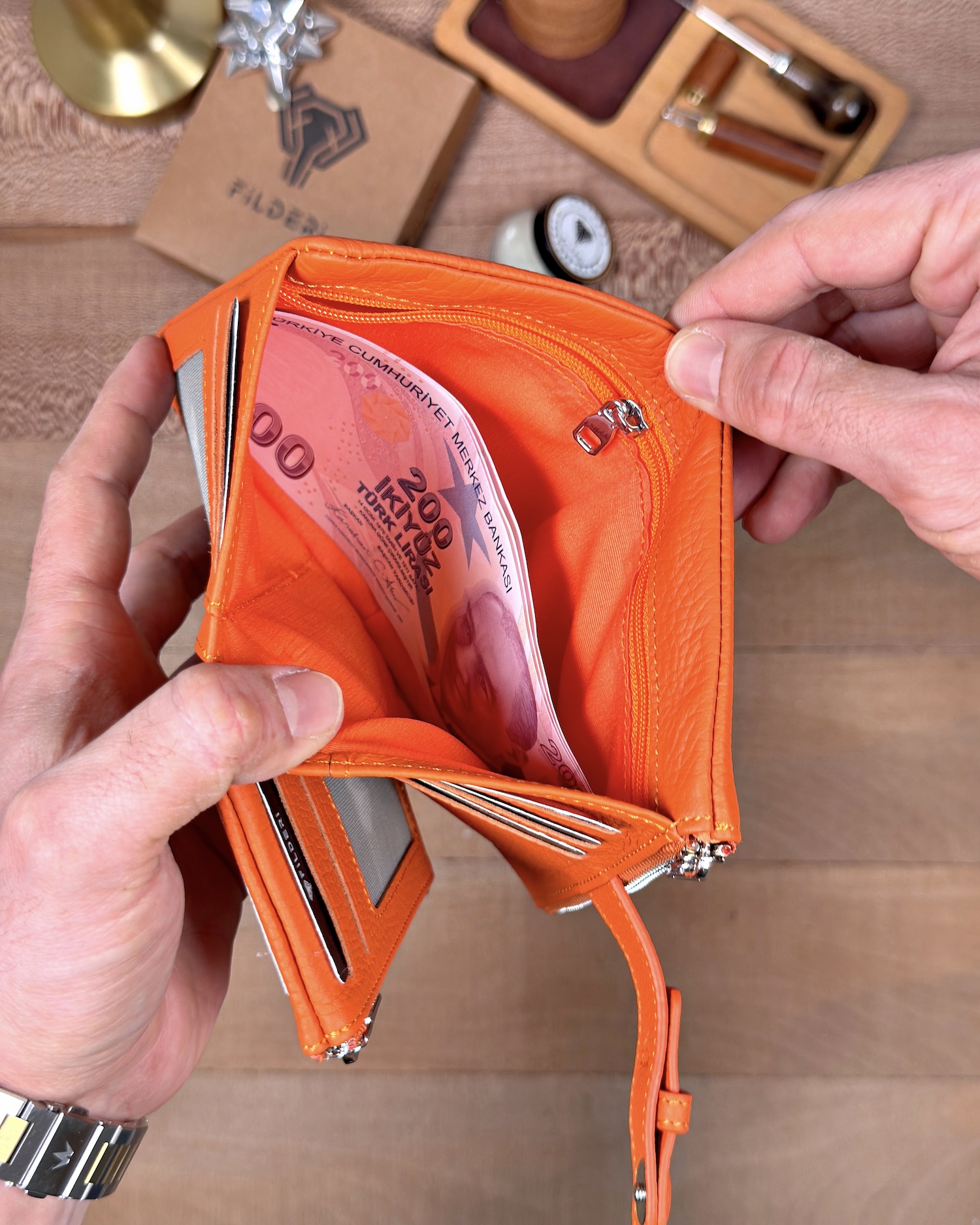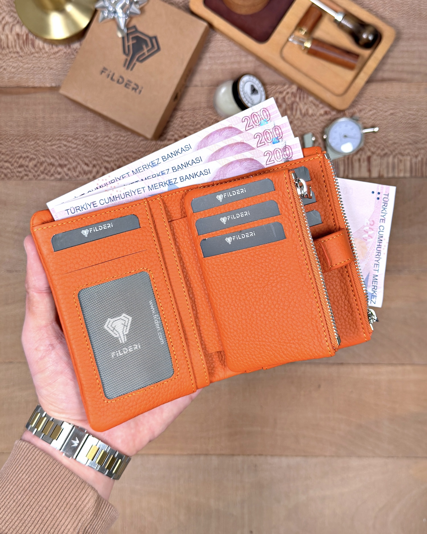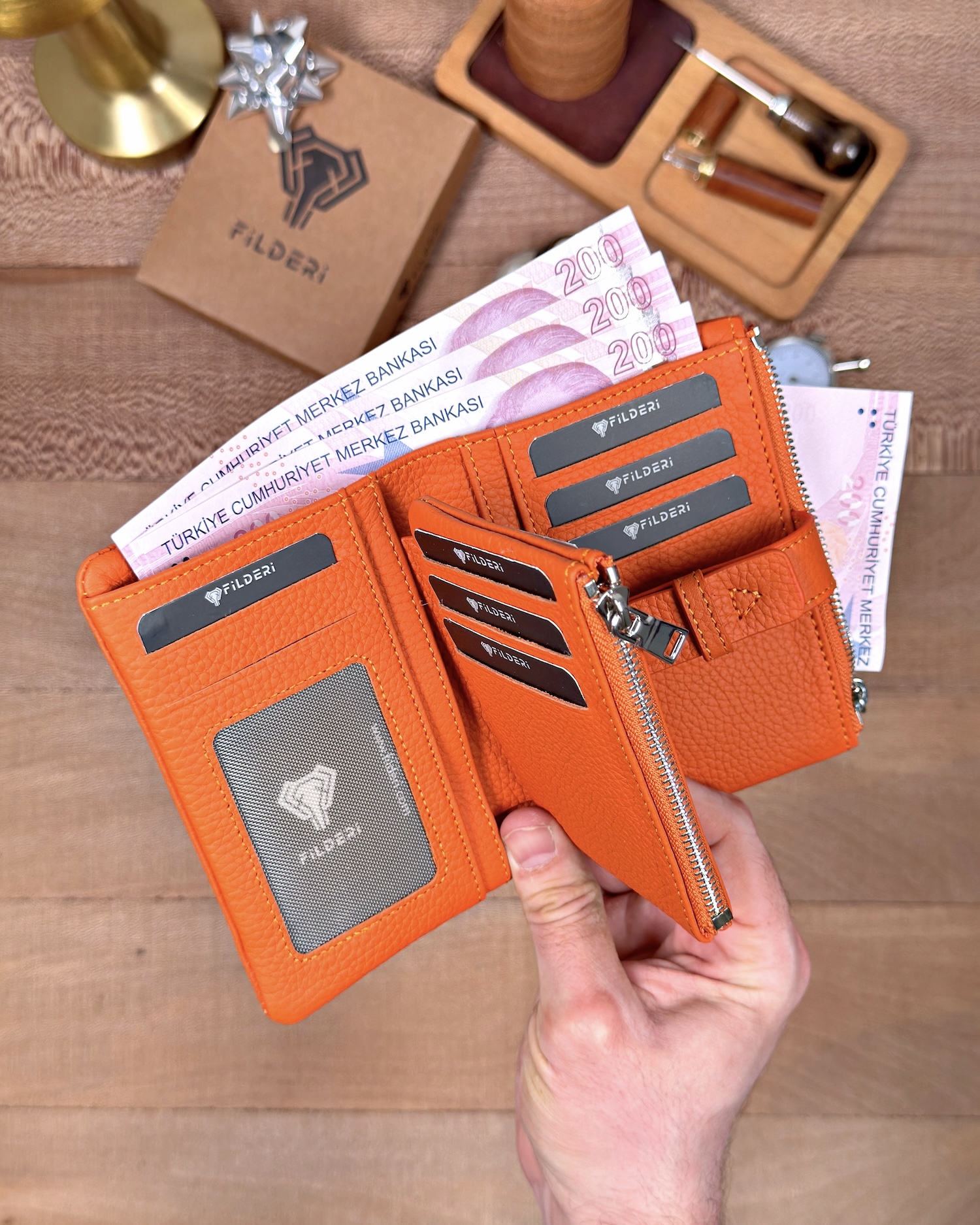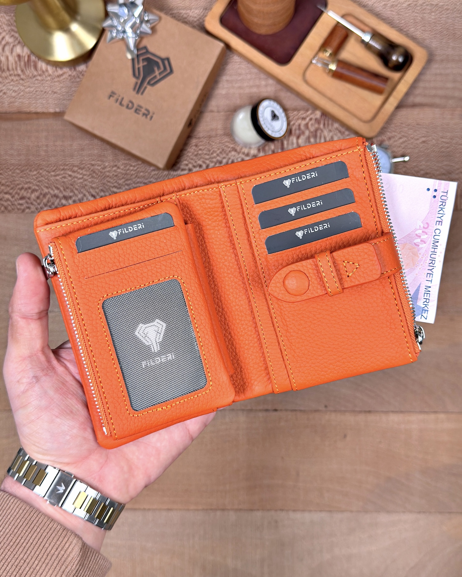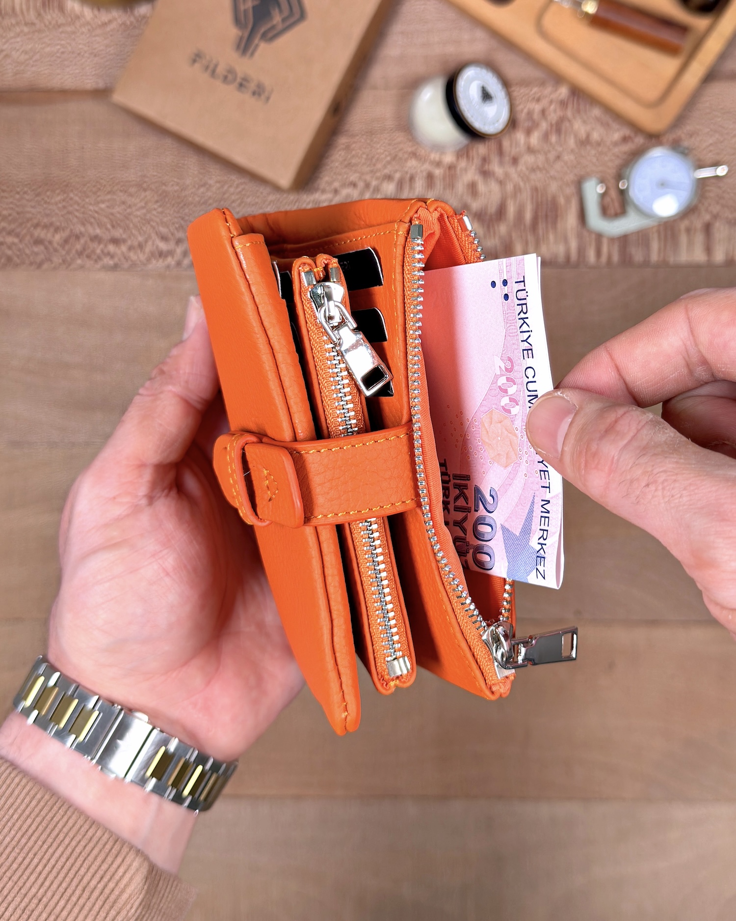 Küçük Kadın Cüzdan – Hakiki Deri Turuncu | 2149