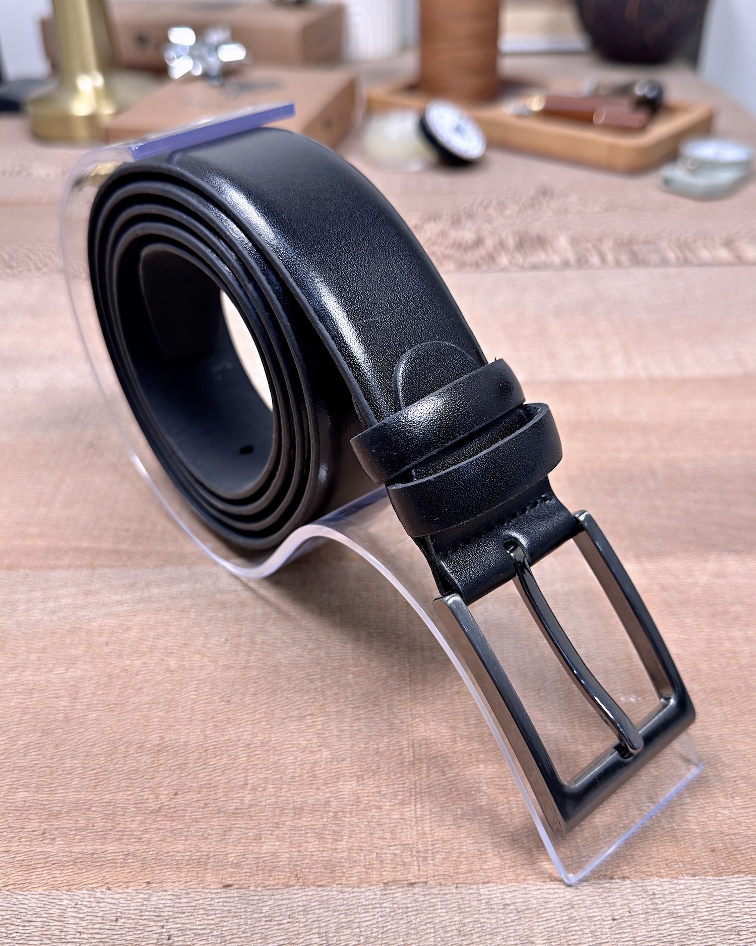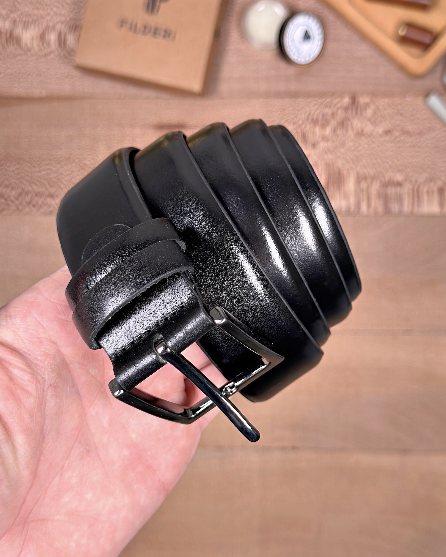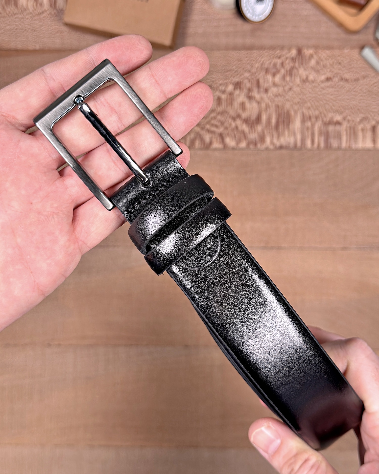 Erkek Kemer – Parlak Siyah Hakiki Deri, Kumaş Pantolon Uyumlu