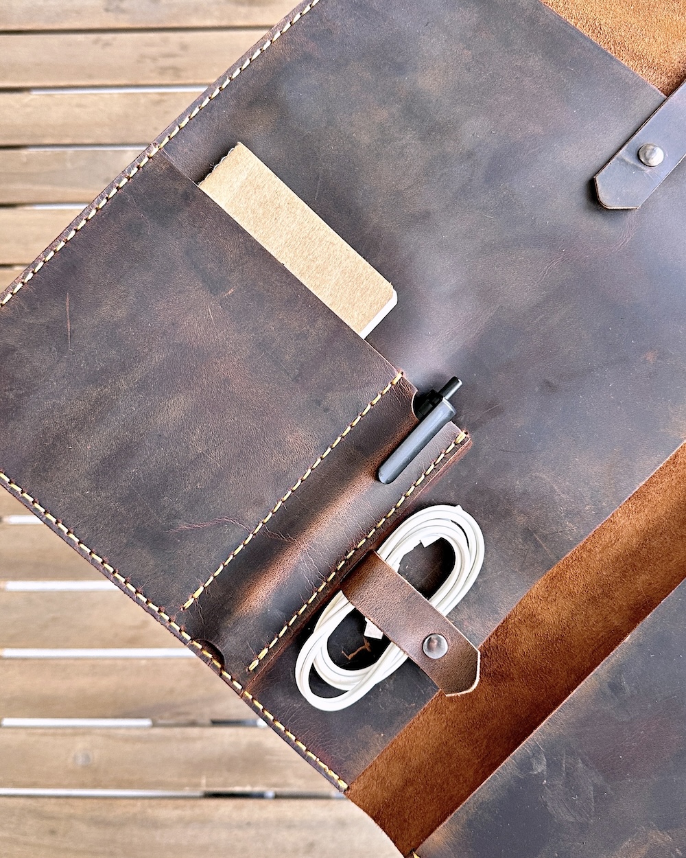 Deri Organizer – Laptop Bölmeli El Dikişi Kahve Hakiki Deri | 2075