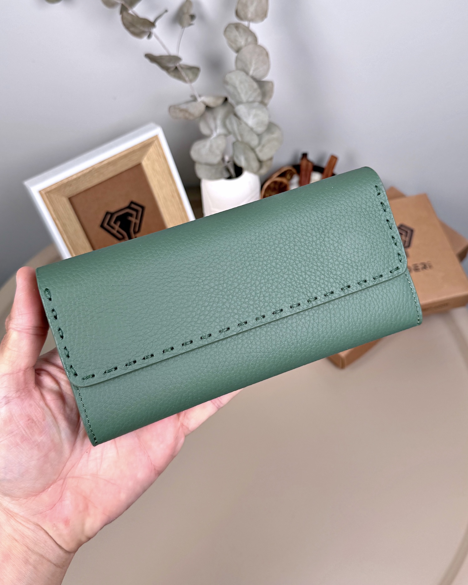 Saraciye Dikişli – Yeşil Hakiki Deri Guti Cüzdan | 2022