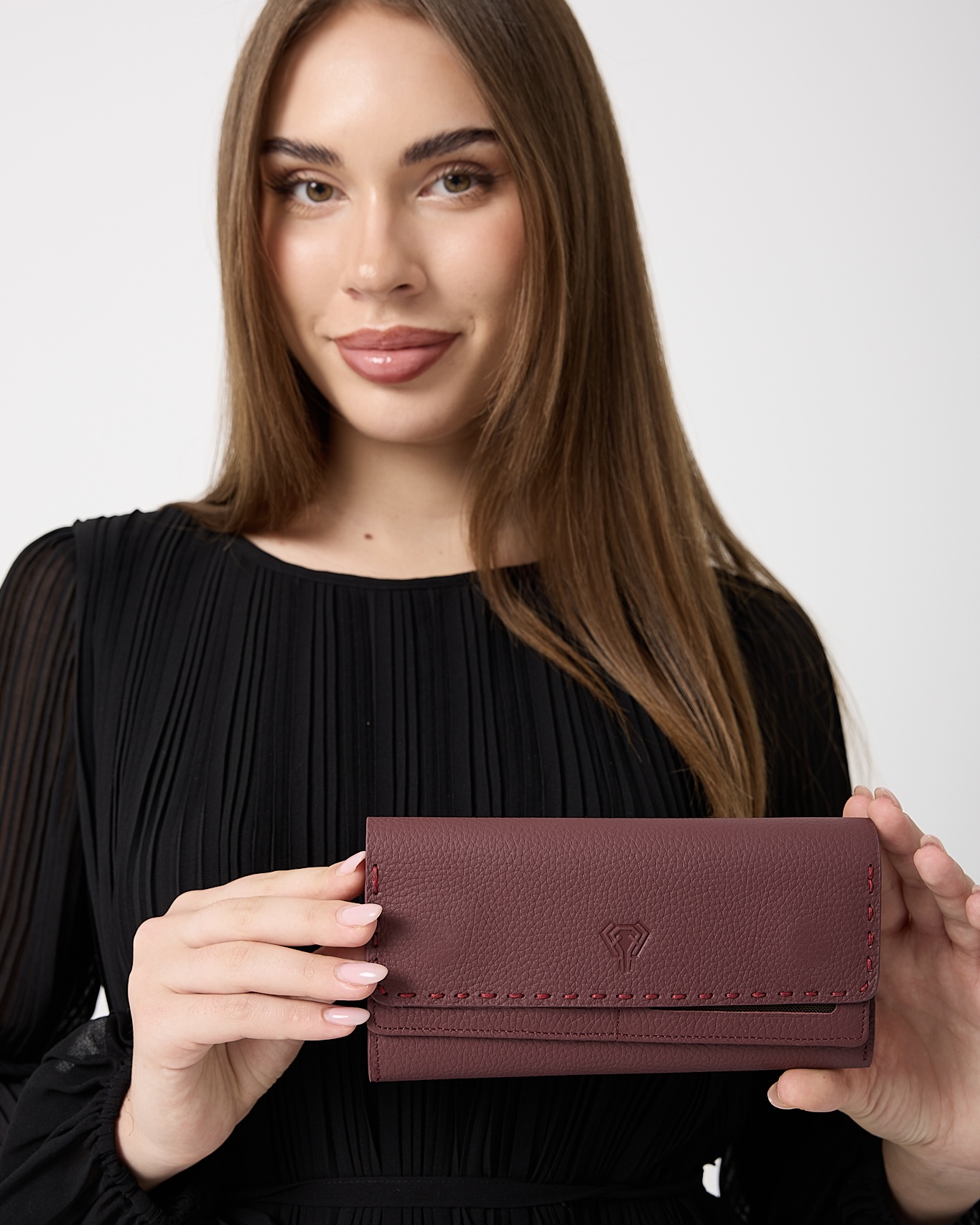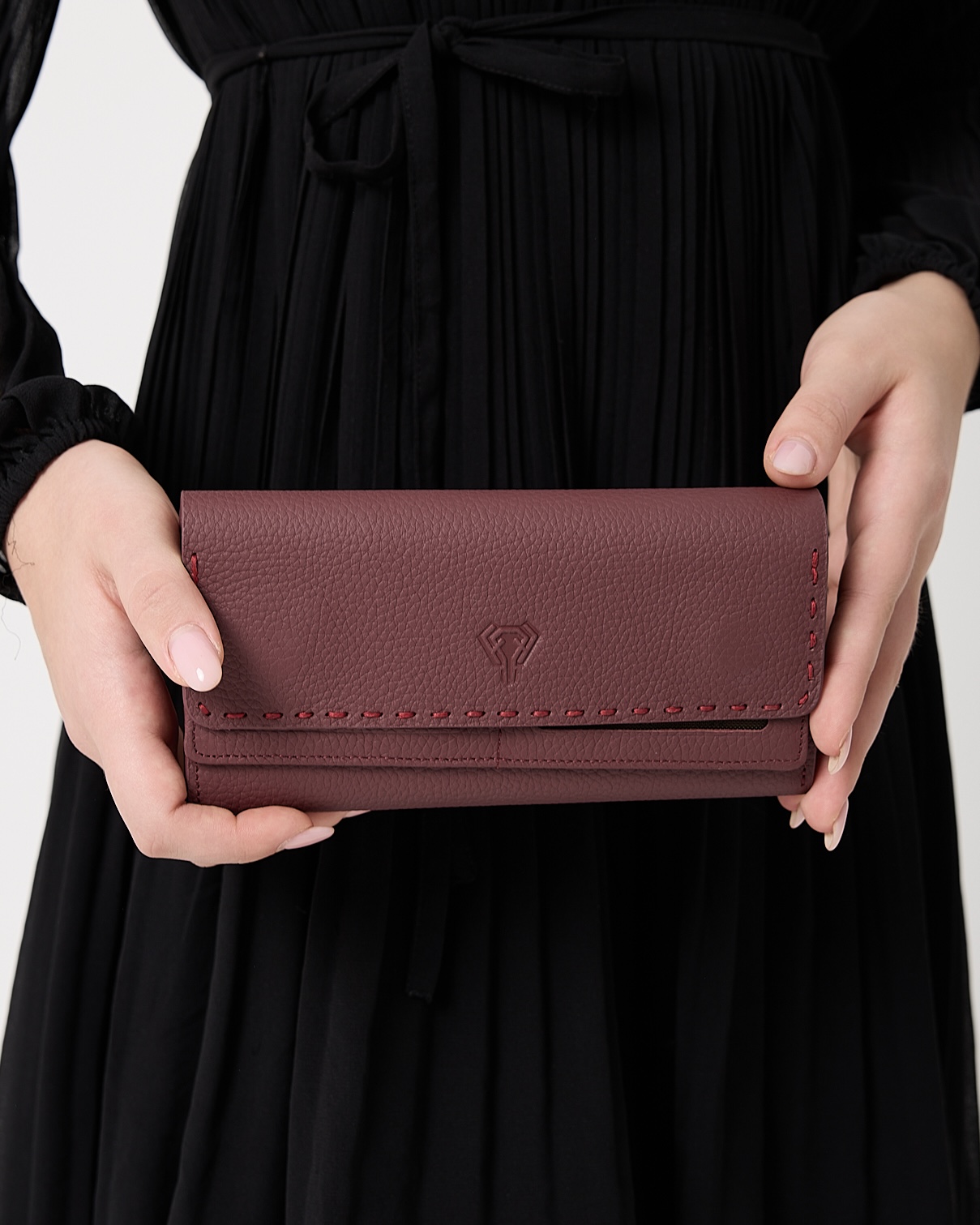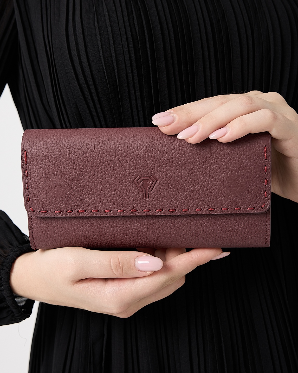 Saraciye Dikişli – Bordo Hakiki Deri Guti Kadın Cüzdan | 2022