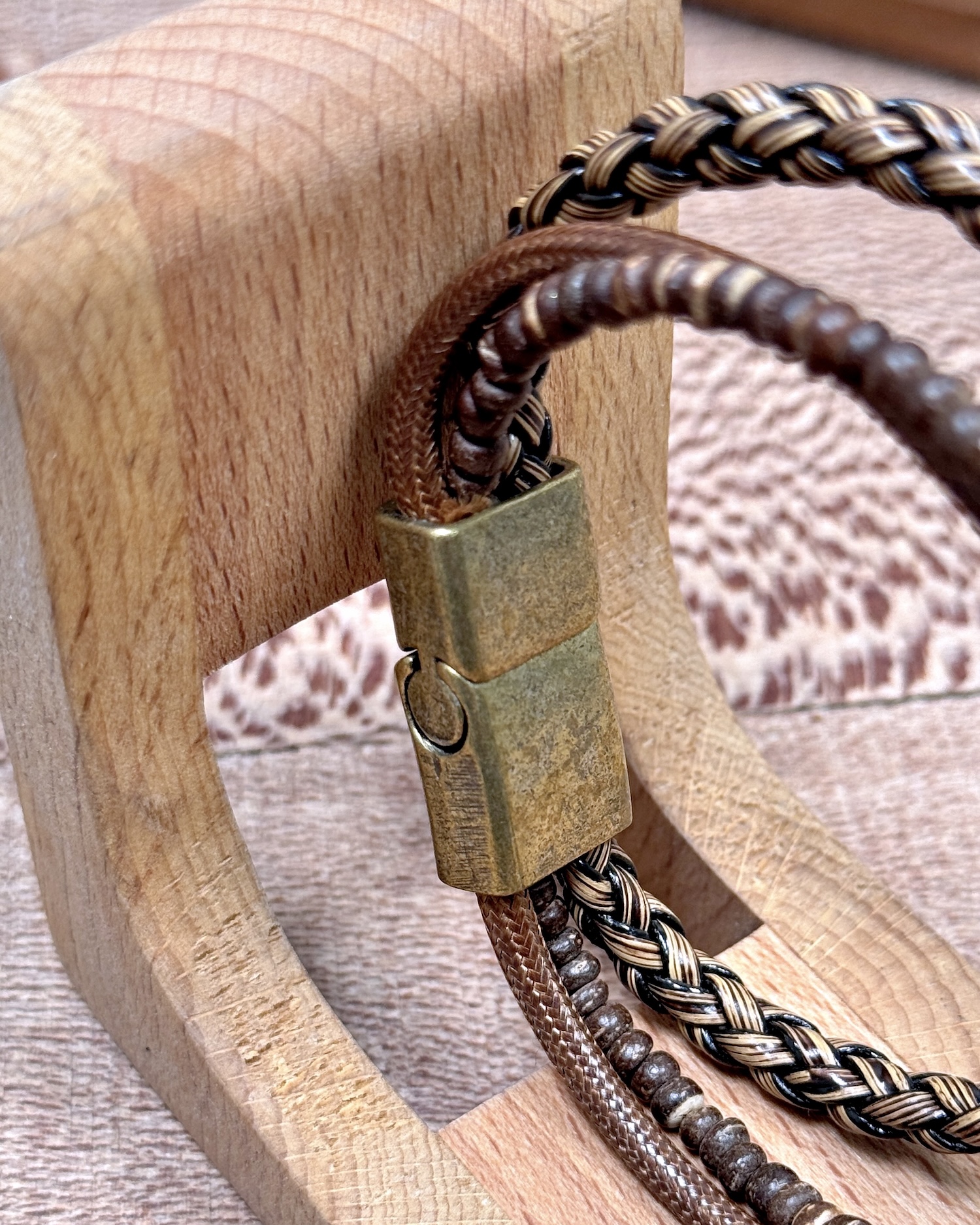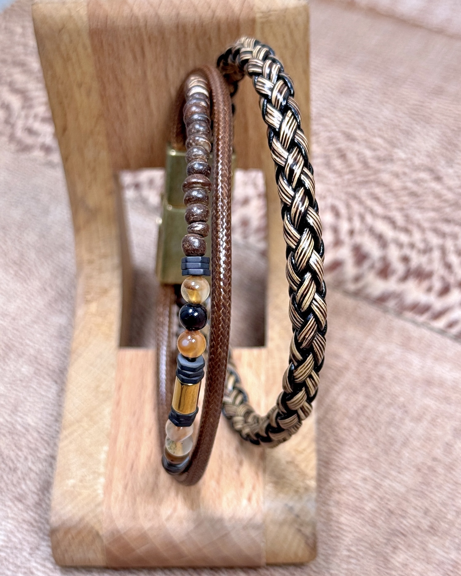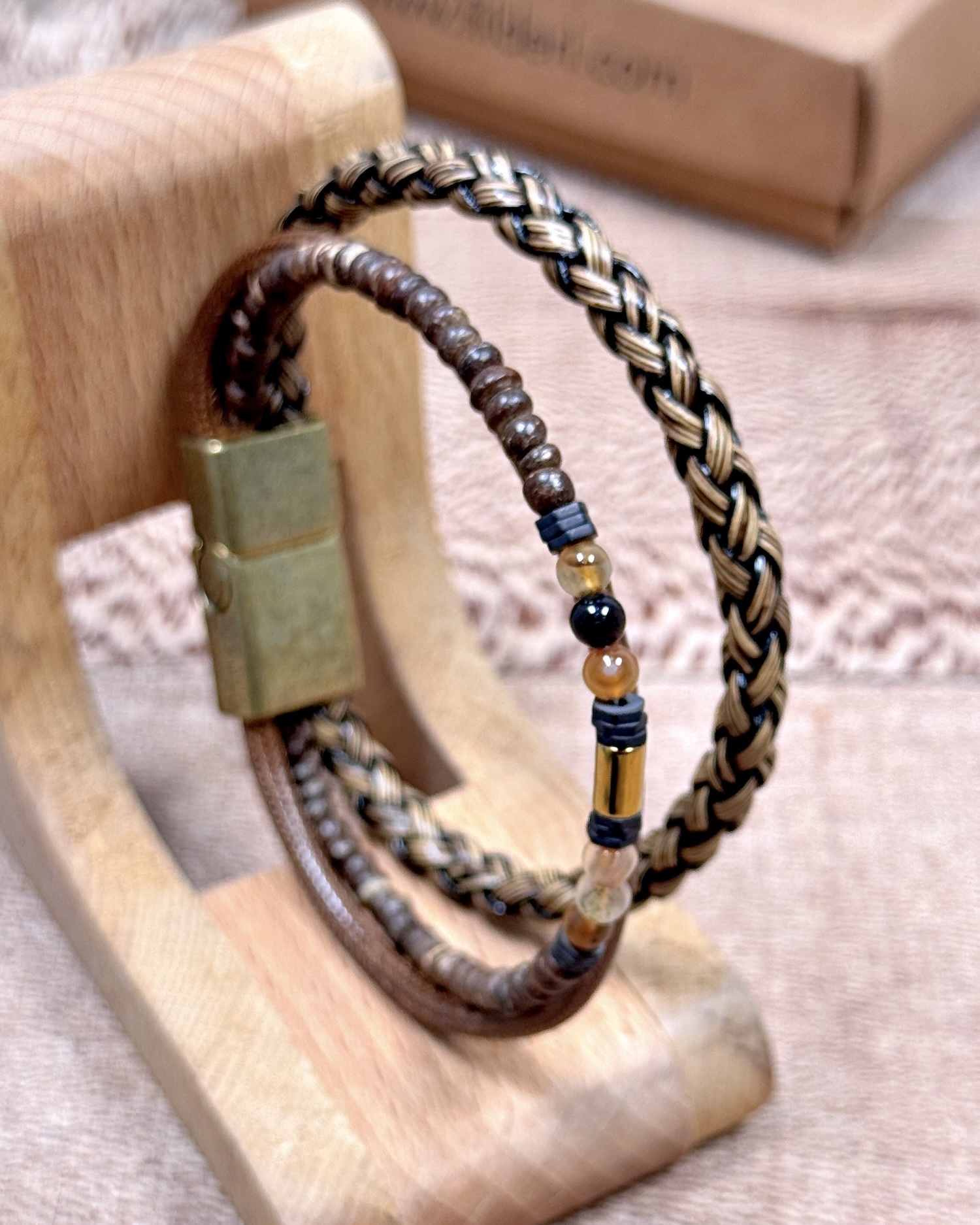 Taşlı Örgülü Bileklik Taba Renk