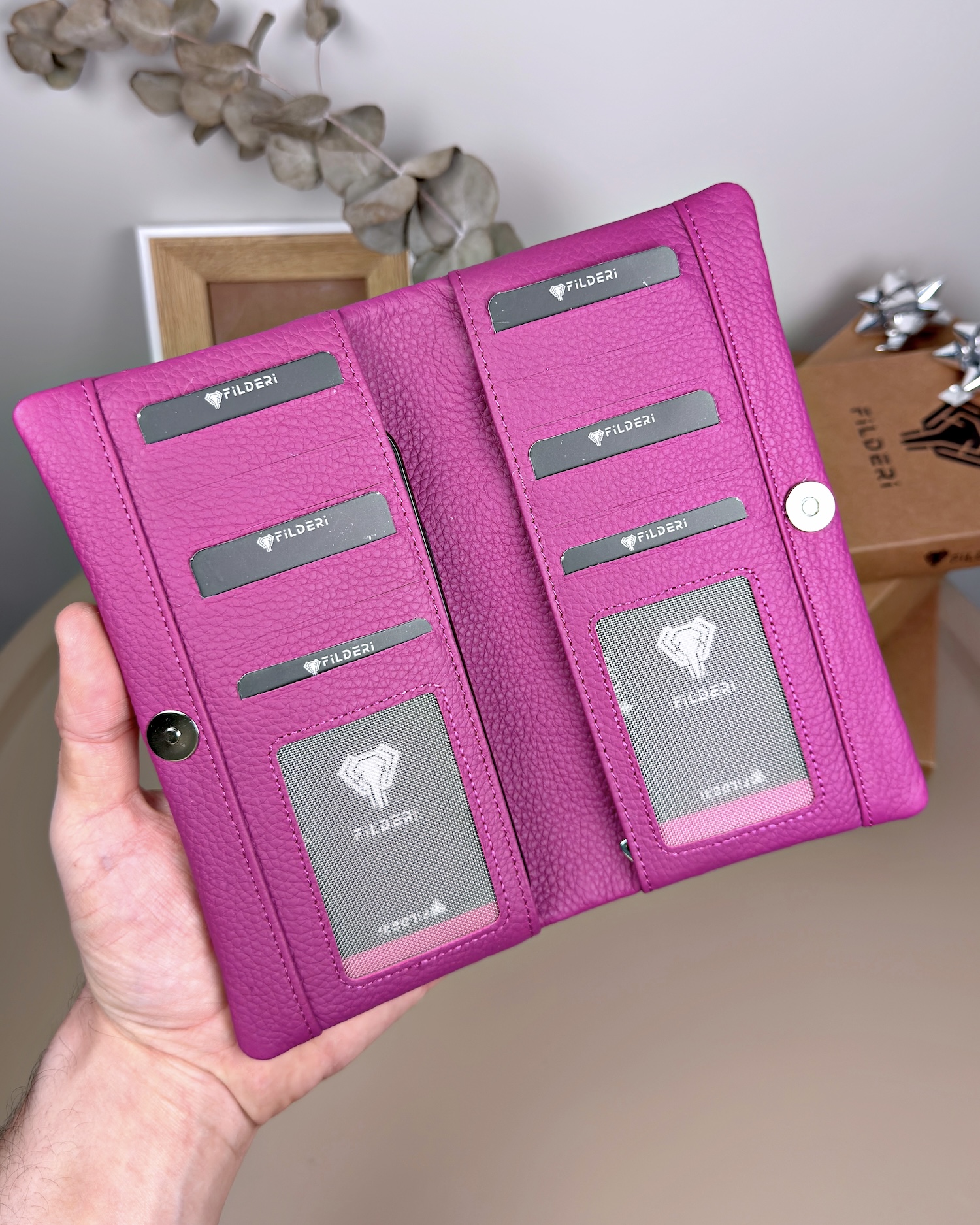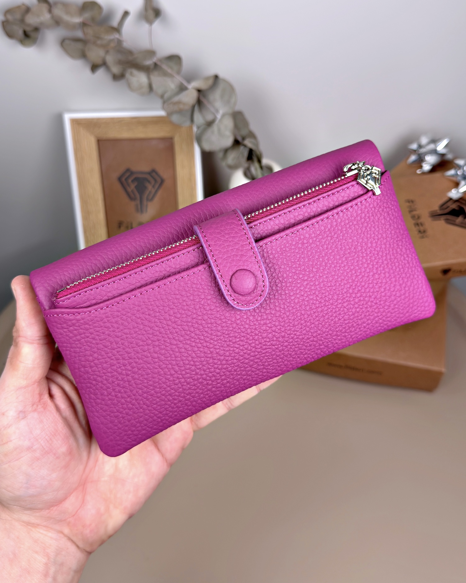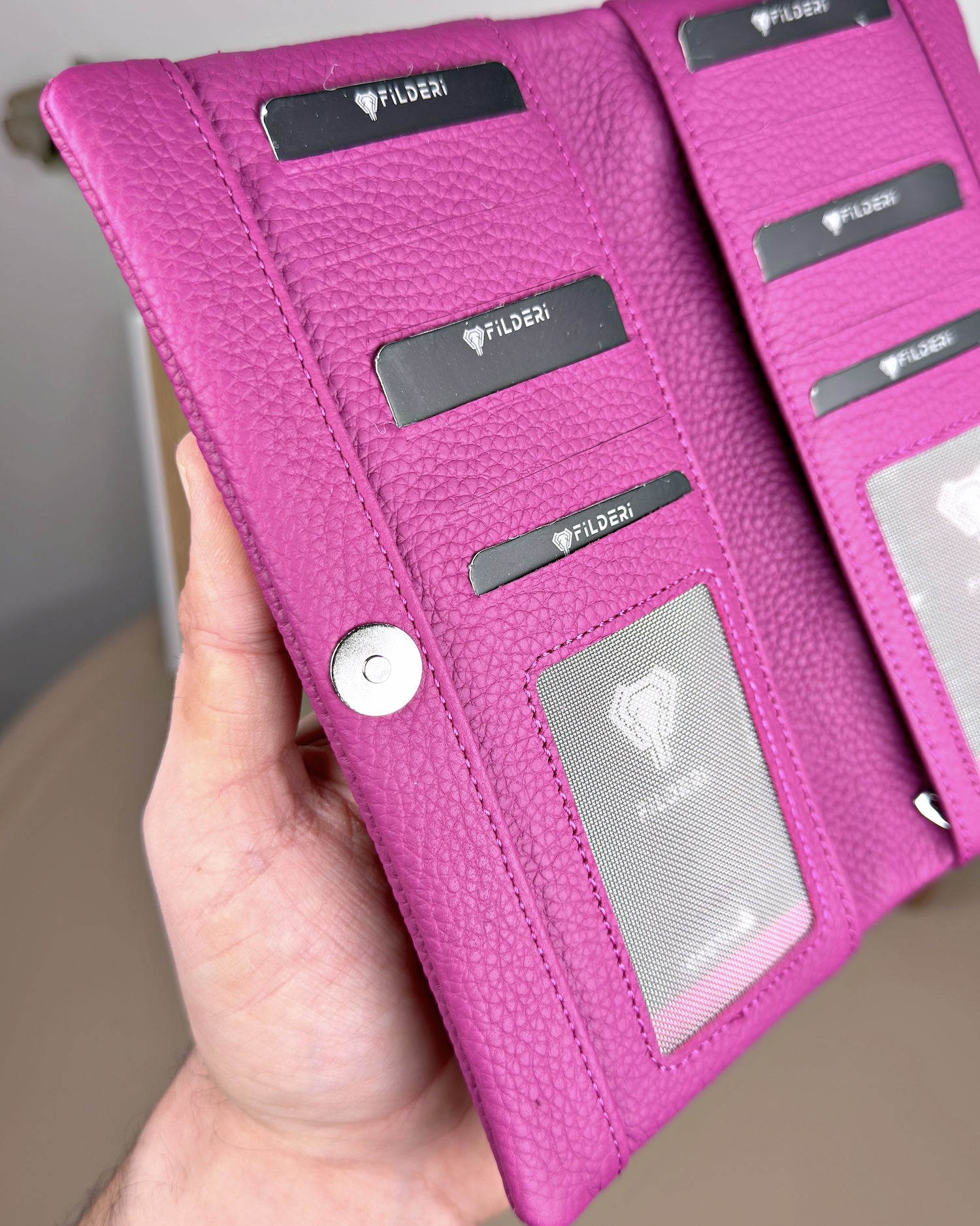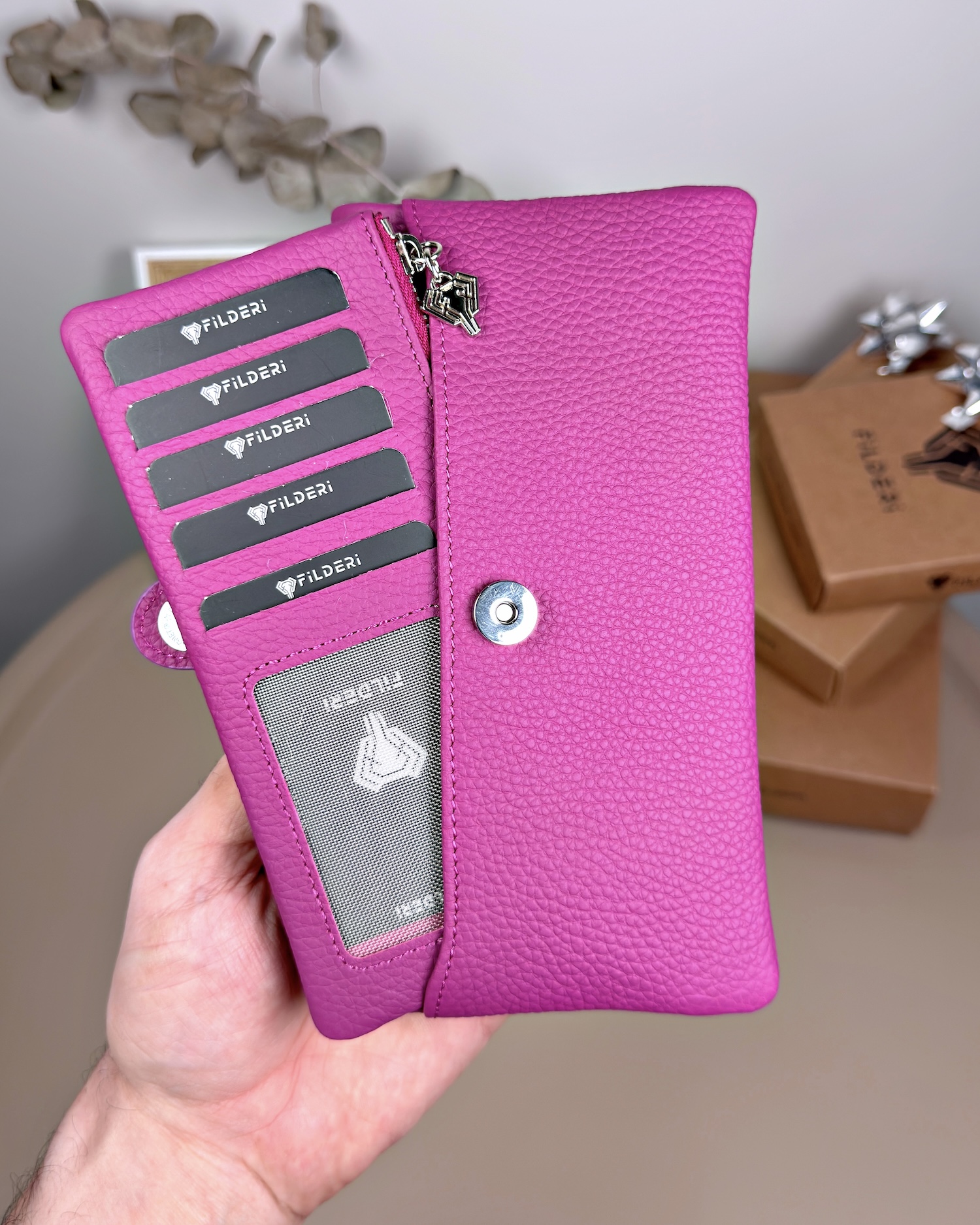 Telefon Bölmeli Cüzdan – Hakiki Deri, Kartlıklı, Fuşya | 2134