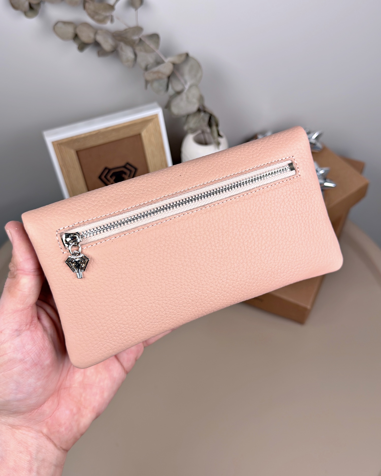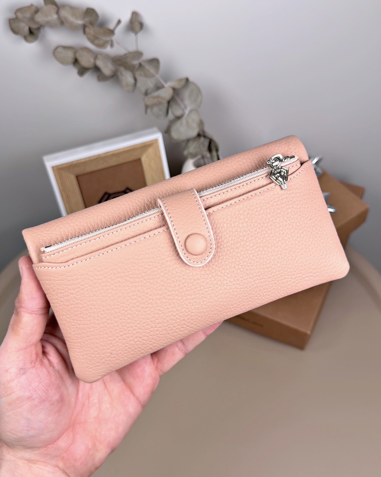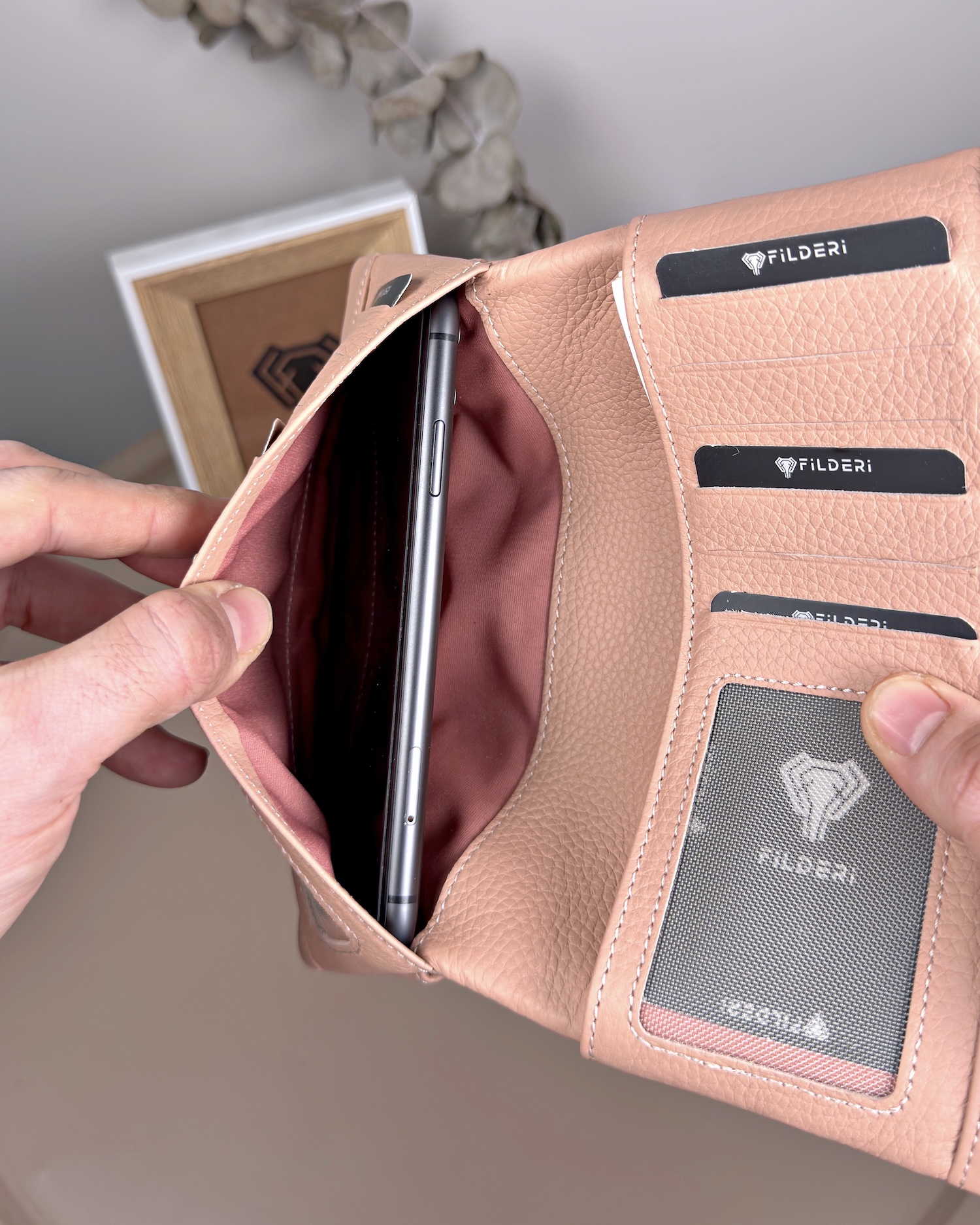 Telefon Bölmeli Cüzdan – Hakiki Deri, Kartlıklı, Pudra | 2134