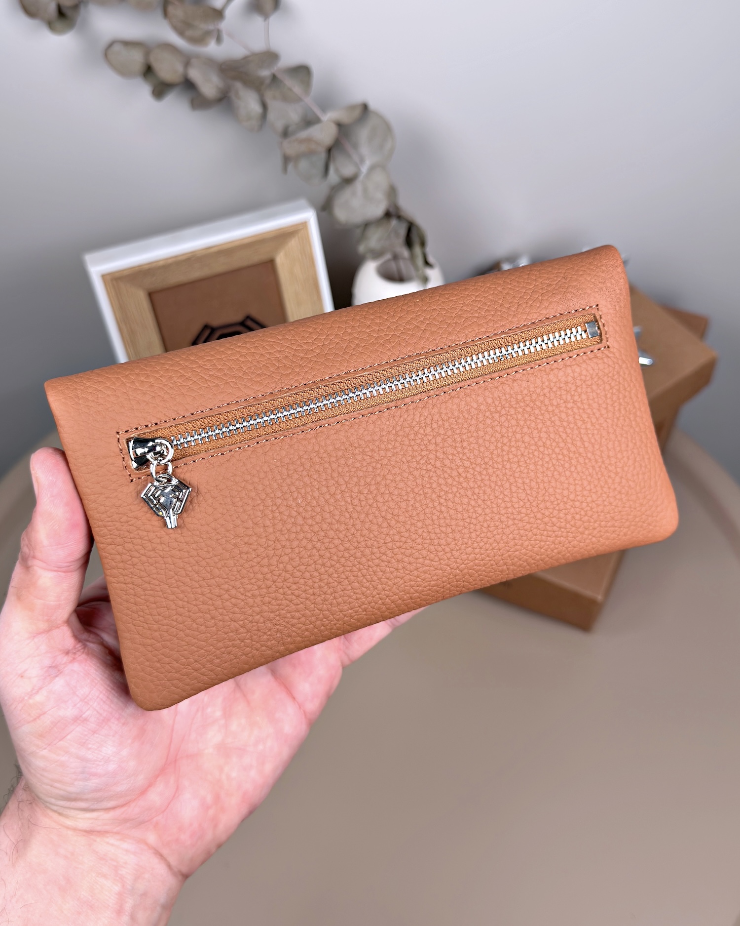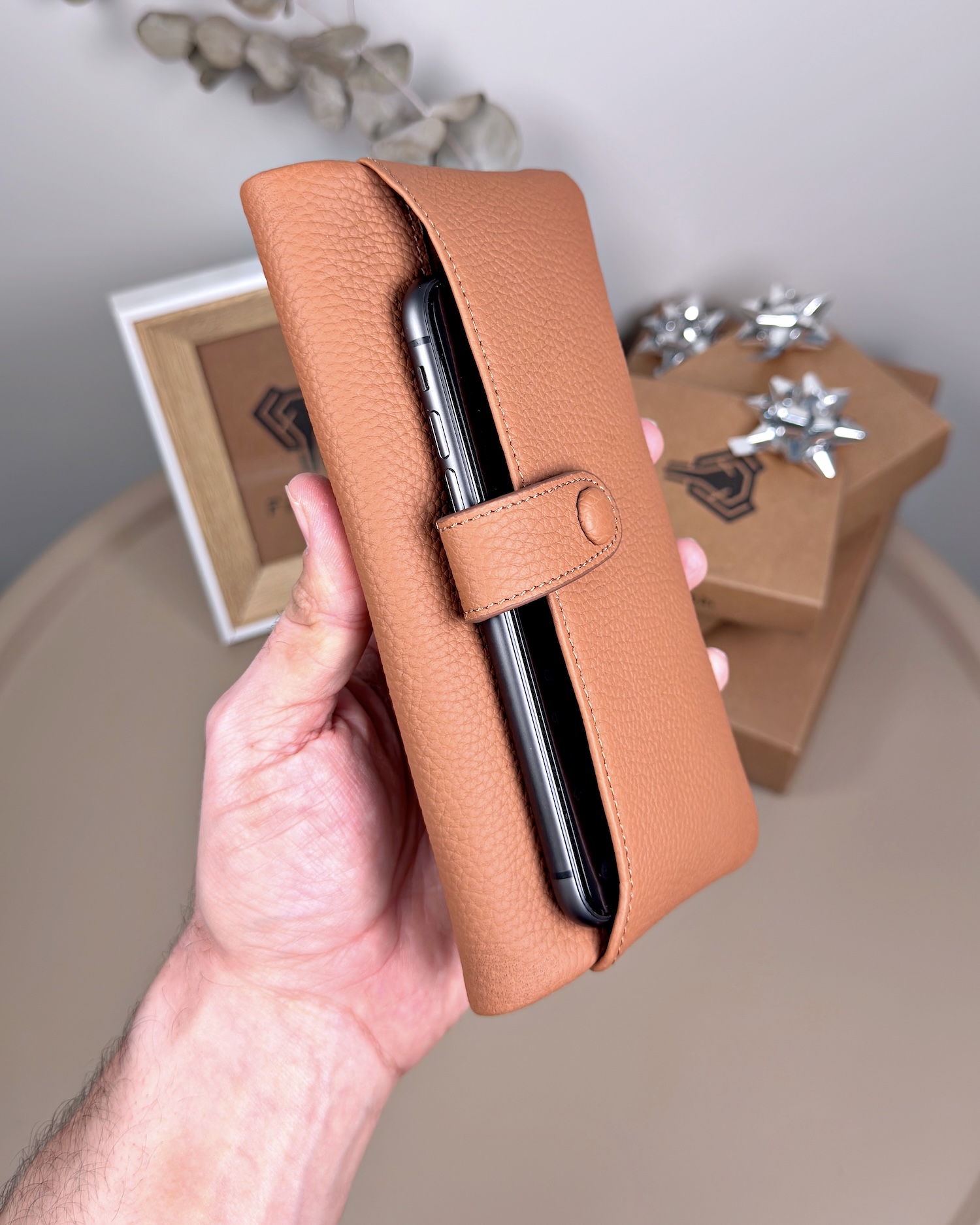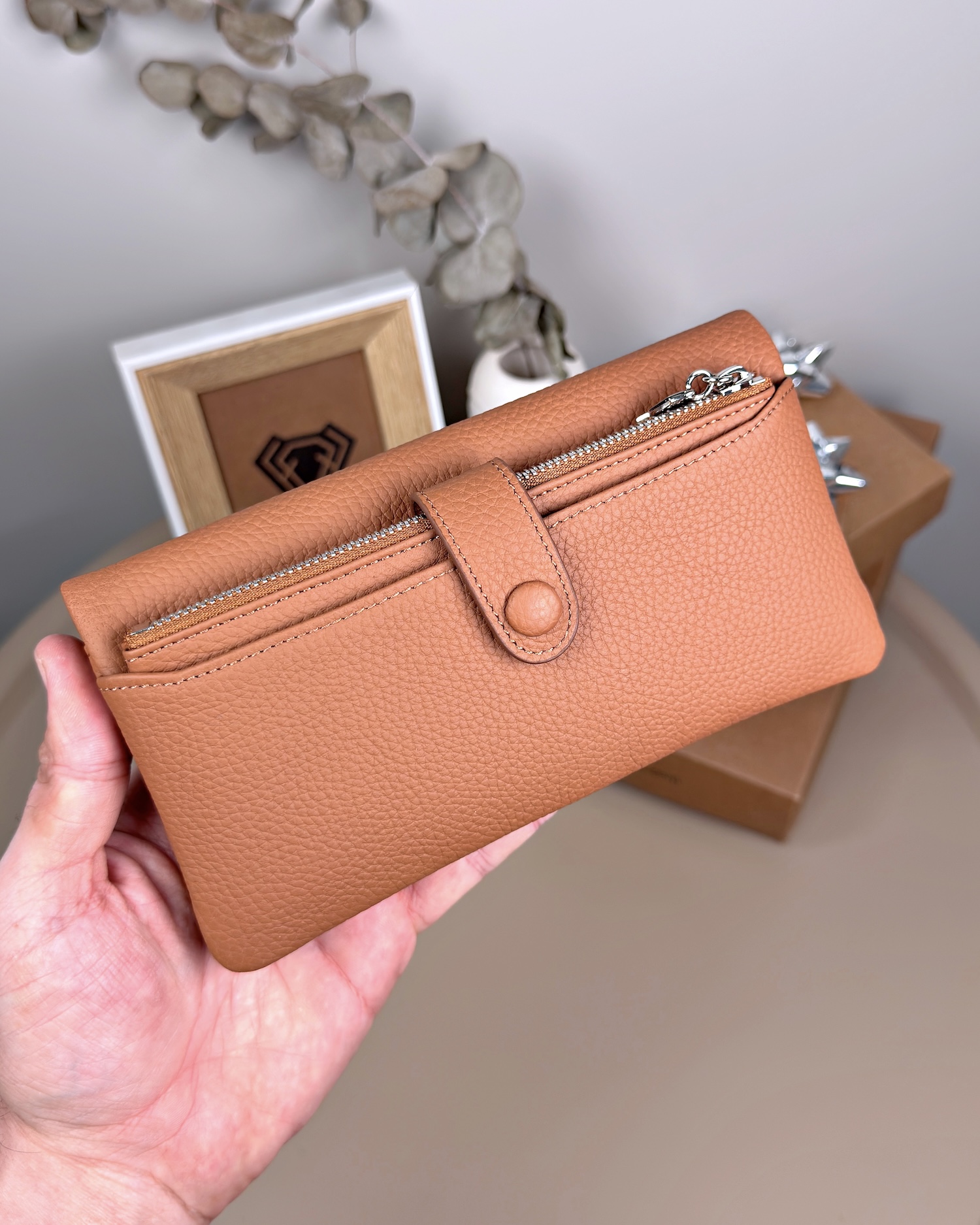 Telefon Bölmeli Cüzdan – Hakiki Deri, Kartlıklı, Taba | 2134