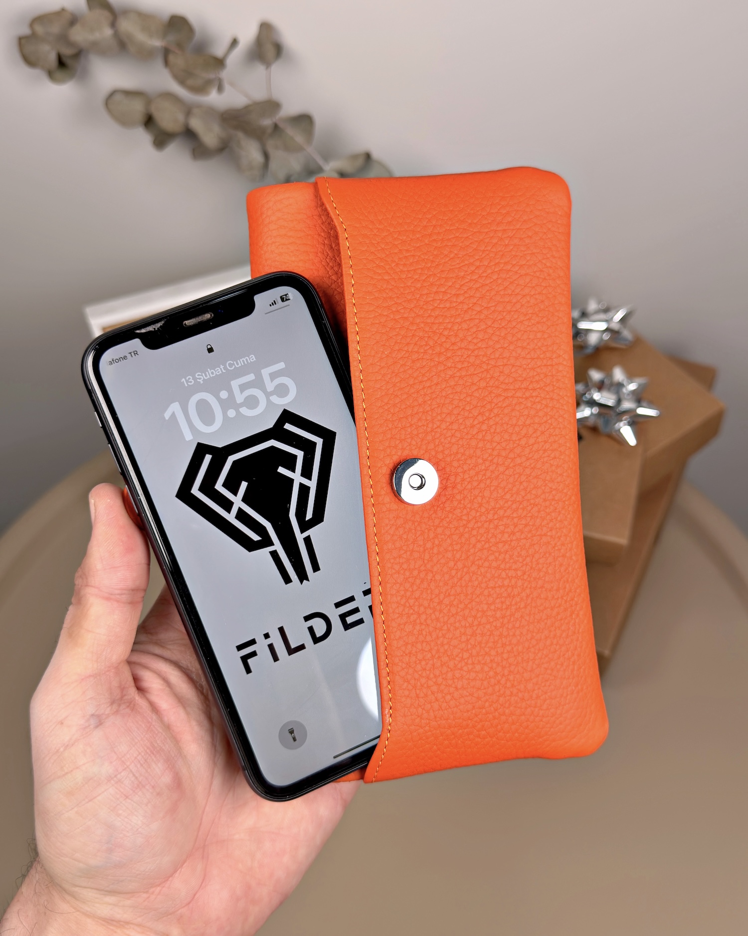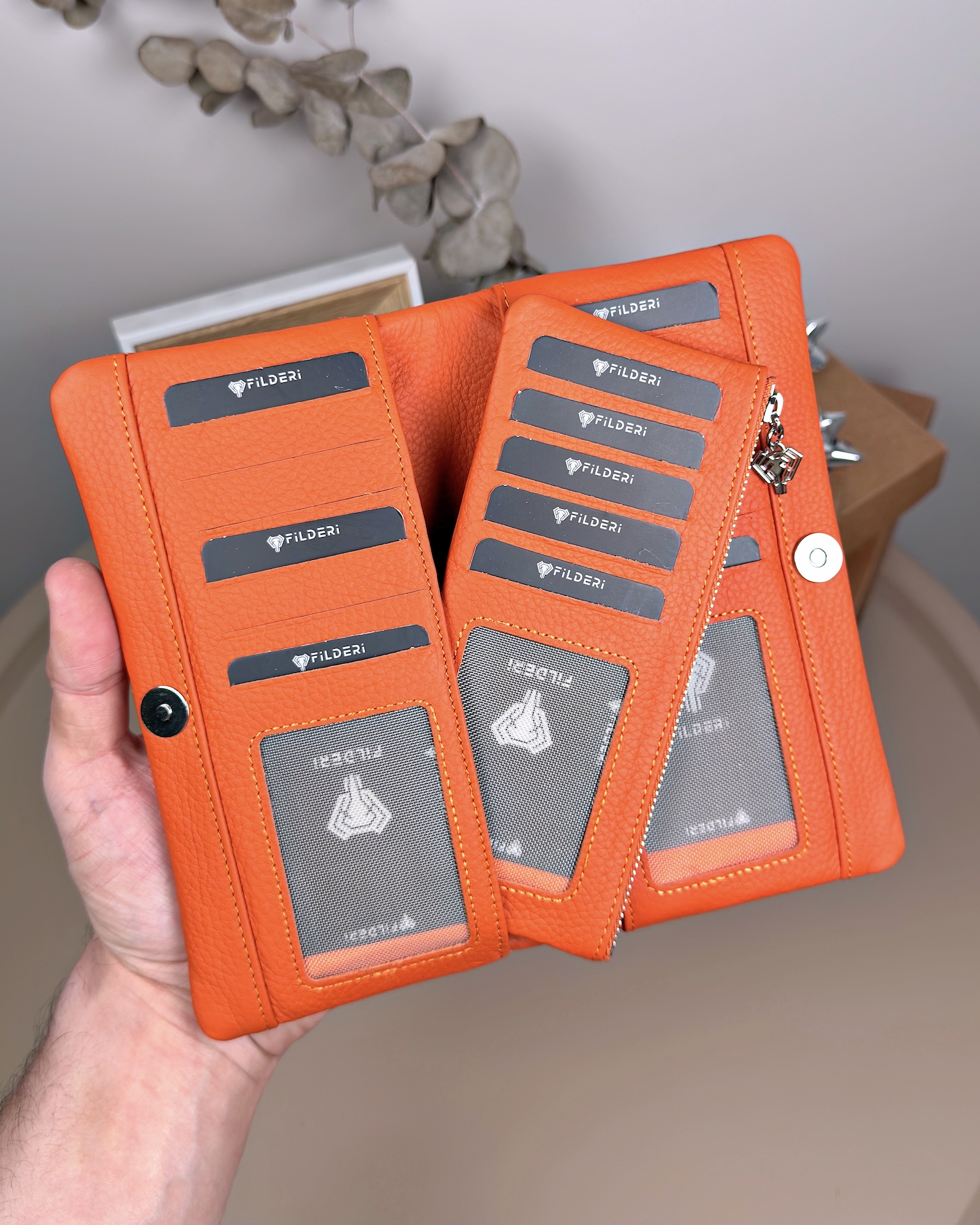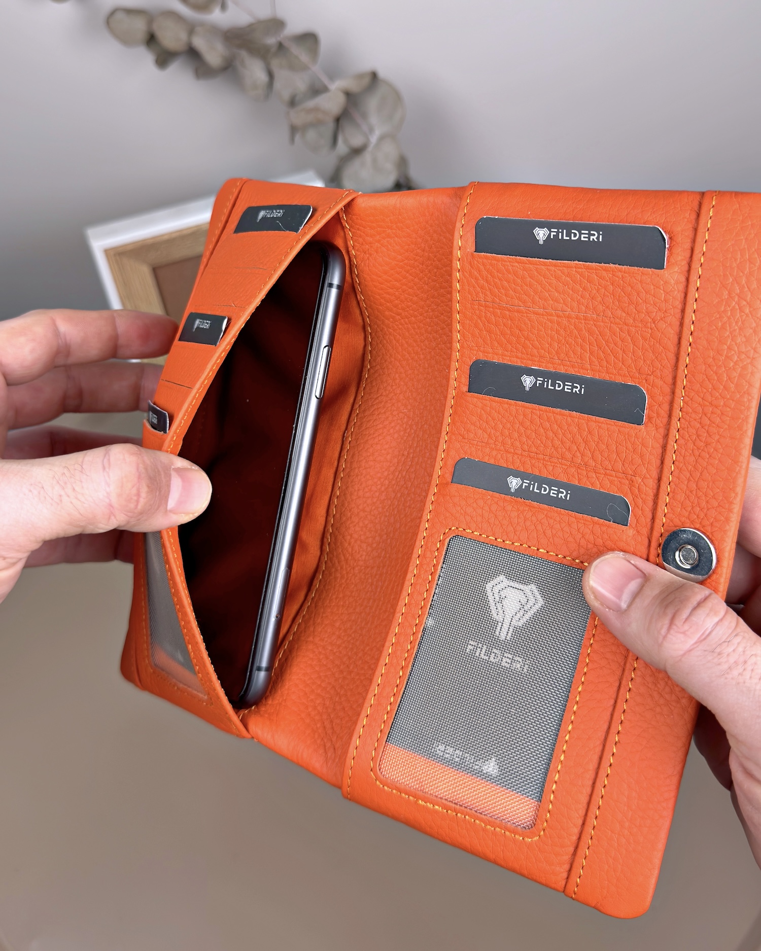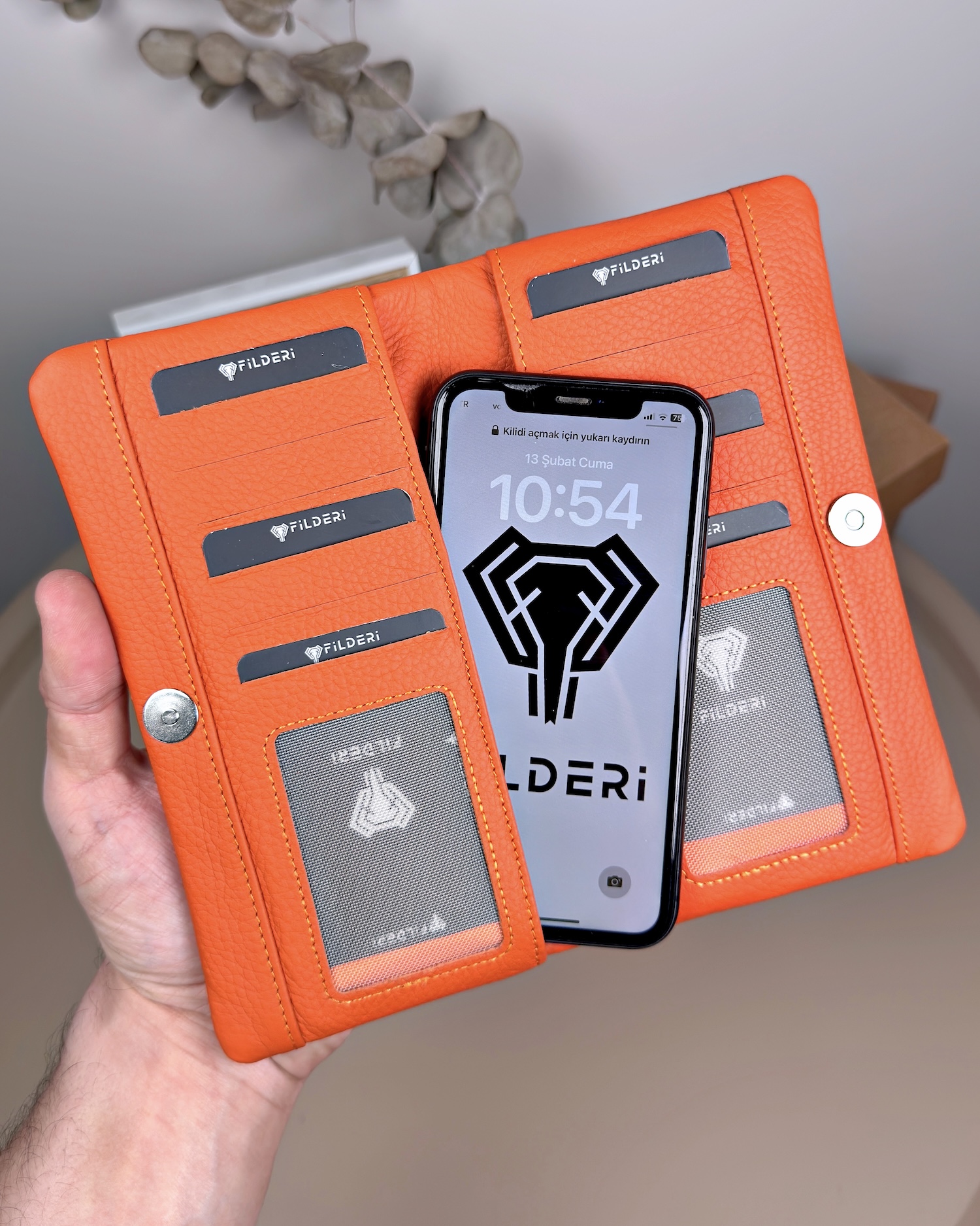 Telefon Bölmeli Cüzdan – Hakiki Deri, Kartlıklı, Turuncu | 2134