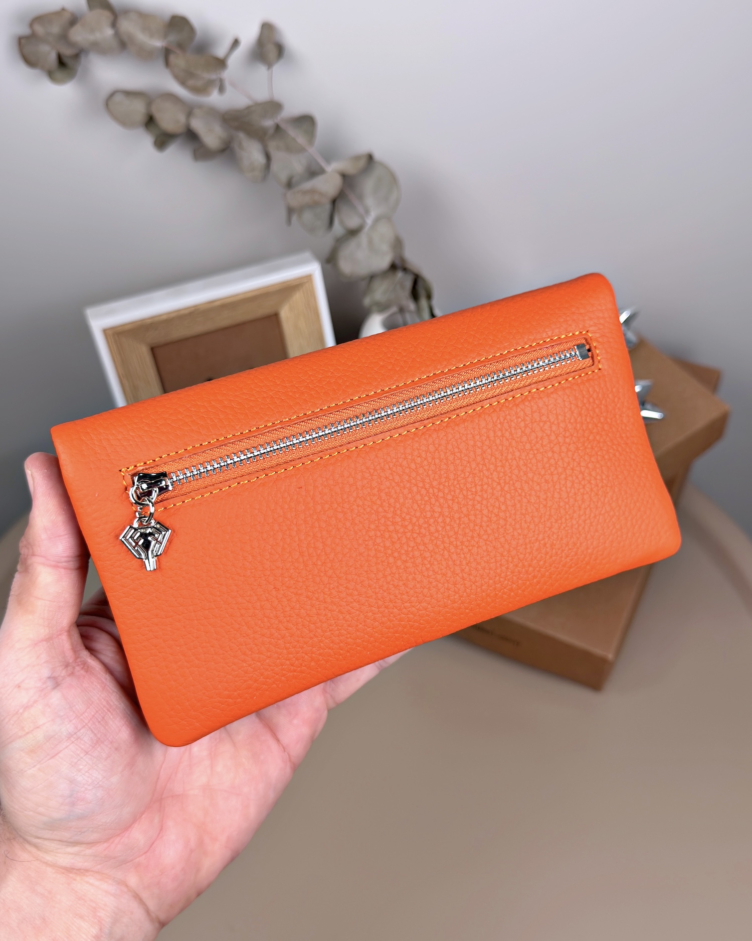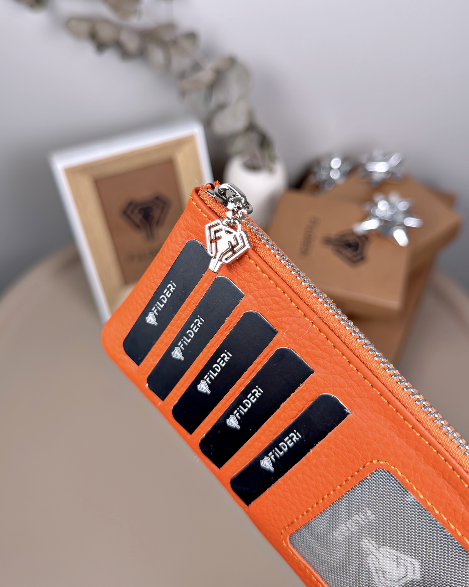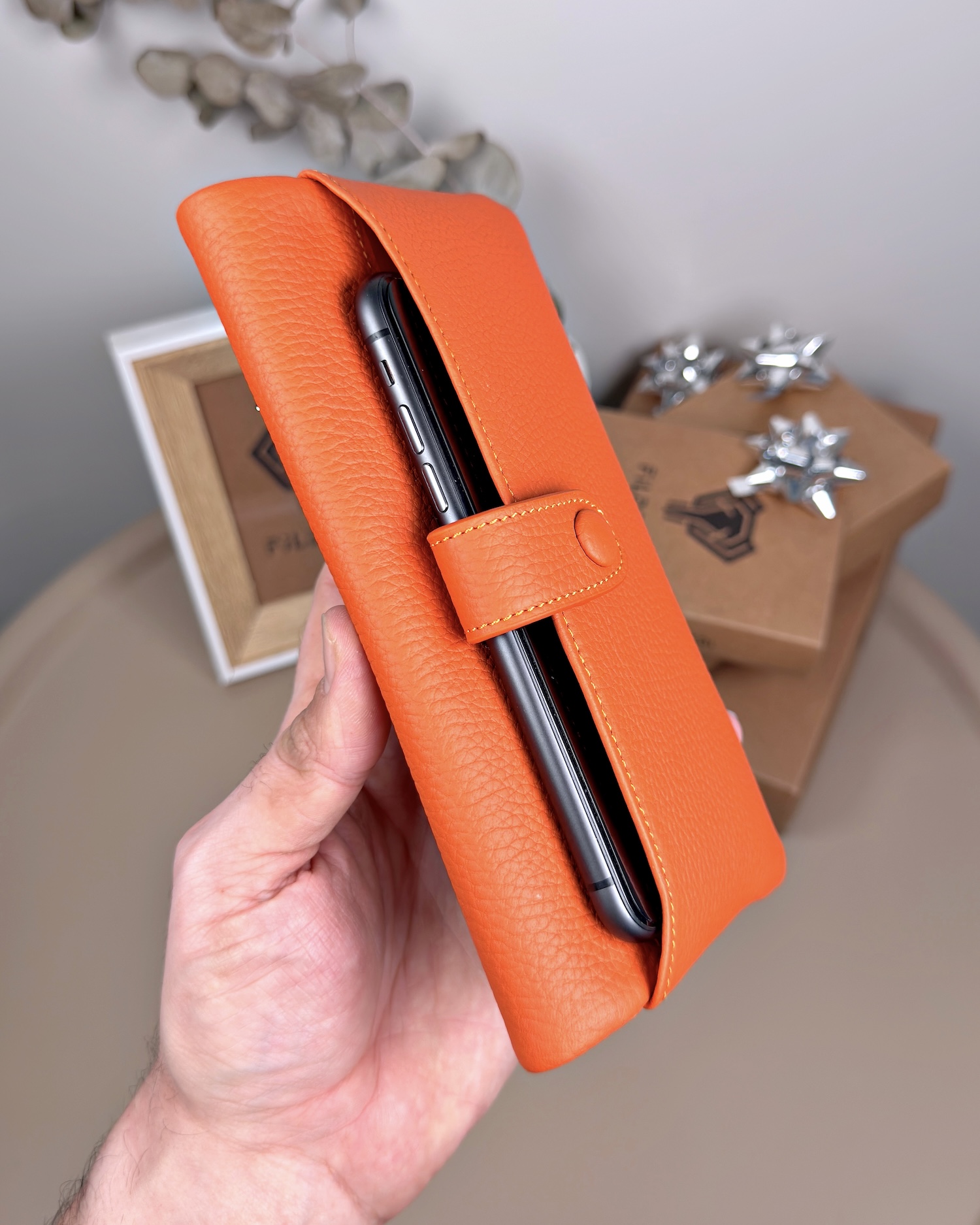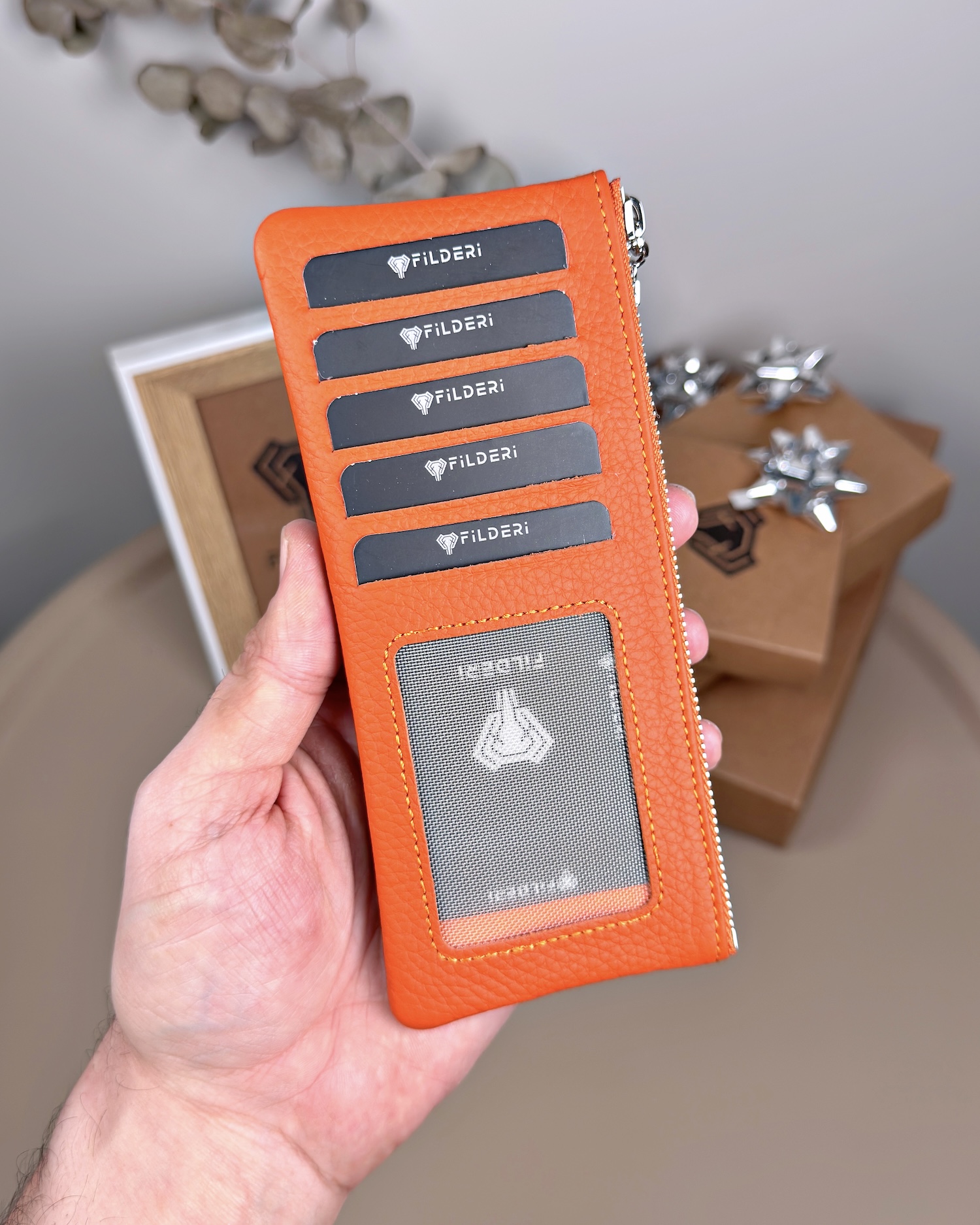 Telefon Bölmeli Cüzdan – Hakiki Deri, Kartlıklı, Turuncu | 2134